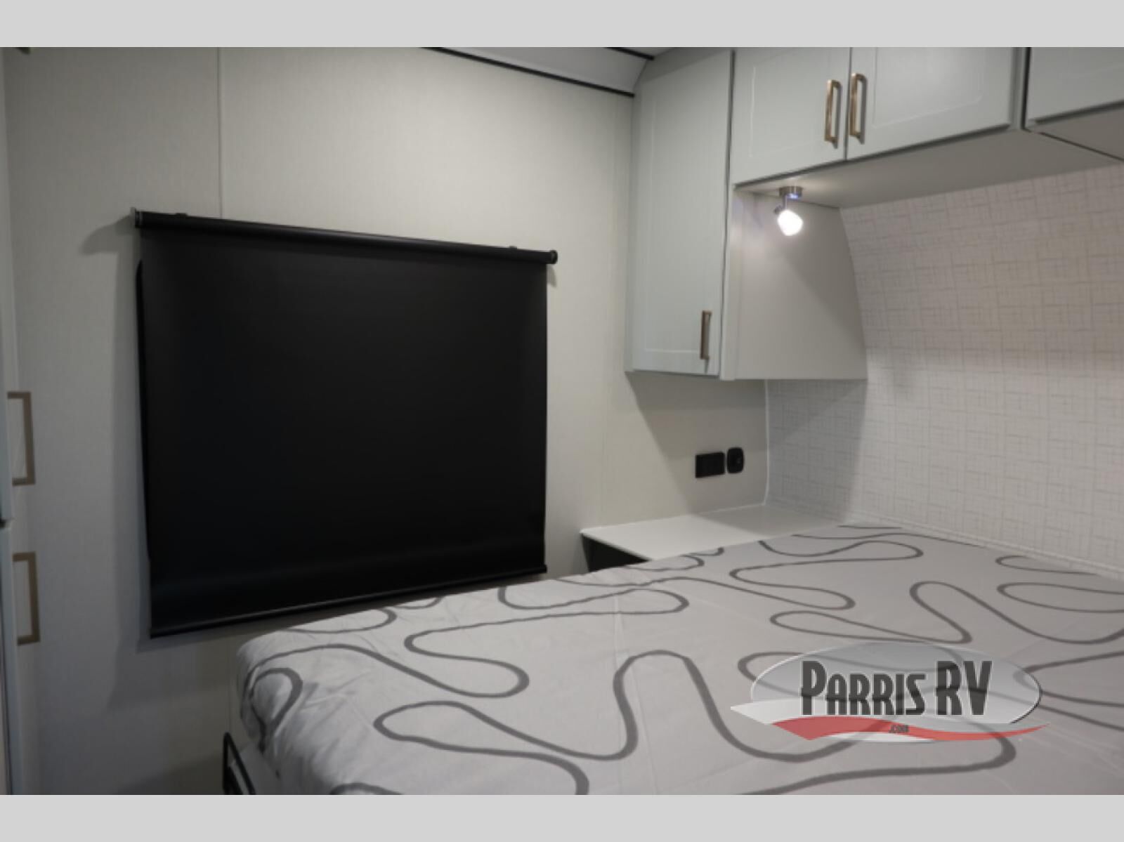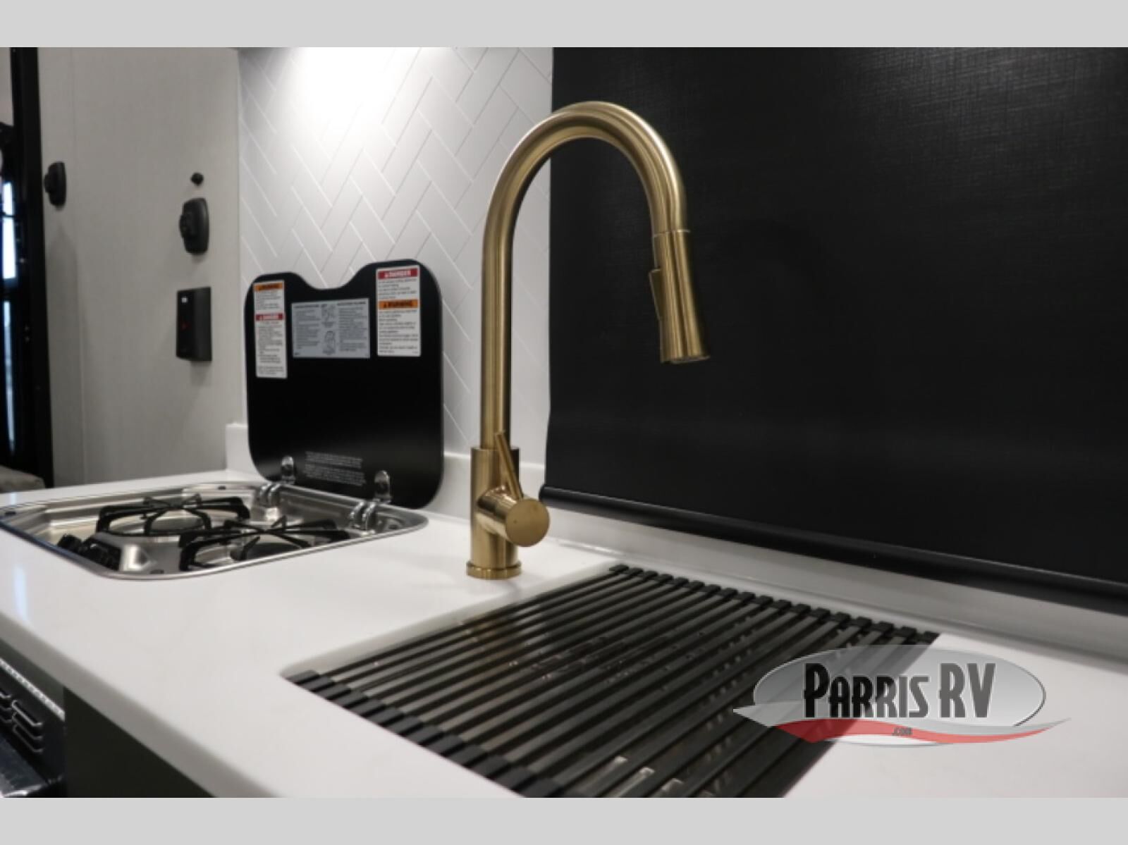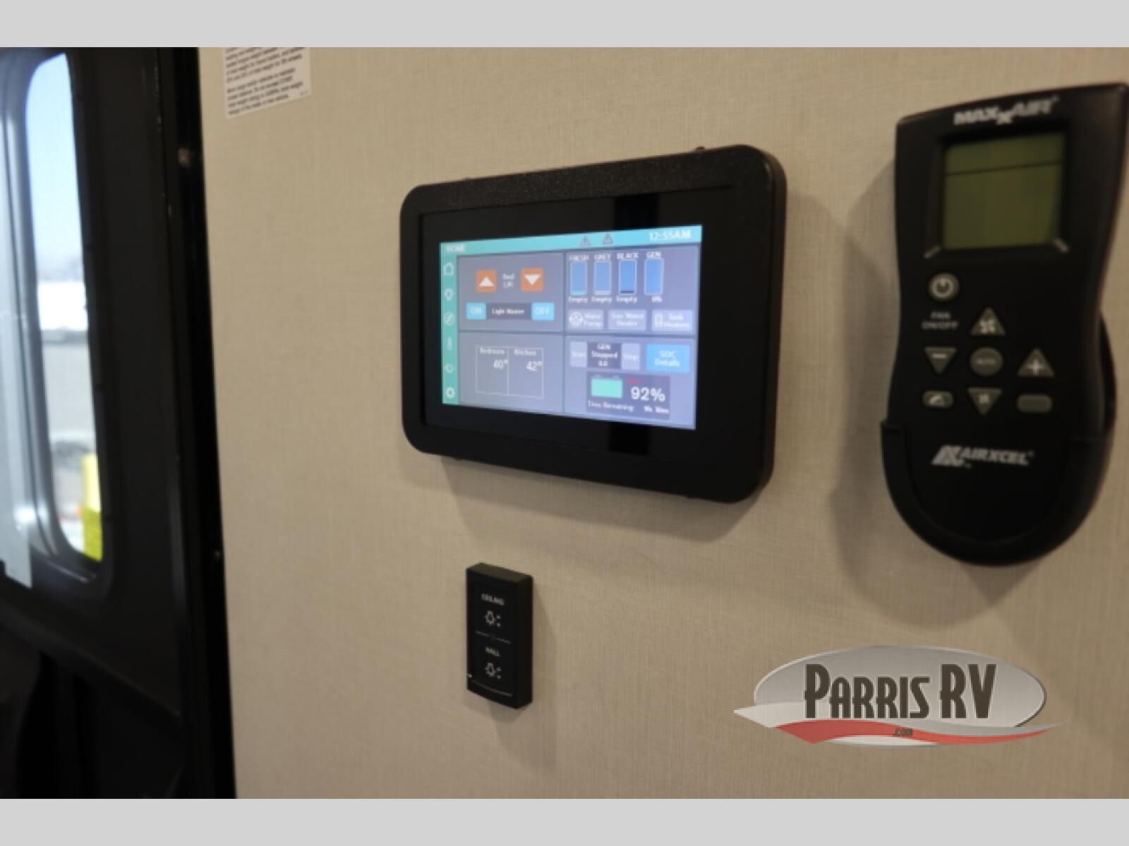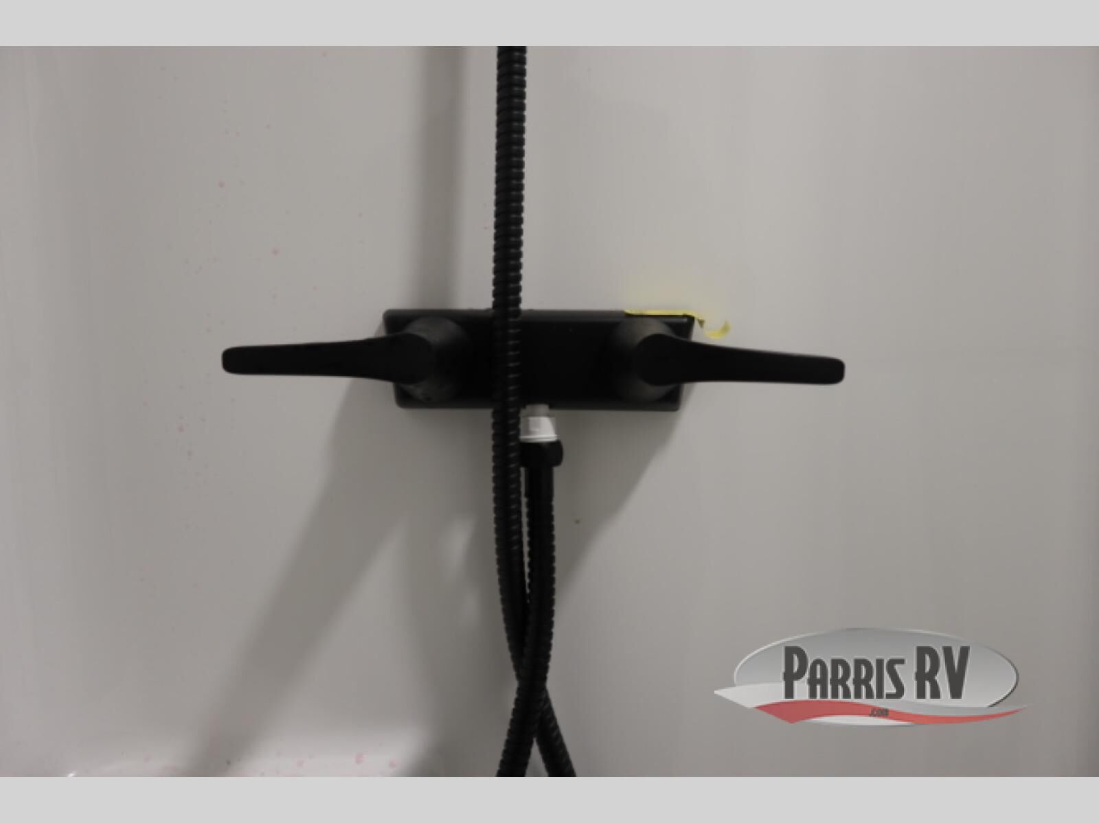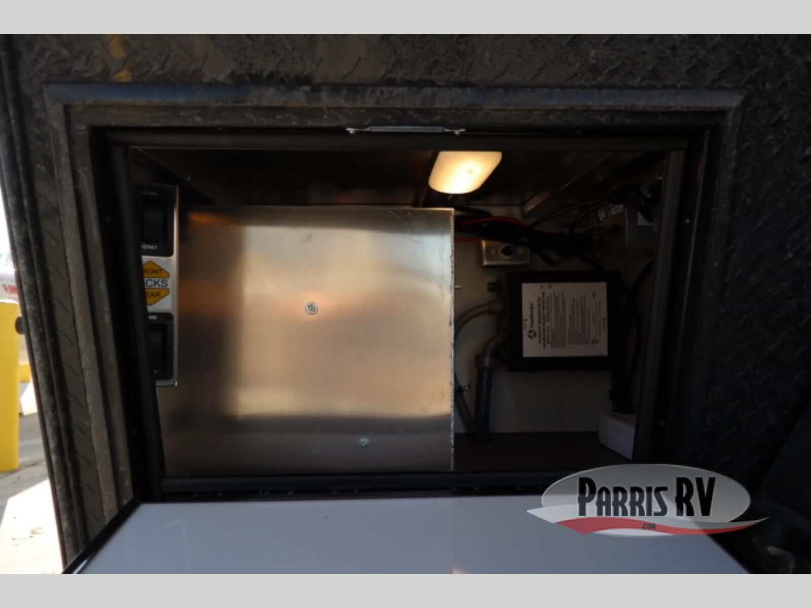 Time spent in this toy hauler will be time well spent! There is 15' 7" total garage space for your toys plus a cableless rear ramp door for easy unloading. You can whip up a meal on the LP two burner cooktop or in the convection microwave when you get back from trail riding, and the 10 cu. ft. 12V refrigerator will keep your food fresh. There is also a dinette table with four folding chairs where you can dine together. A full bath lets you clean up before bed, and you'll find a front private bedroom with a queen bed for all-around comfort!