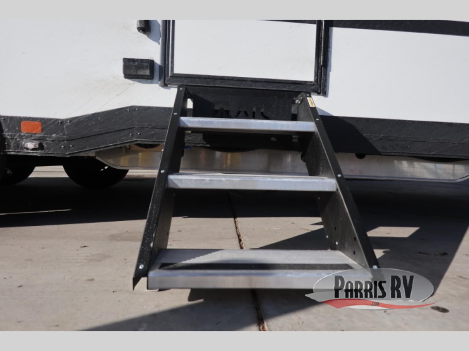 The PLA 550 toy hauler travel trailers by ATC Trailers are built for the long haul with a fully integrated aluminum frame, a one-piece aluminum roof, composite ramp door, and an enclosed underbelly. There is an electric tongue jack outside, along with a pass-through storage, power awning with a light strip, and electric scissor jacks for easy set up. The LifeTrac modular component system will let you configure your garage space how you need it, and there are three rows of Airline tracks with covers to secure your gear. You will also love the interior with its aluminum cabinets with solid surface countertops, dimmable can ceiling lights, and composite with commercial-grade vinyl flooring to name a few comforts! If you'd like to further customize your trailer, consider choosing one or more of the available options, such as a happijac bed lift, gas generator, enclosed three seasons room, and more!