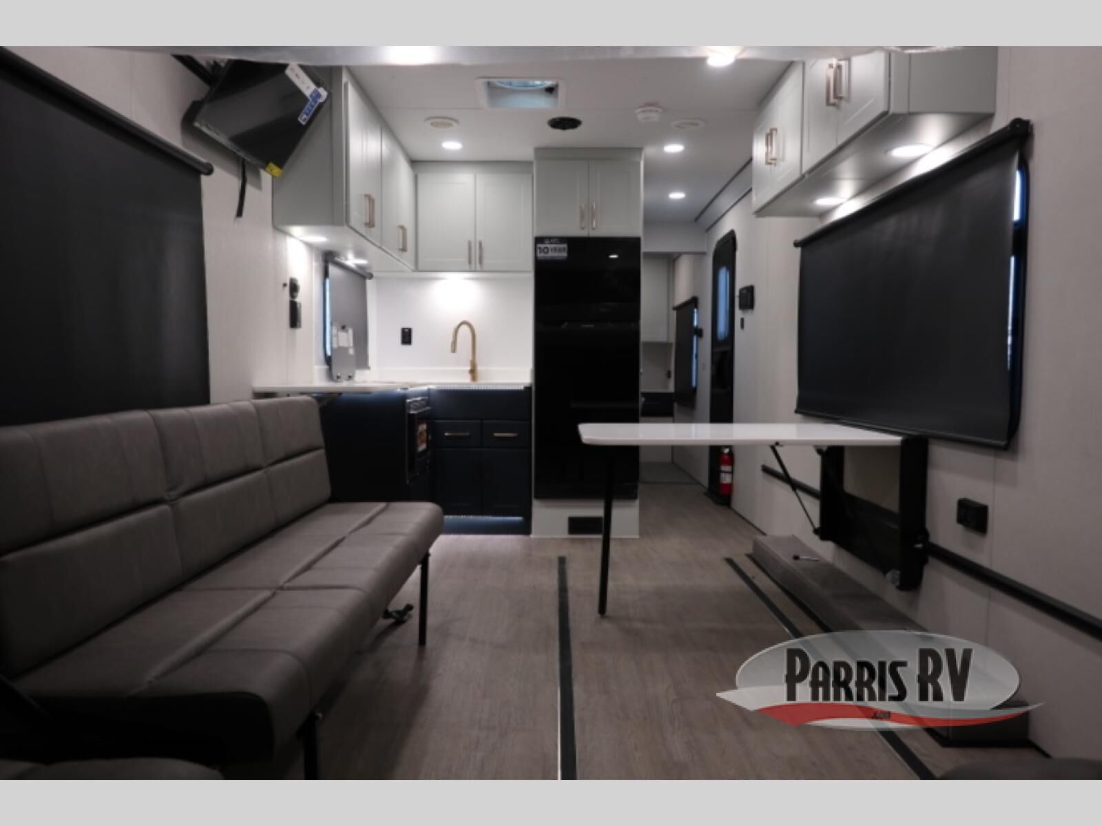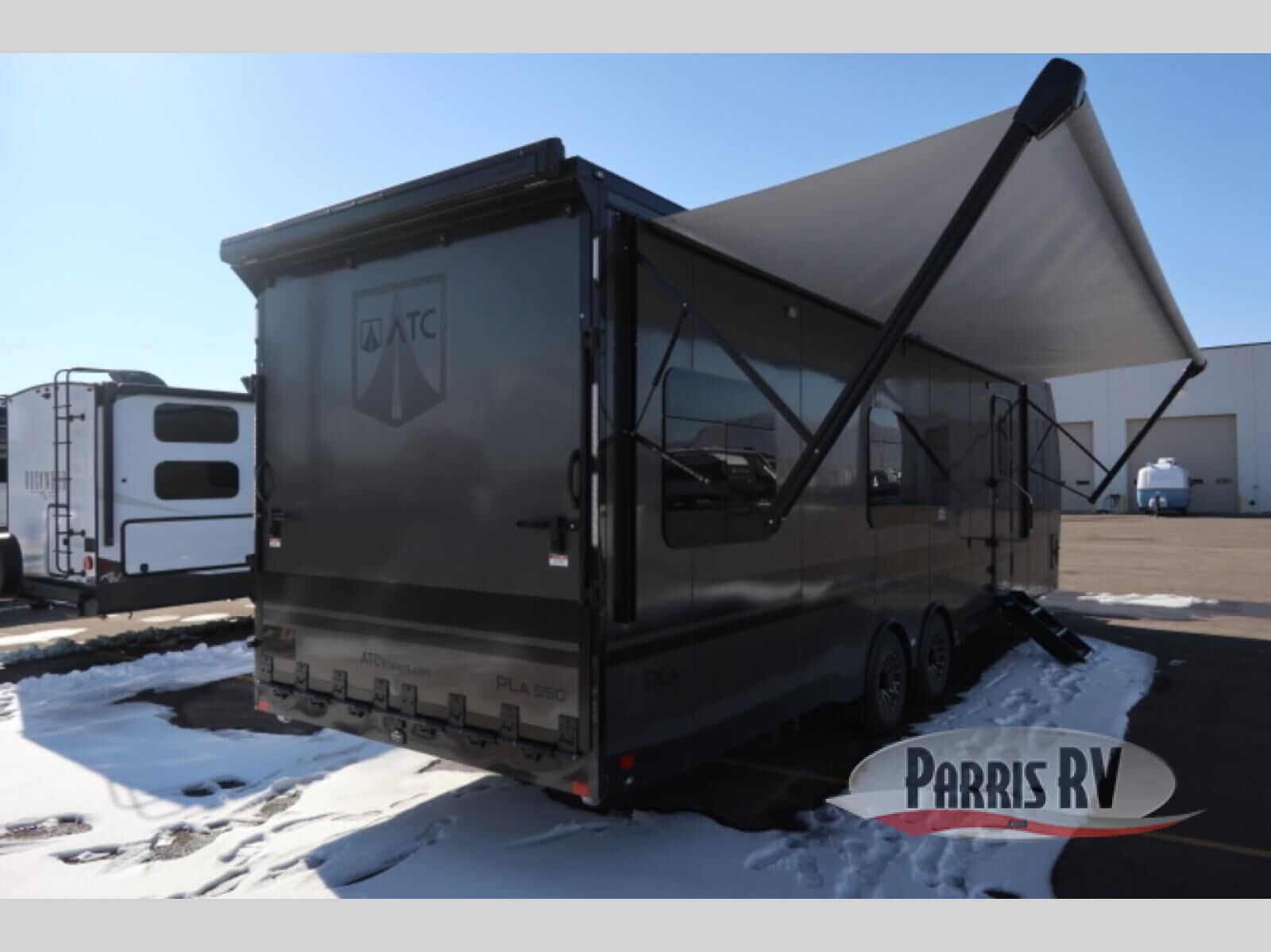 The PLA 550 toy hauler travel trailers by ATC Trailers are built for the long haul with a fully integrated aluminum frame, a one-piece aluminum roof, composite ramp door, and an enclosed underbelly. There is an electric tongue jack outside, along with a pass-through storage, power awning with a light strip, and electric scissor jacks for easy set up. The LifeTrac modular component system will let you configure your garage space how you need it, and there are three rows of Airline tracks with covers to secure your gear. You will also love the interior with its aluminum cabinets with solid surface countertops, dimmable can ceiling lights, and composite with commercial-grade vinyl flooring to name a few comforts! If you'd like to further customize your trailer, consider choosing one or more of the available options, such as a happijac bed lift, gas generator, enclosed three seasons room, and more!