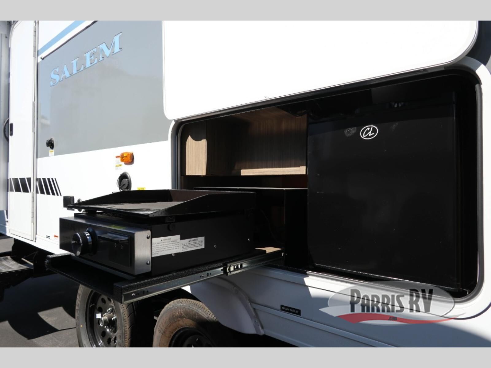 The Forest River Salem Cruise Lite West Region models feature an aerodynamic front profile and Easy Lube axles with self adjusting brakes. Inside you will love the look of the Shaker style cabinet doors and high definition countertops, plus the convenience of the extra-large kitchen overhead cabinets and the ball bearing drawer guides. Choose your favorite model today!