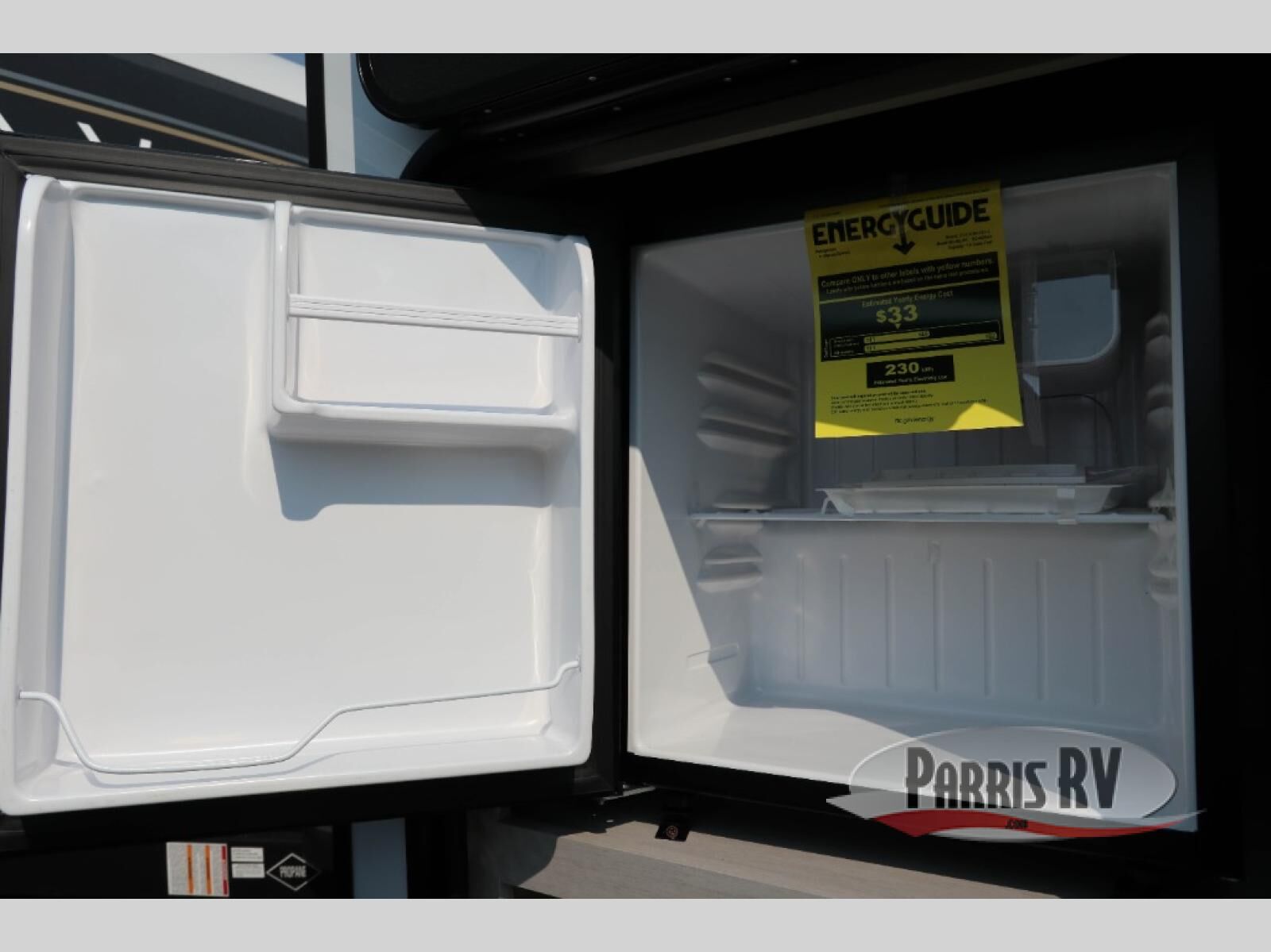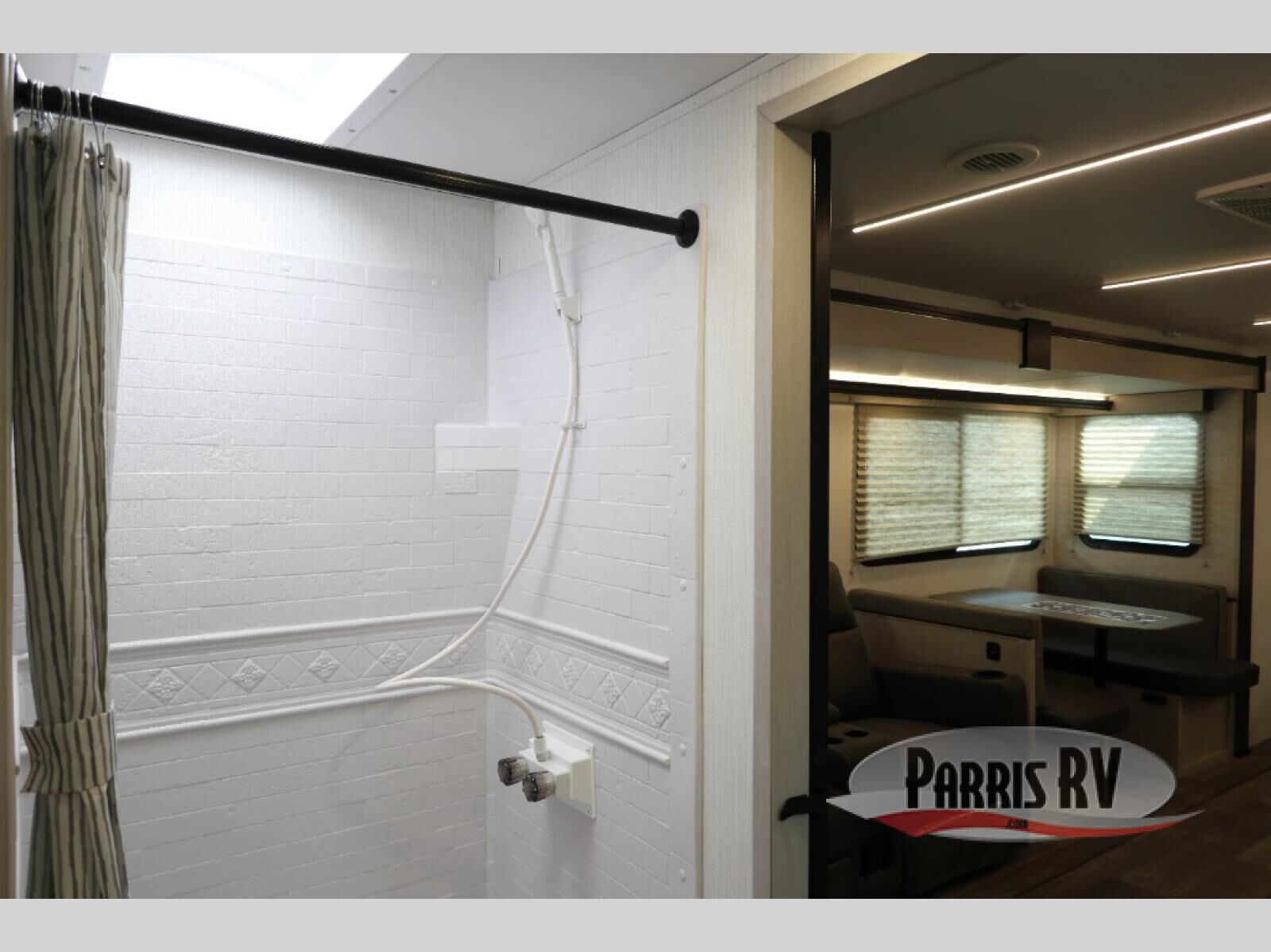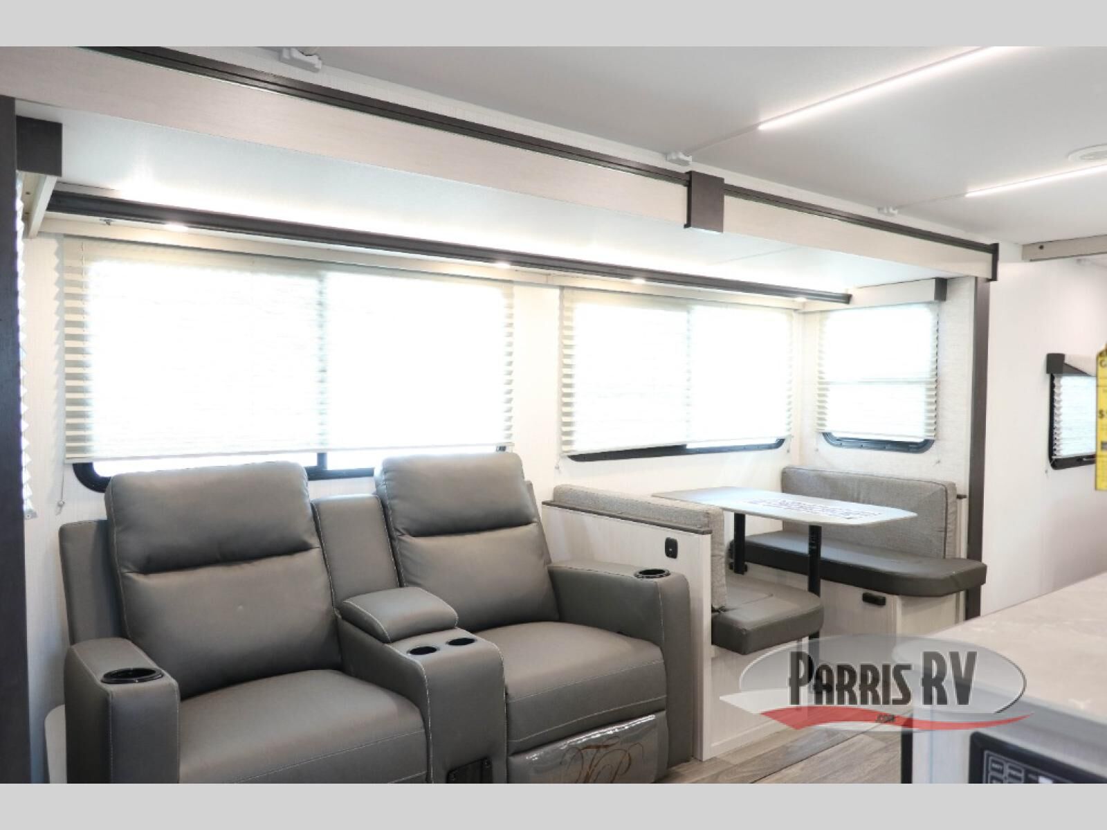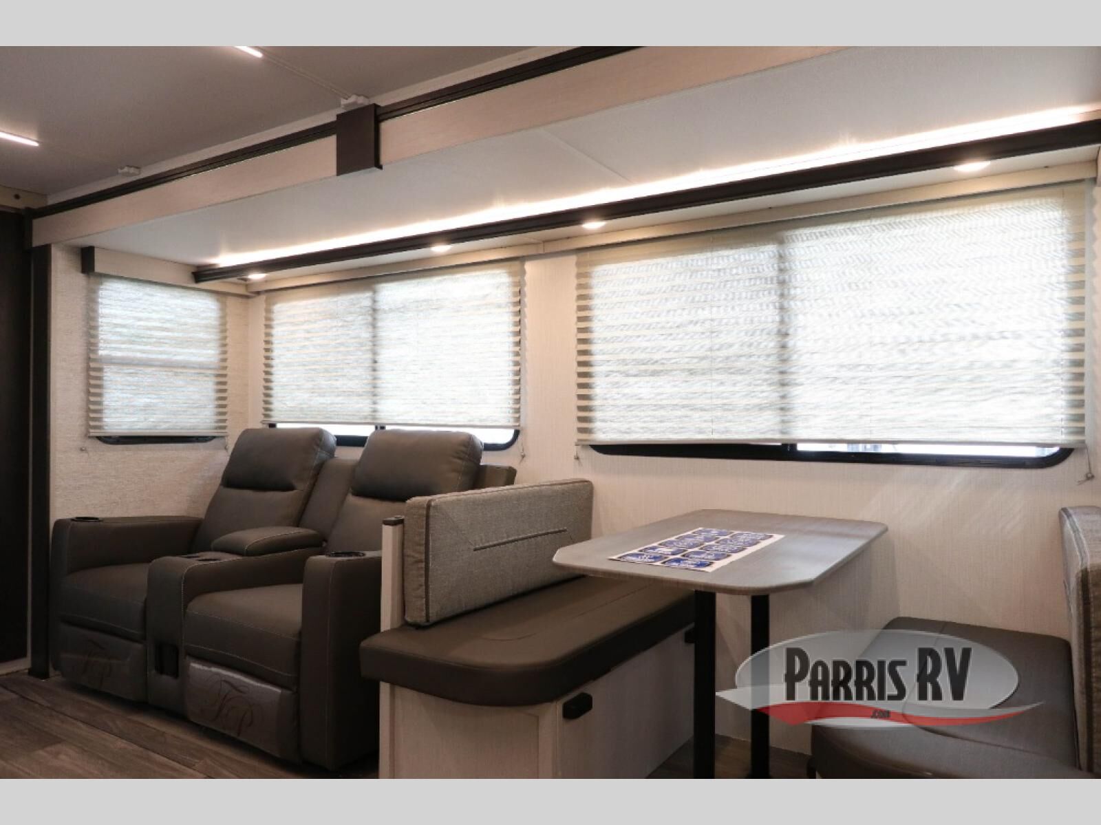 Camping just got a whole lot sweeter in this travel trailer! There is a large slide out for more interior space, and here you'll find the sofa and booth dinette across from the entertainment center with TV prep and a fireplace to make it feel more like home. The kitchen includes a three burner range and microwave oven to make meals each day, or you can head outdoors to cook on the outdoor kitchen with a griddle. When you're ready for some shut-eye, the queen bed up front will provide a great night's rest, and there are dual bedside wardrobes to keep your things organized.