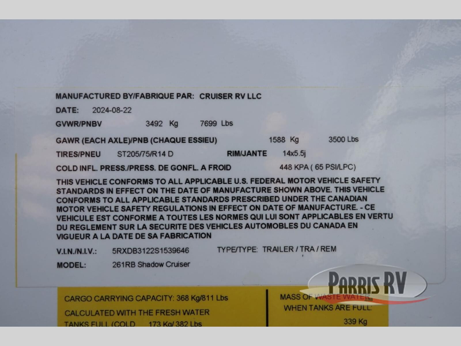 Cruiser Shadow Cruiser travel trailer 261RBS highlights: