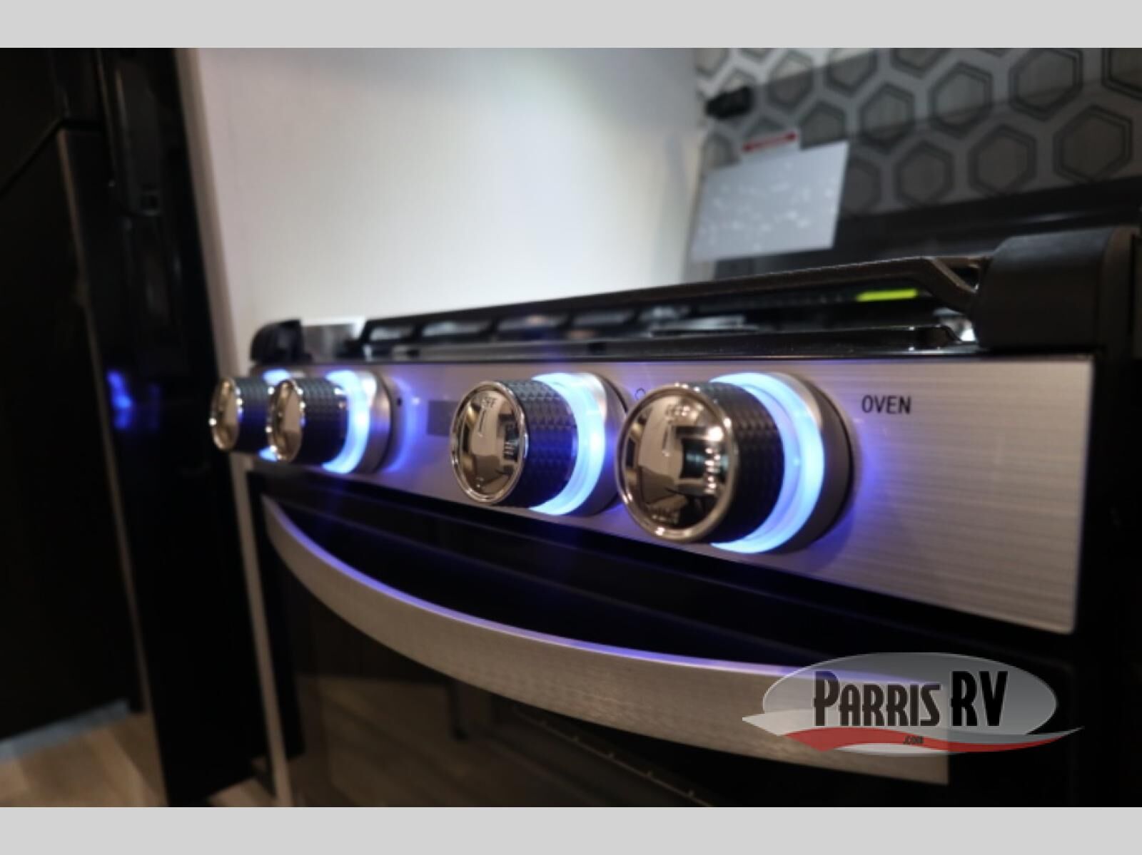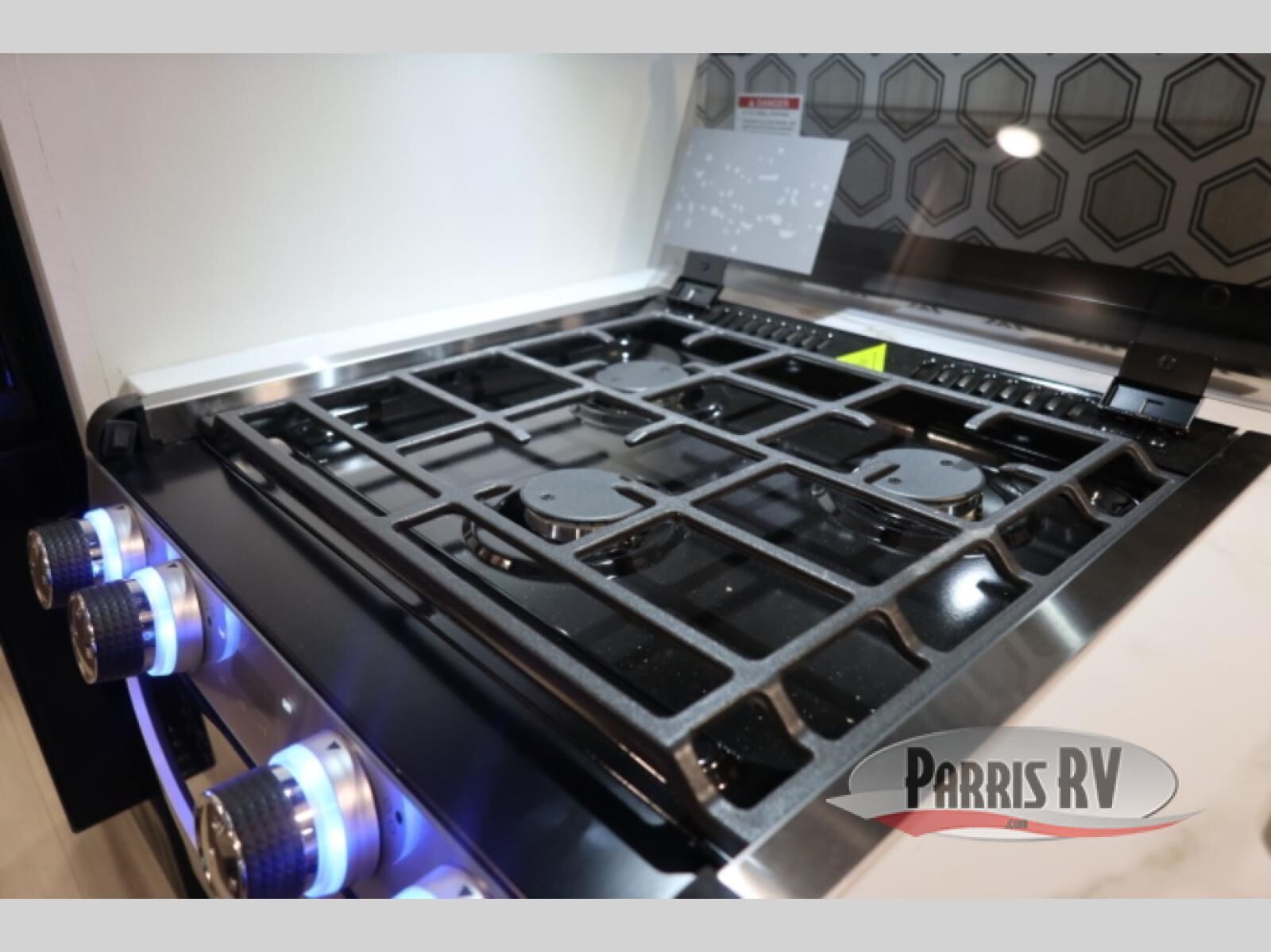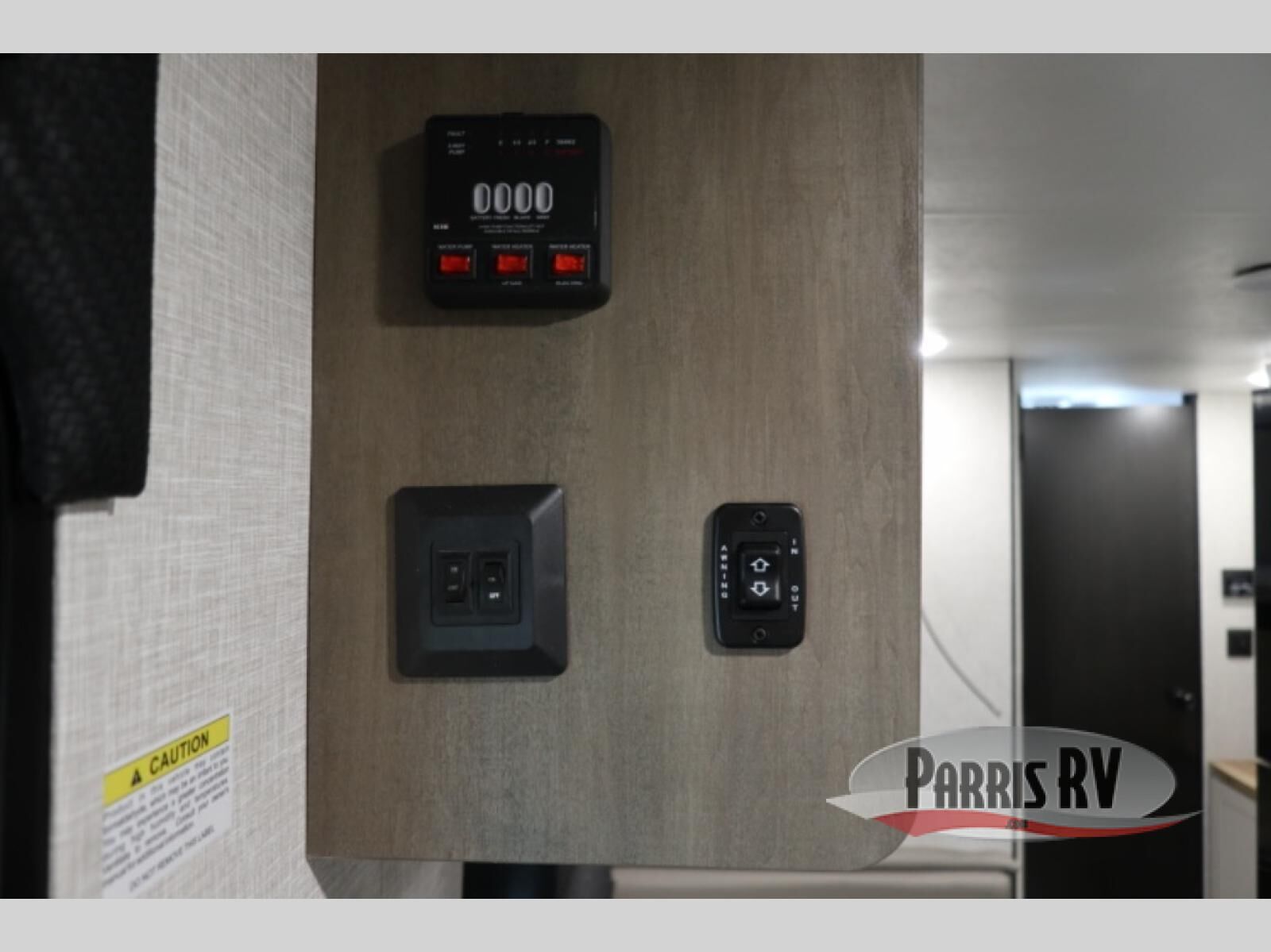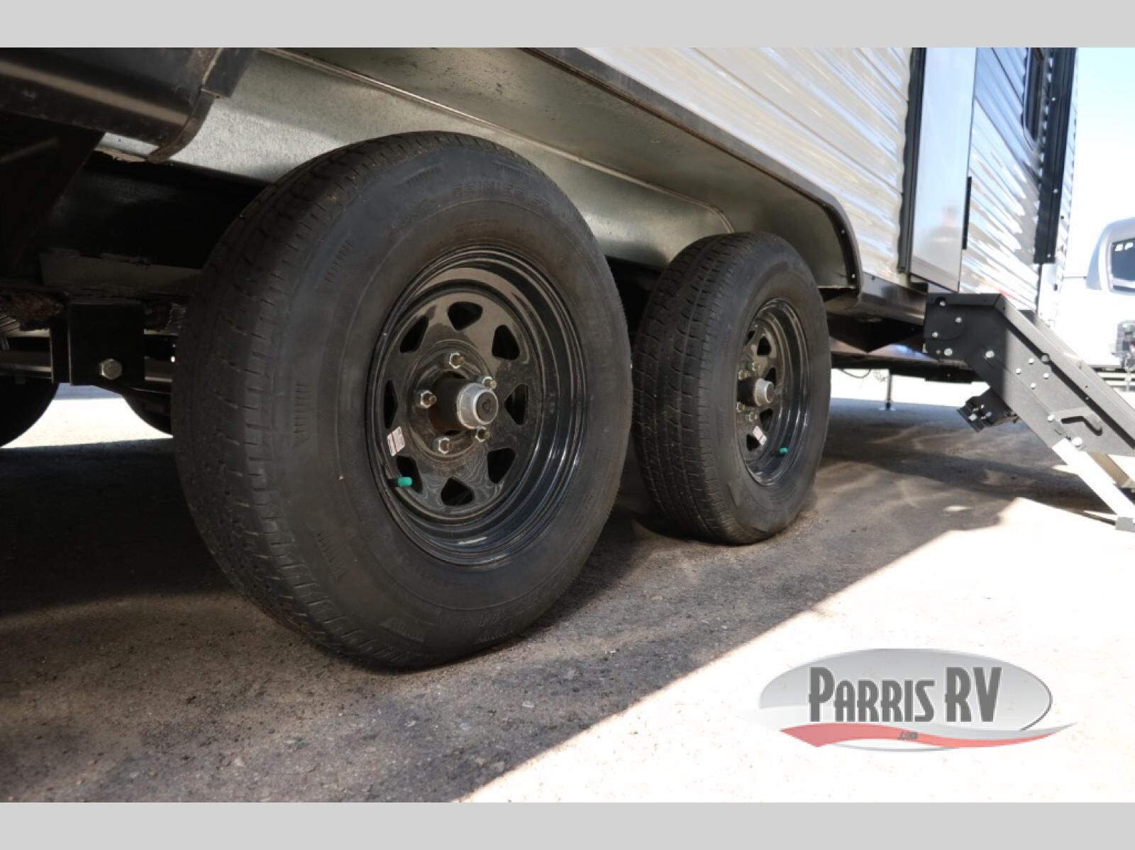 This dual-axle travel trailer can sleep eight people each night, so invite your family or friends along. You will enjoy the front private bedroom up front with dual wardrobes to keep your clothes tidy, and an easy lift bed with storage. While the chef of your group is preparing lunch on the three burner cooktop, everyone else can visit on the jack-knife sofa or play a game at the booth dinette. You will also find a large 18' power awning with LED lights outdoors which is where you may usually find everyone. The private tub/shower and toilet is right next to the double-size bunks for convenience, and the sink is just outside of this room so two people can freshen up at once.