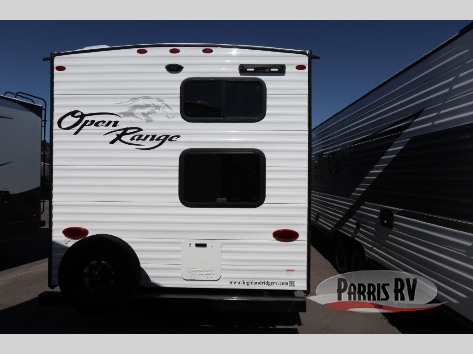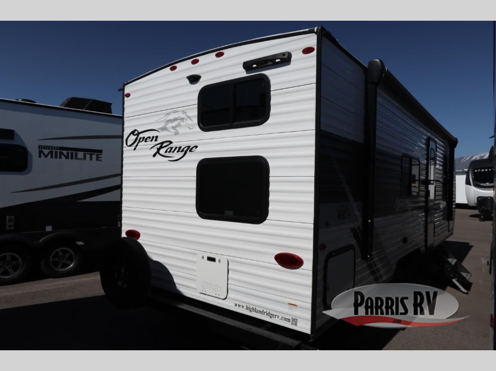 The affordable Open Range Conventional travel trailers by Highland Ridge are ready to meet your camping needs! You will appreciate the durable Magnum Roof system, plus each model is constructed with black front diamond plate protection, 5/8" main floor decking, and self-adjusting electric brakes with E-Z Lube axles for smooth towing. The 81" interior height means you won't feel cramped when relaxing with friends and family, and the residential vinyl flooring throughout is easy to clean, which will be perfect if you're camping with little ones or pets. These models also include an AM/FM/Bluetooth radio with indoor/outdoor speakers, a digital TV antenna that will go perfectly with the optional Smart TV, plus a 13,500 BTU roof mounted A/C to keep you cool on those hot summer months.