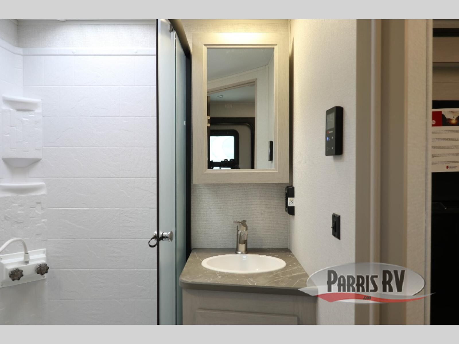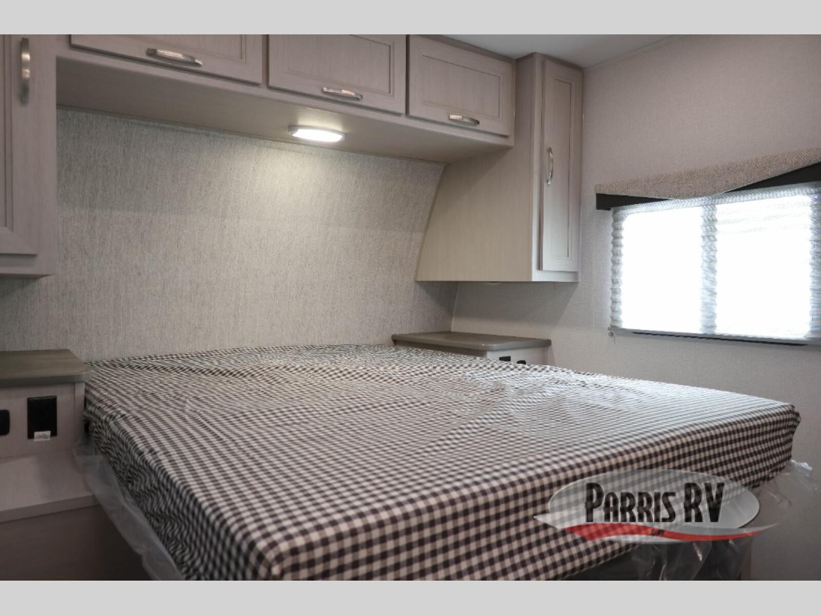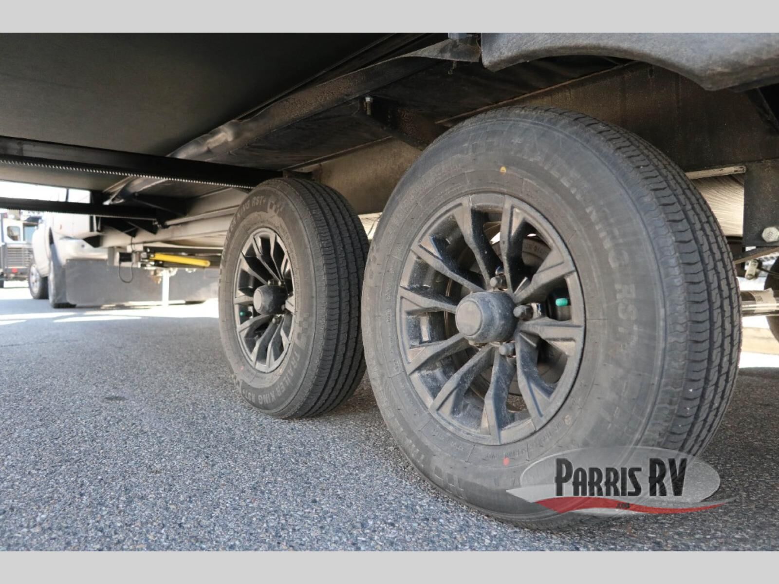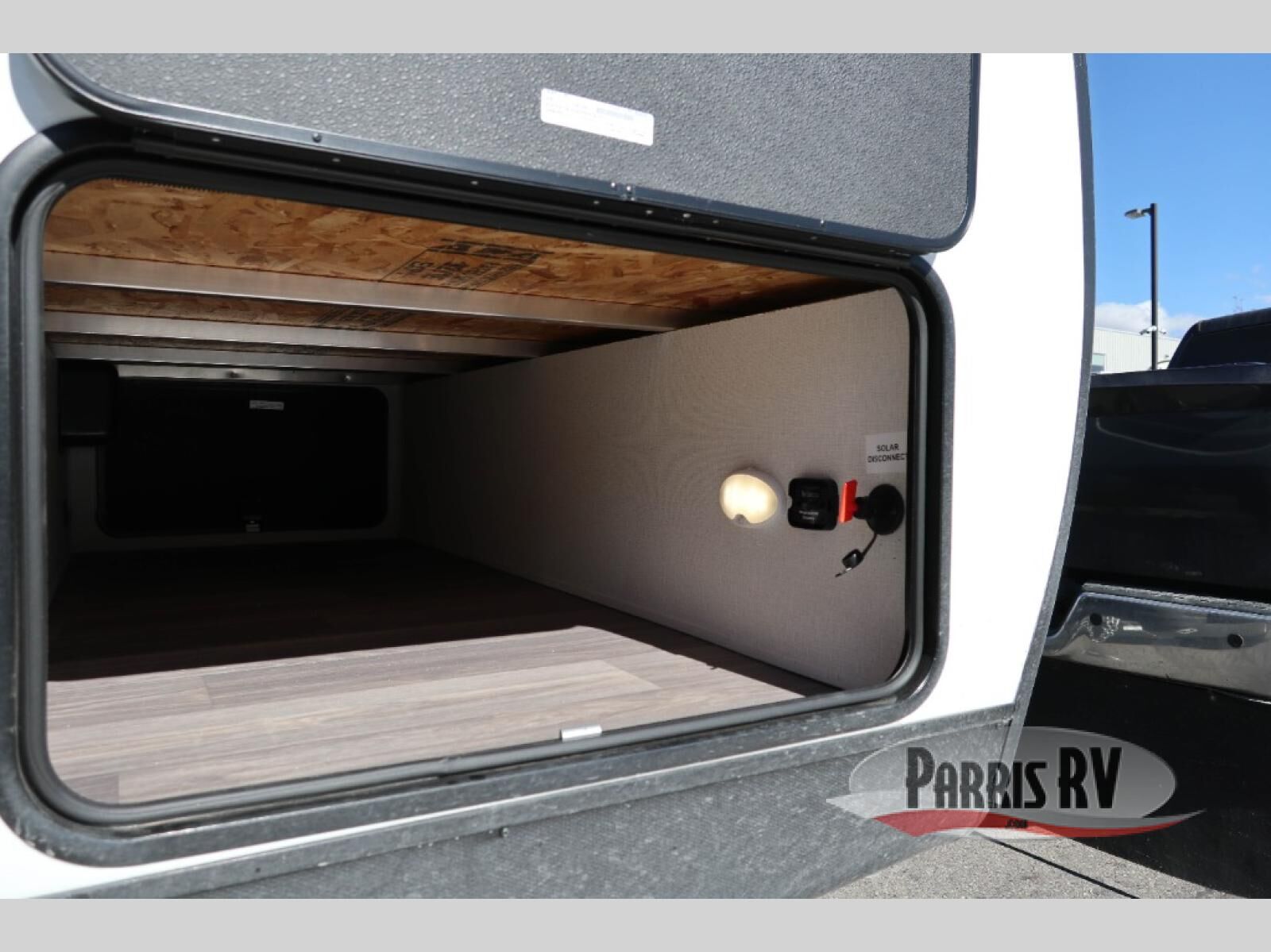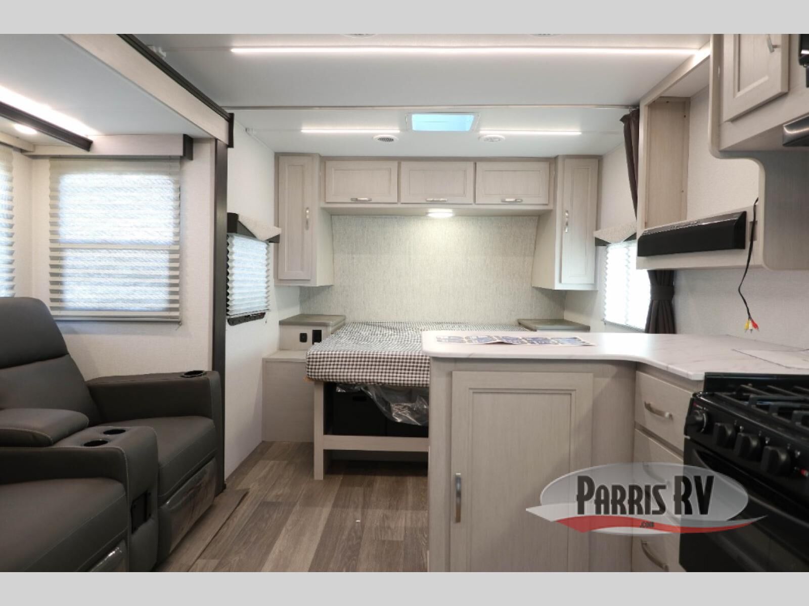 Camping just got a whole lot sweeter in this travel trailer with a rear ramp door and available/optional patio kit! There is a slide out for more interior space, and here you'll find the 70" sofa, 12V refrigerator, and pantry for snacks. There is ample counter space to prep meals, and the full bath will let you freshen up after a day outdoors. When you're ready for some shut-eye, the queen bed up front will provide a great night's rest, and there are dual bedside wardrobes to keep your things organized plus a privacy curtain if you have guests staying over on the sofa.