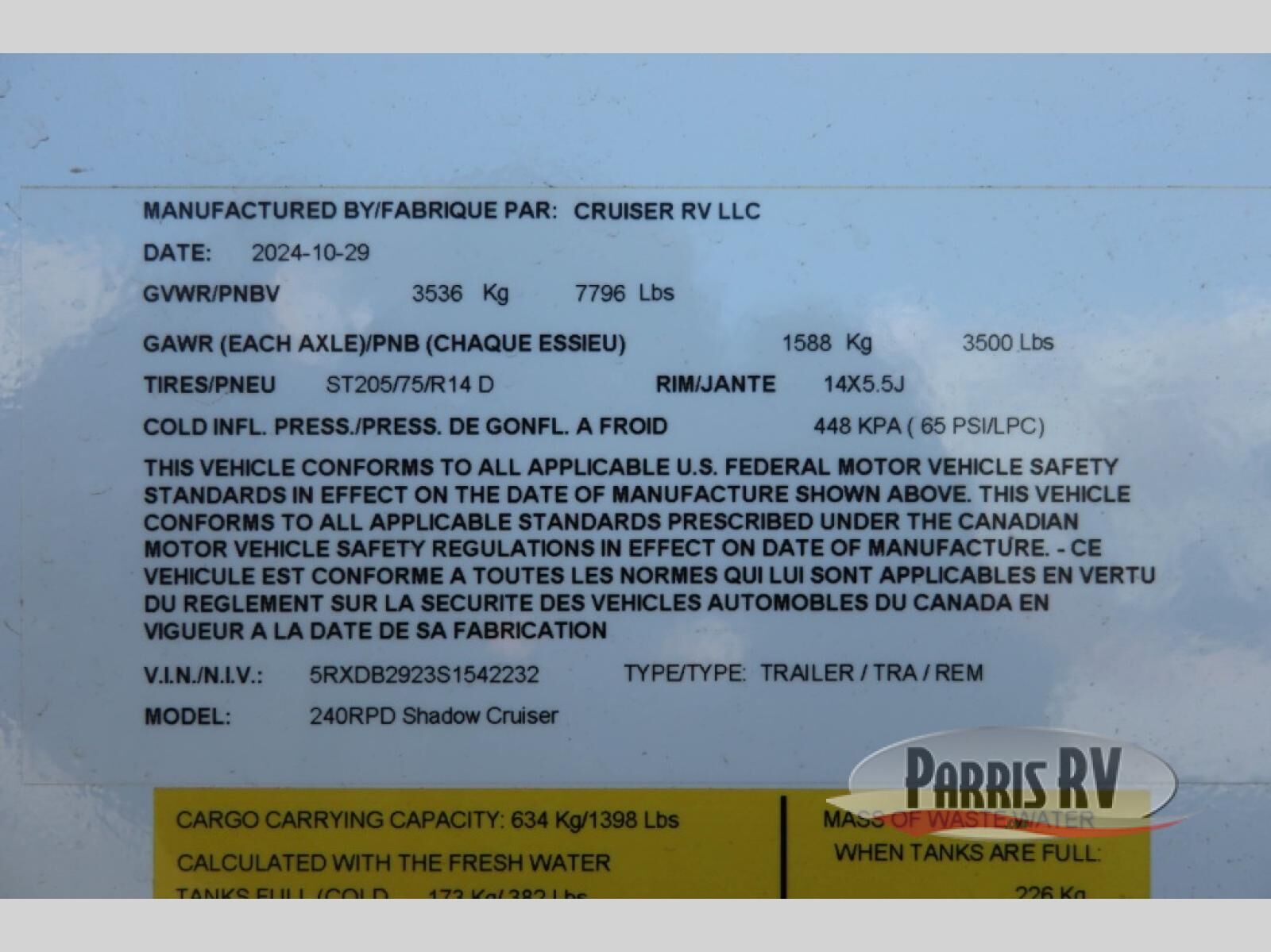 Cruiser Shadow Cruiser travel trailer 240RPD highlights: