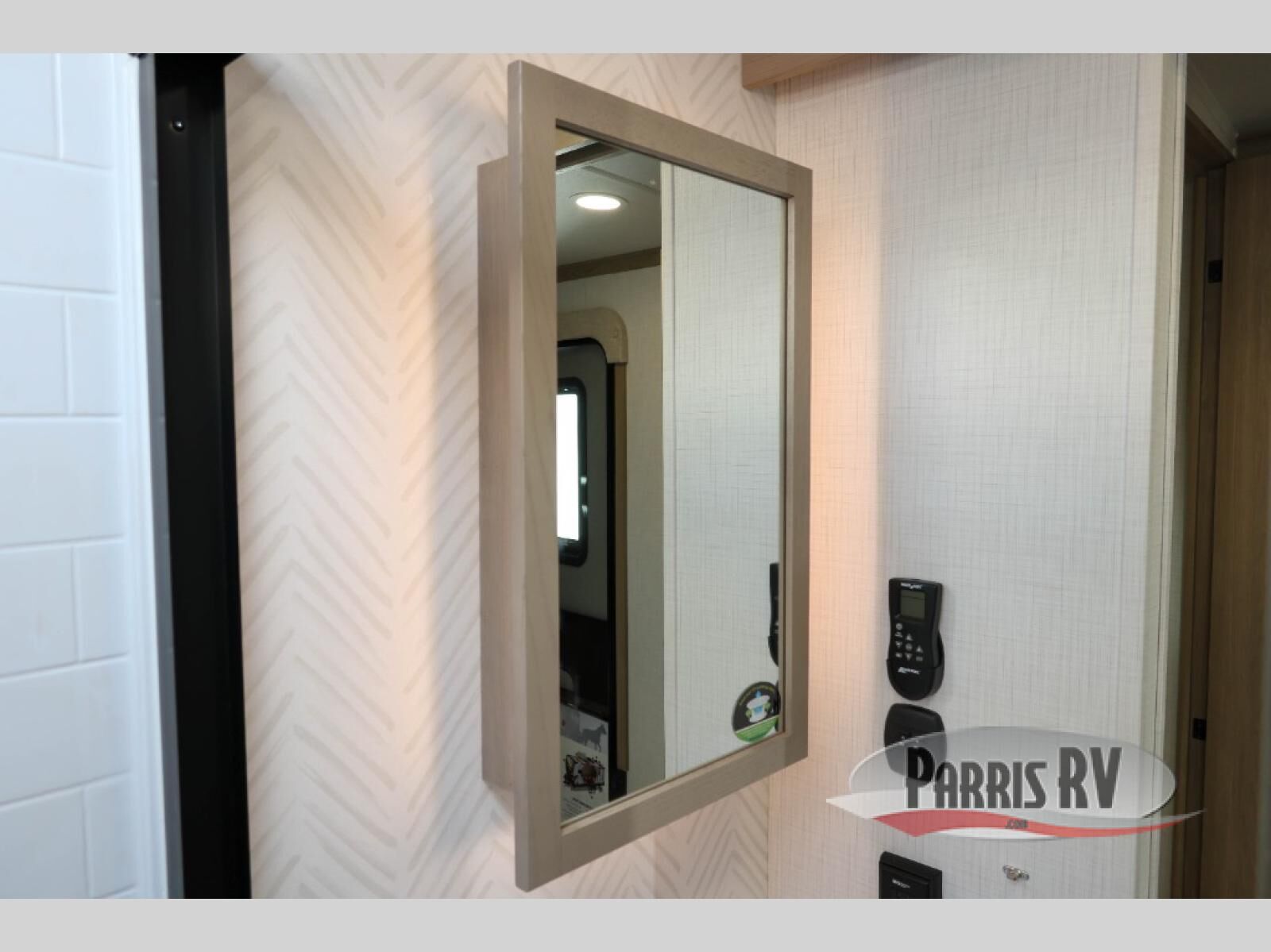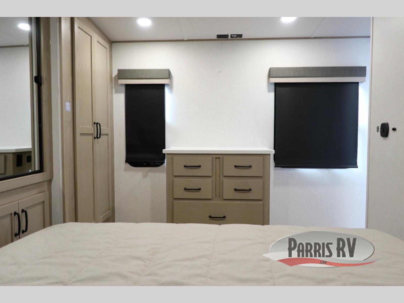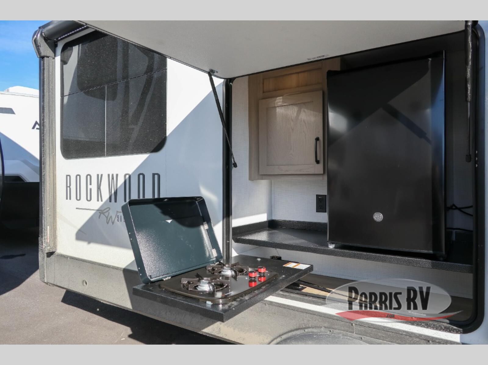 With any Rockwood Signature fifth wheel or travel trailer by Forest River RV, you will enjoy superior construction that includes laminated white fiberglass sidewalls, a radius roof with vaulted interior ceilings, plus radiant foil insulation and an enclosed underbelly for use in all types of weather. Some convenient exterior features include Keyed Alike locks, a rear ladder, a 200W solar panel, and a tire pressure monitor system with a monitor for added safety. The interior offers a One Touch OneControl panel with WeRV app control, for lights, awning, slides, water heater and more, and the Air 360+ omnidirectional antenna with WiFi prep lets you work while away from home if needed. You will also appreciate the interior vaulted ceilings, residential soft close doors and drawers, solid surface kitchen countertops, and designer kitchen backsplash!