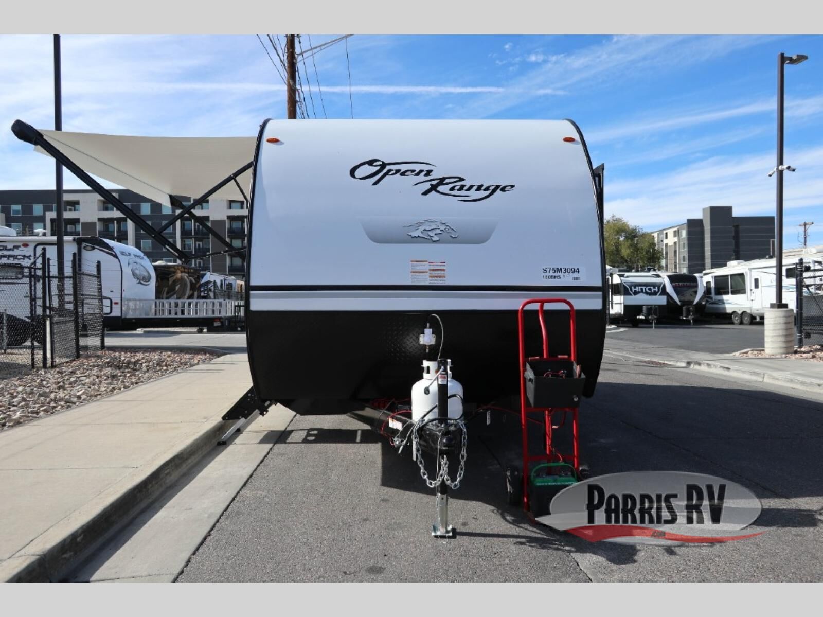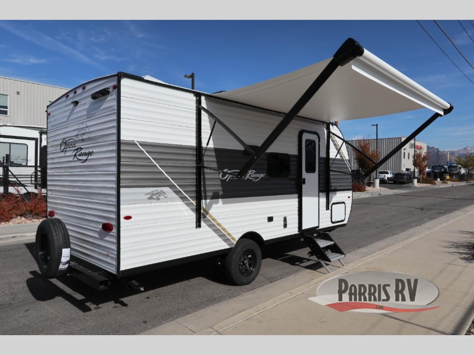 The affordable Open Range Conventional travel trailers by Highland Ridge are ready to meet your camping needs! You will appreciate the durable Magnum Roof system, plus each model is constructed with black front diamond plate protection, 5/8" main floor decking, and self-adjusting electric brakes with E-Z Lube axles for smooth towing. The 81" interior height means you won't feel cramped when relaxing with friends and family, and the residential vinyl flooring throughout is easy to clean, which will be perfect if you're camping with little ones or pets. These models also include a ceiling mount Bluetooth speaker, a digital TV antenna that will go perfectly with the optional Smart TV, plus a 13,500 BTU roof mounted A/C to keep you cool on those hot summer months.