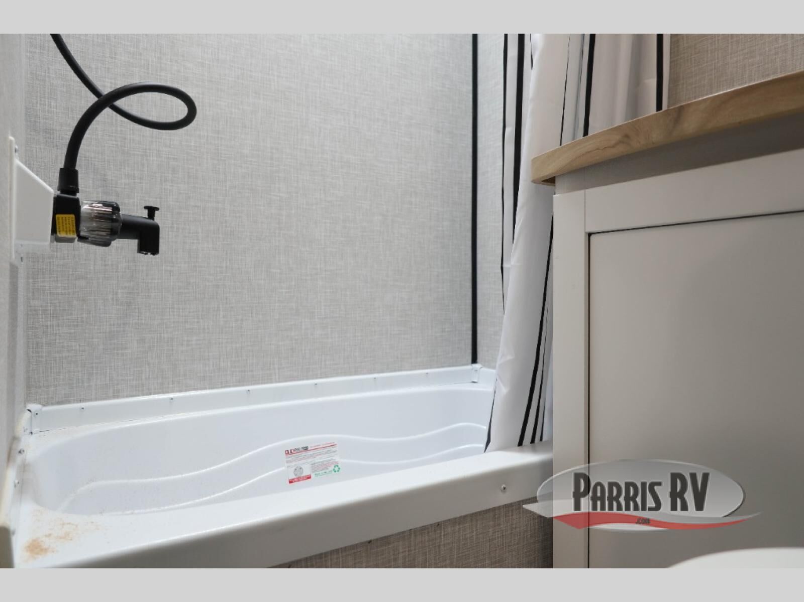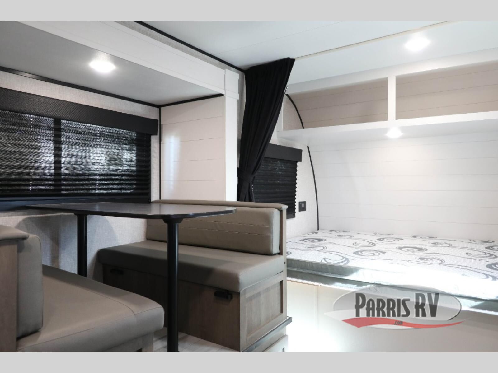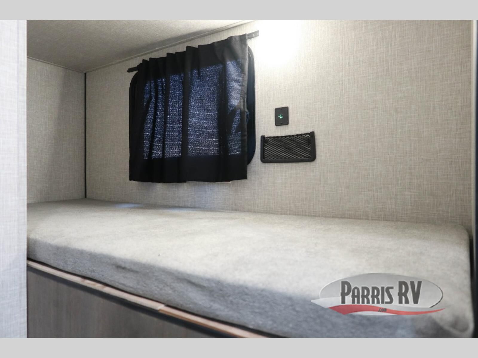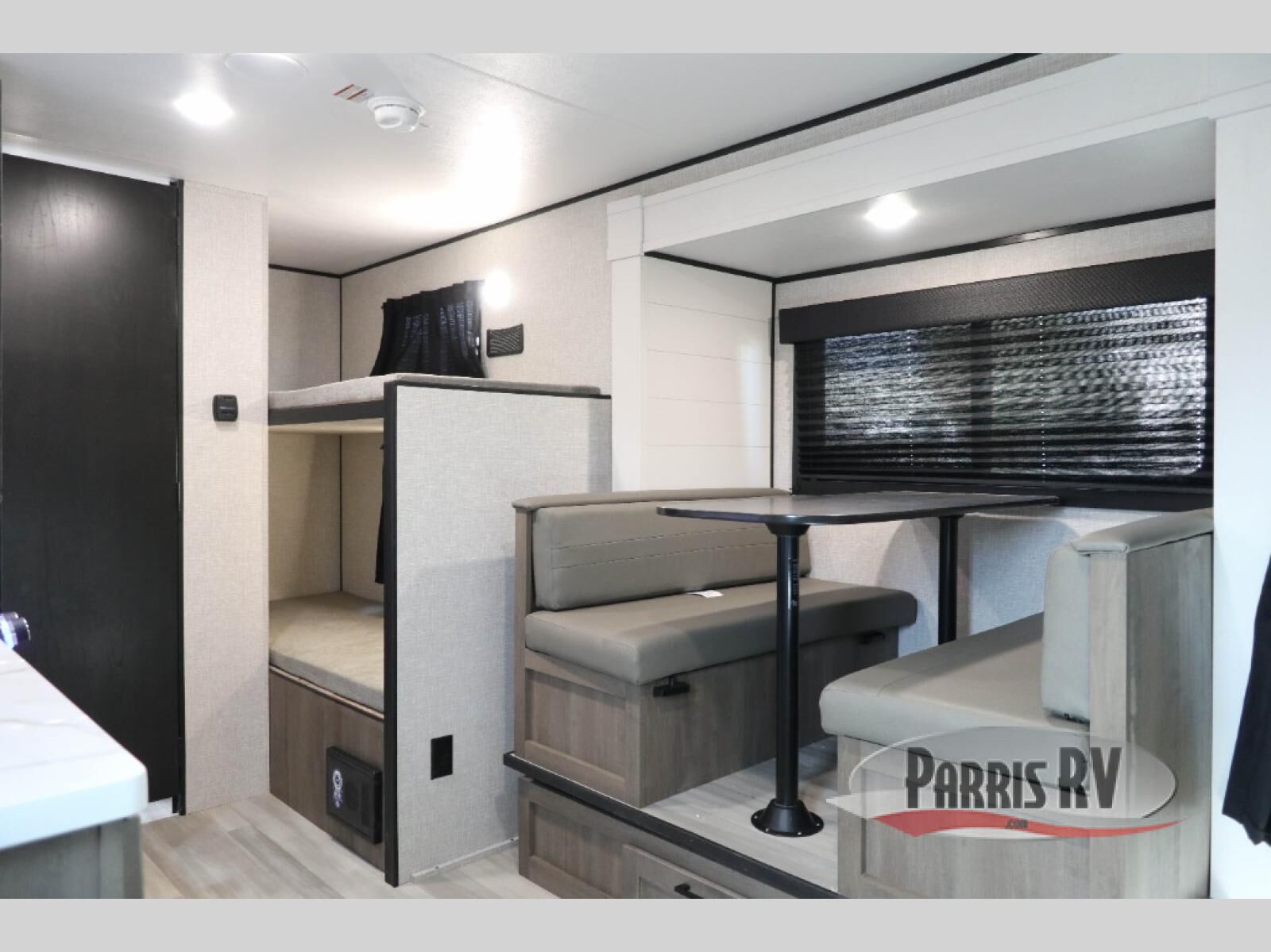 Camping with a group has never been easier than in this travel trailer with bunk beds! You will enjoy the bed up front and there is a wardrobe nearby to keep your clothes tidy. This model also includes a booth dinette slide that will be perfect for meal times, game night, and even sleeping space for one to two people. Whip up some eggs and bacon on the two burner cooktop or in the microwave oven before you head out for the day. The full bath with a tub/shower will be perfect if you're camping with little ones, and there is plenty of counterspace to set out your bathroom necessities.