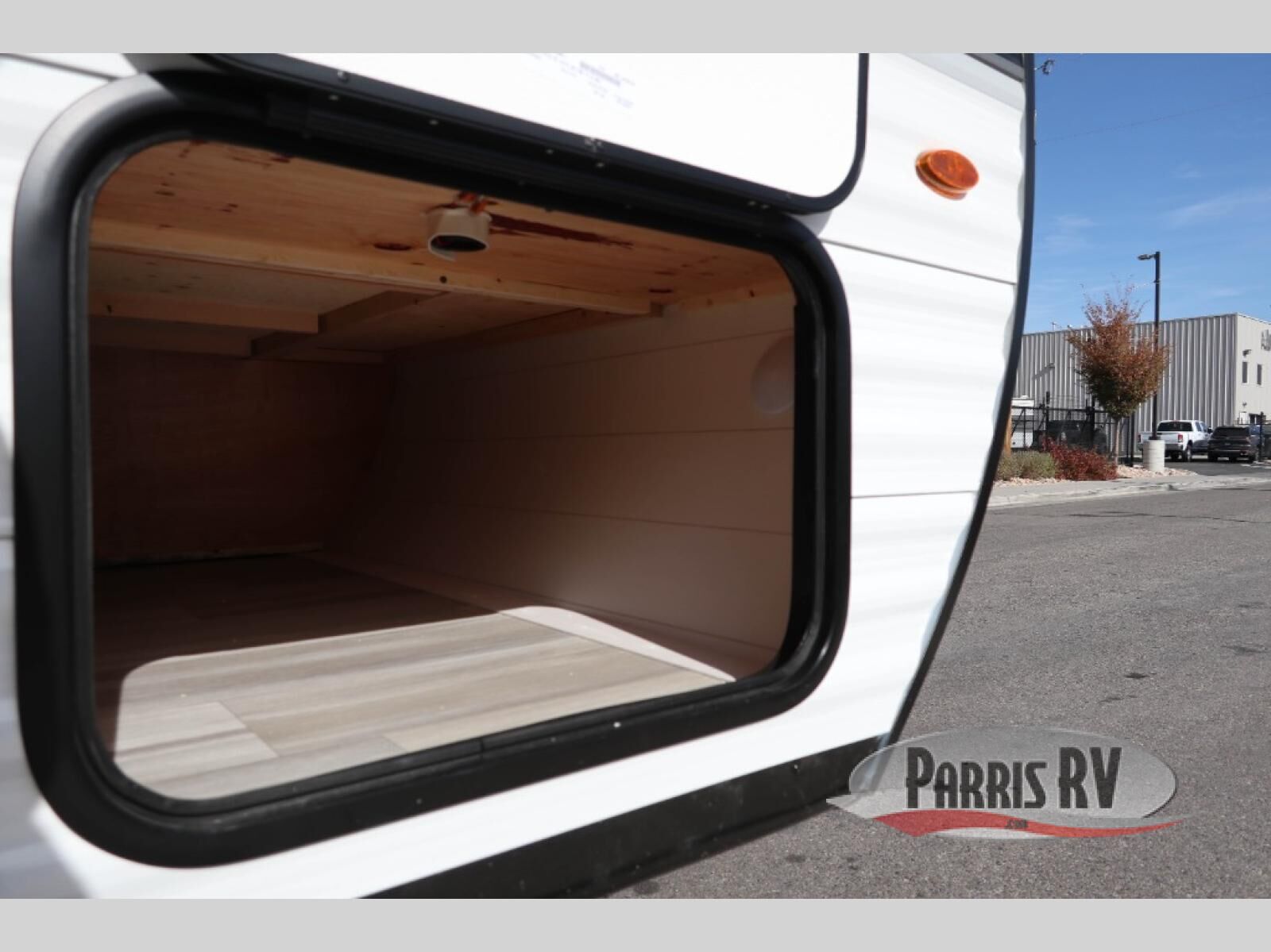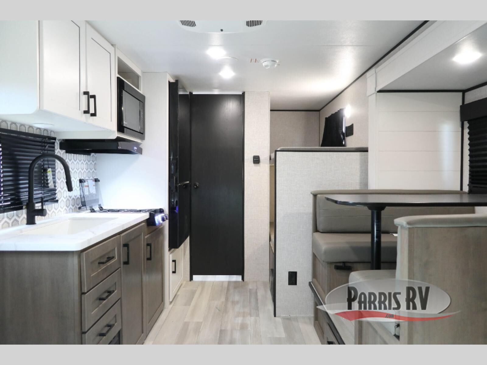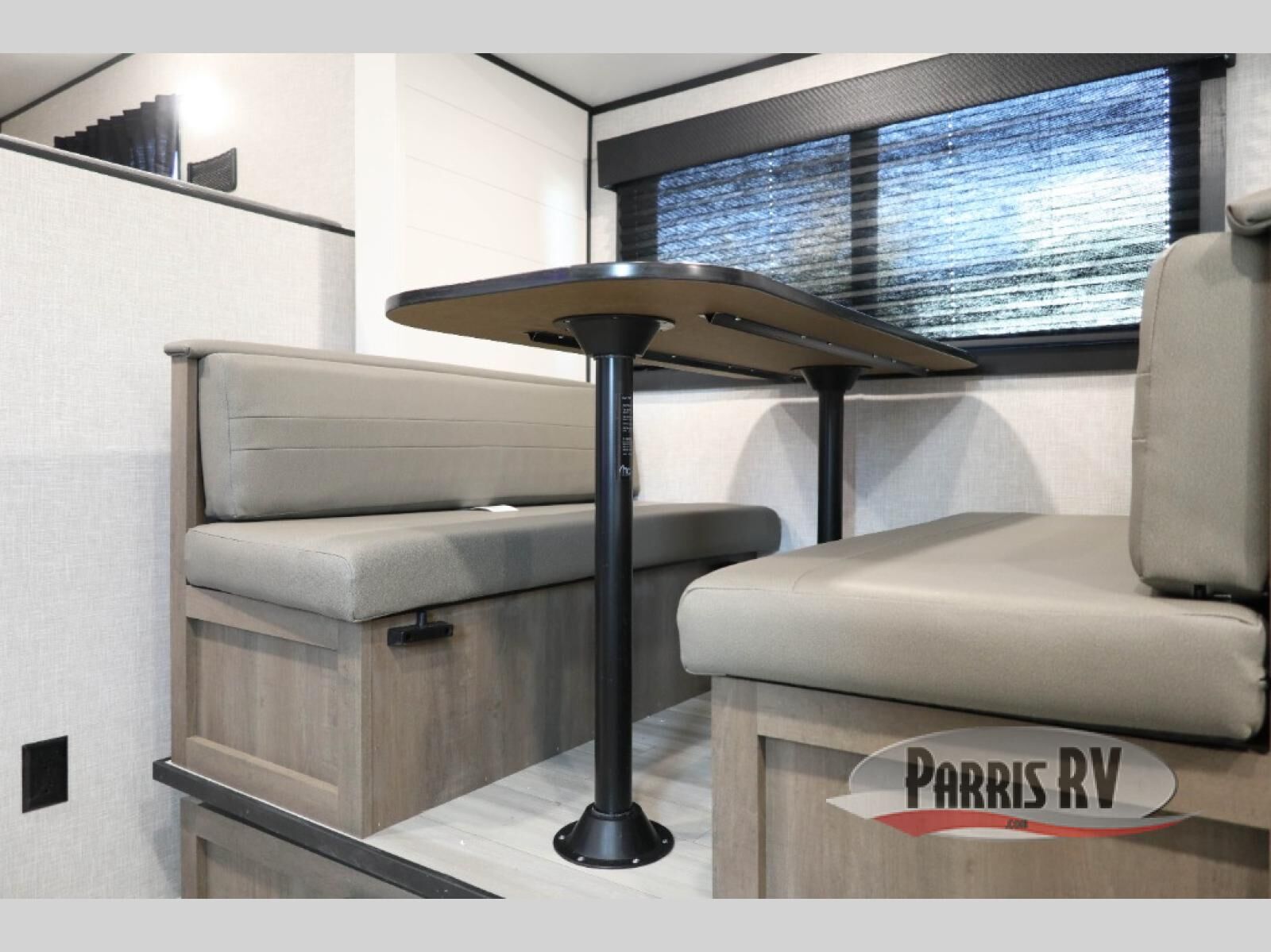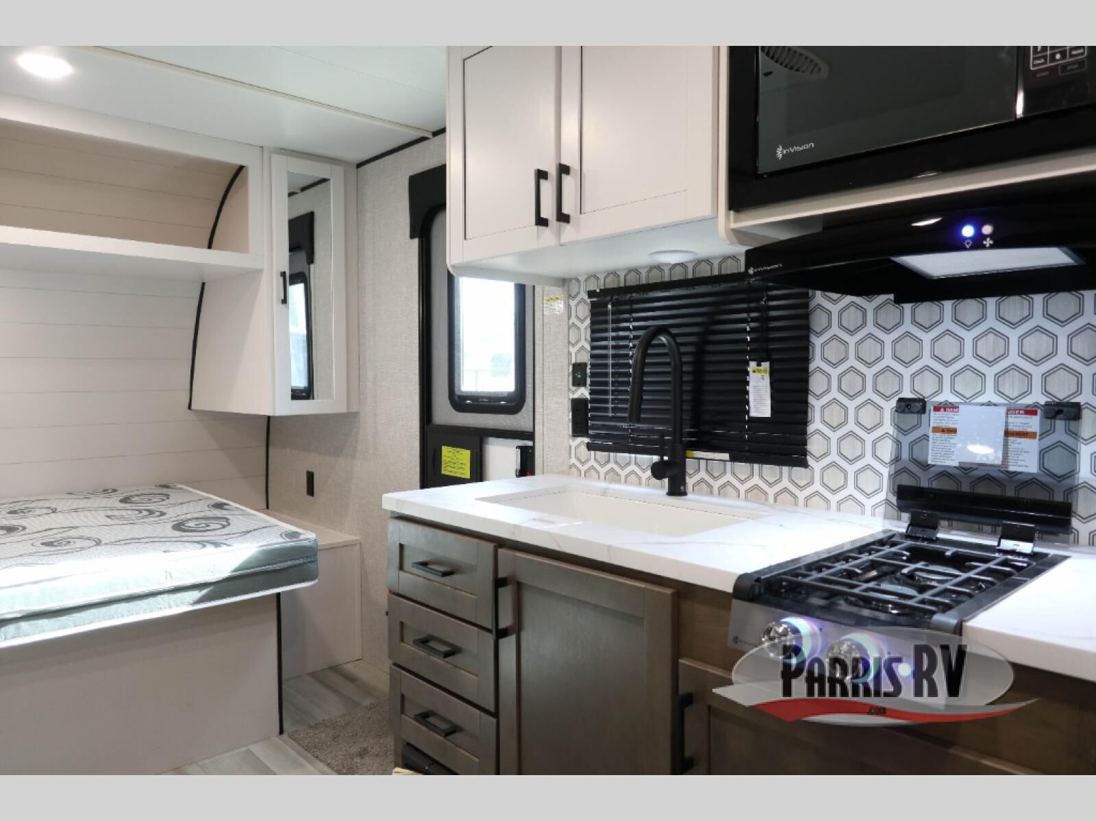 Camping with a group has never been easier than in this travel trailer with bunk beds! You will enjoy the bed up front and there is a wardrobe nearby to keep your clothes tidy. This model also includes a booth dinette slide that will be perfect for meal times, game night, and even sleeping space for one to two people. Whip up some eggs and bacon on the two burner cooktop or in the microwave oven before you head out for the day. The full bath with a tub/shower will be perfect if you're camping with little ones, and there is plenty of counterspace to set out your bathroom necessities.