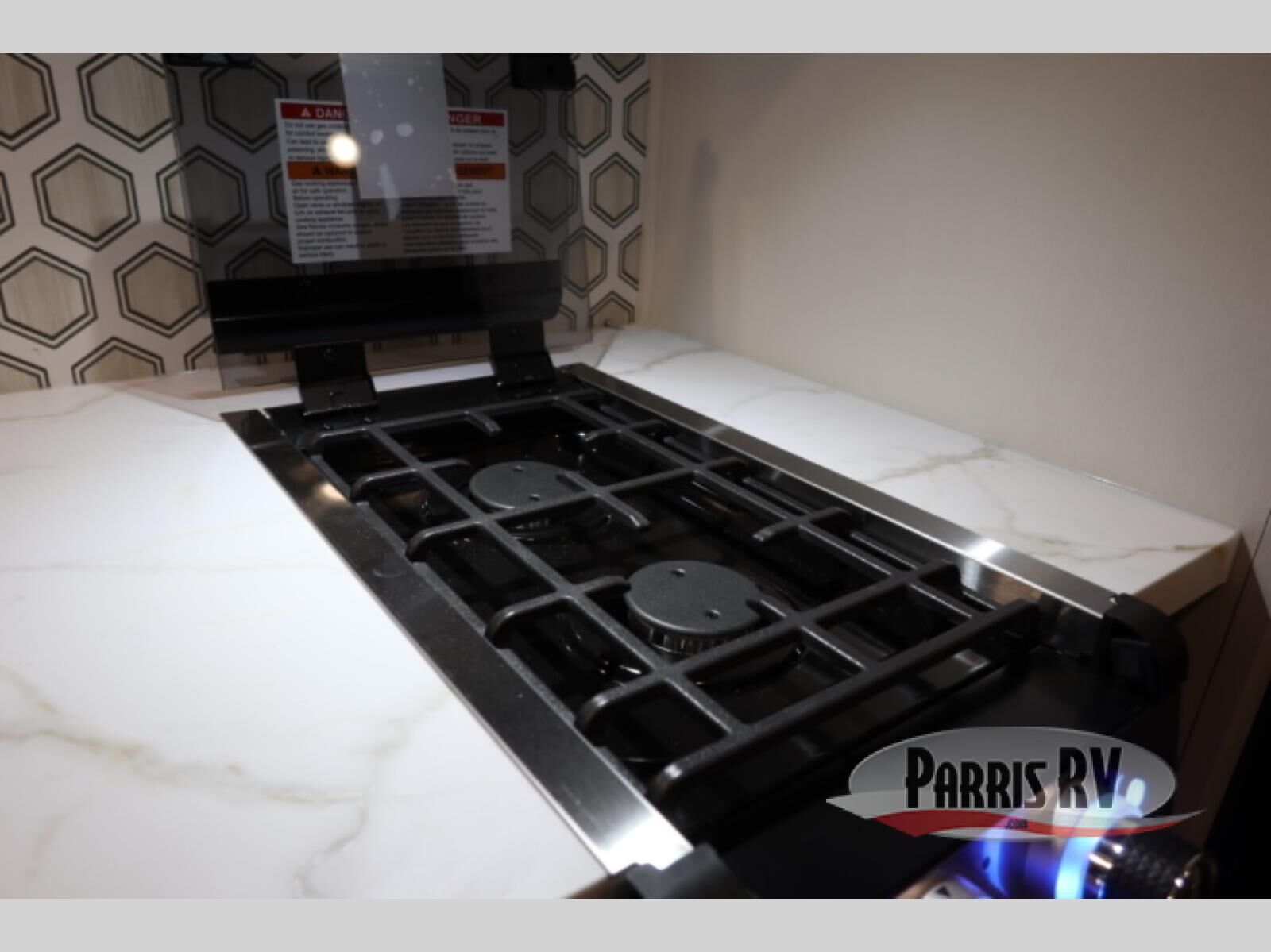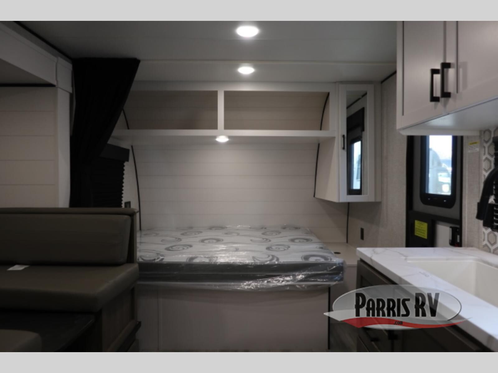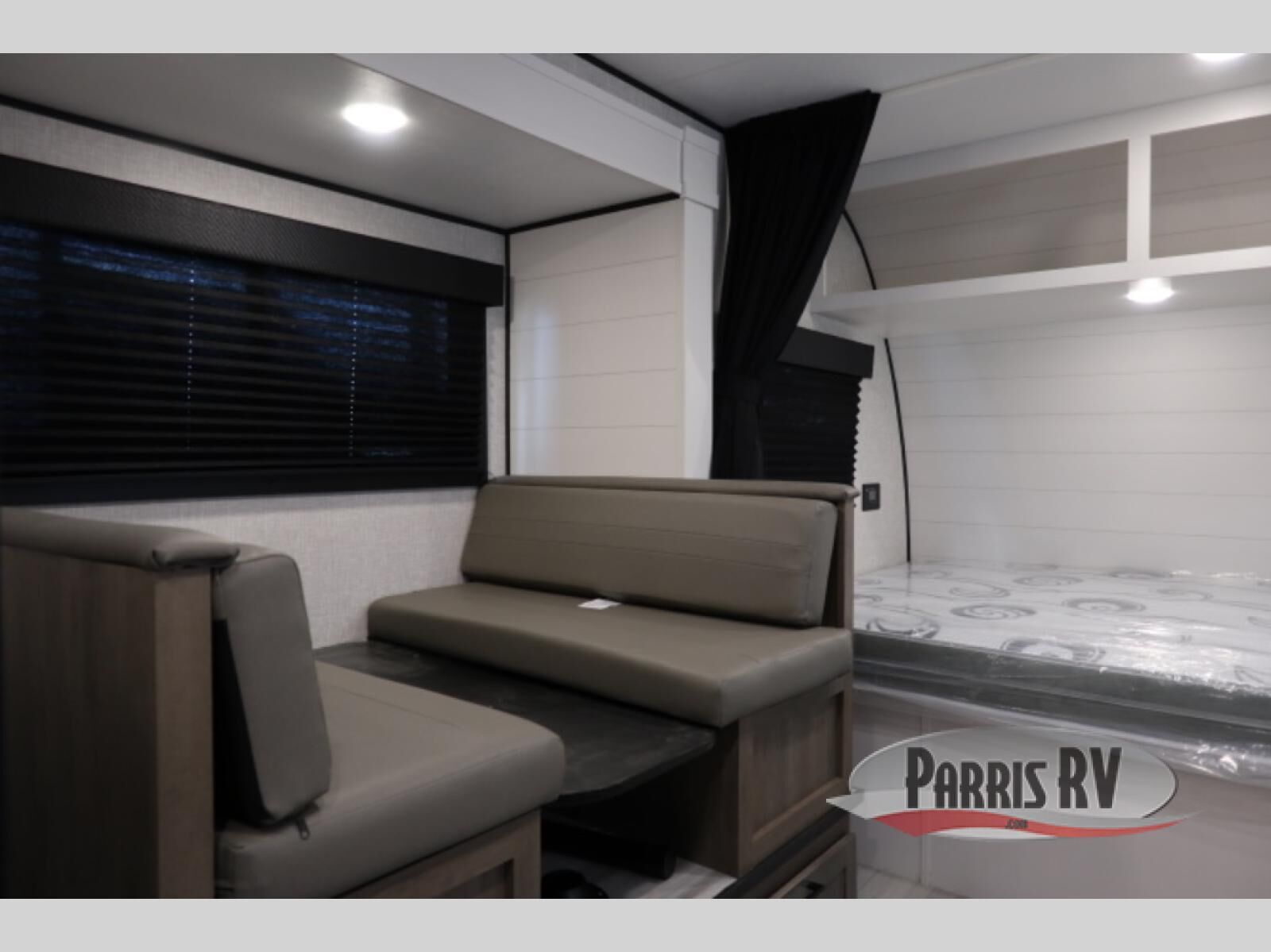 Camping with a group has never been easier than in this travel trailer with bunk beds! You will enjoy the bed up front and there is a wardrobe nearby to keep your clothes tidy. This model also includes a booth dinette slide that will be perfect for meal times, game night, and even sleeping space for one to two people. Whip up some eggs and bacon on the two burner cooktop or in the microwave oven before you head out for the day. The full bath with a tub/shower will be perfect if you're camping with little ones, and there is plenty of counterspace to set out your bathroom necessities.