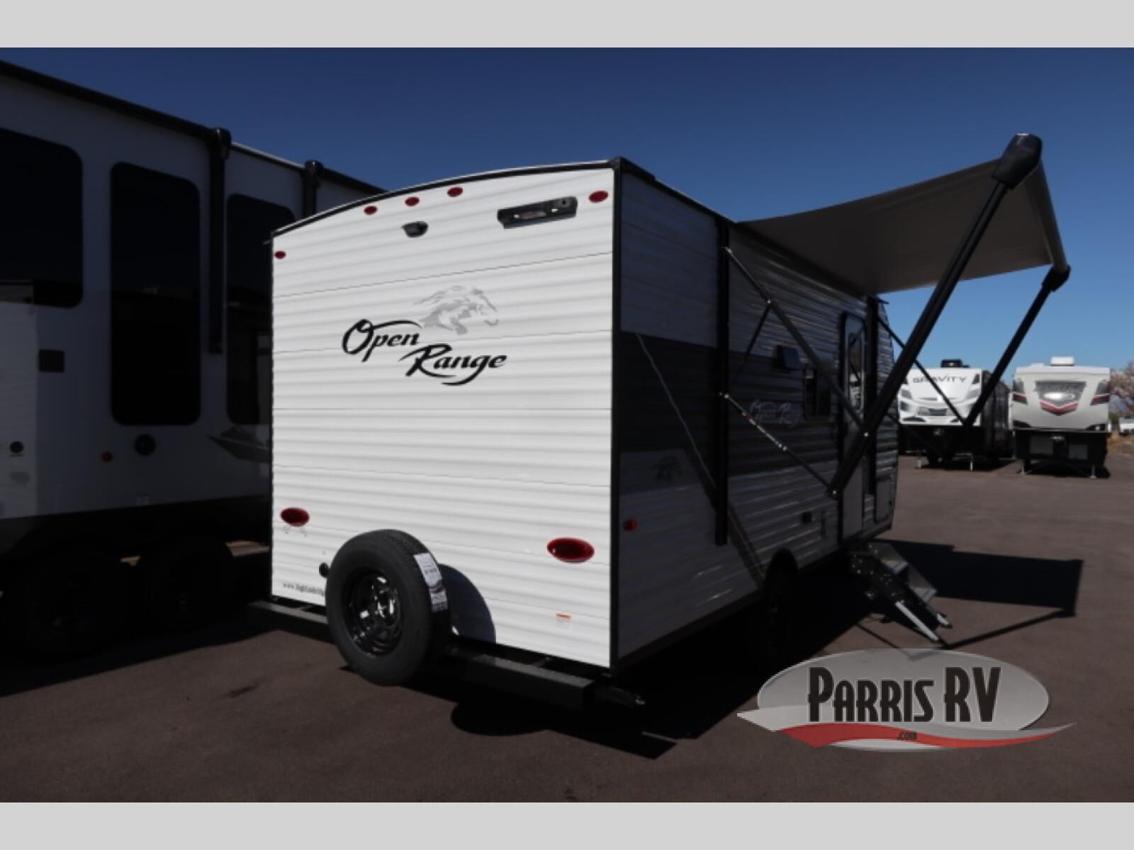 The affordable Open Range Conventional travel trailers by Highland Ridge are ready to meet your camping needs! You will appreciate the durable Magnum Roof system, plus each model is constructed with black front diamond plate protection, 5/8" main floor decking, and self-adjusting electric brakes with E-Z Lube axles for smooth towing. The 81" interior height means you won't feel cramped when relaxing with friends and family, and the residential vinyl flooring throughout is easy to clean, which will be perfect if you're camping with little ones or pets. These models also include a ceiling mount Bluetooth speaker, a digital TV antenna that will go perfectly with the optional Smart TV, plus a 13,500 BTU roof mounted A/C to keep you cool on those hot summer months.