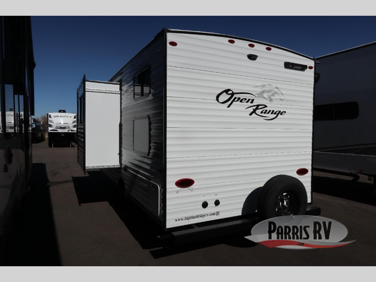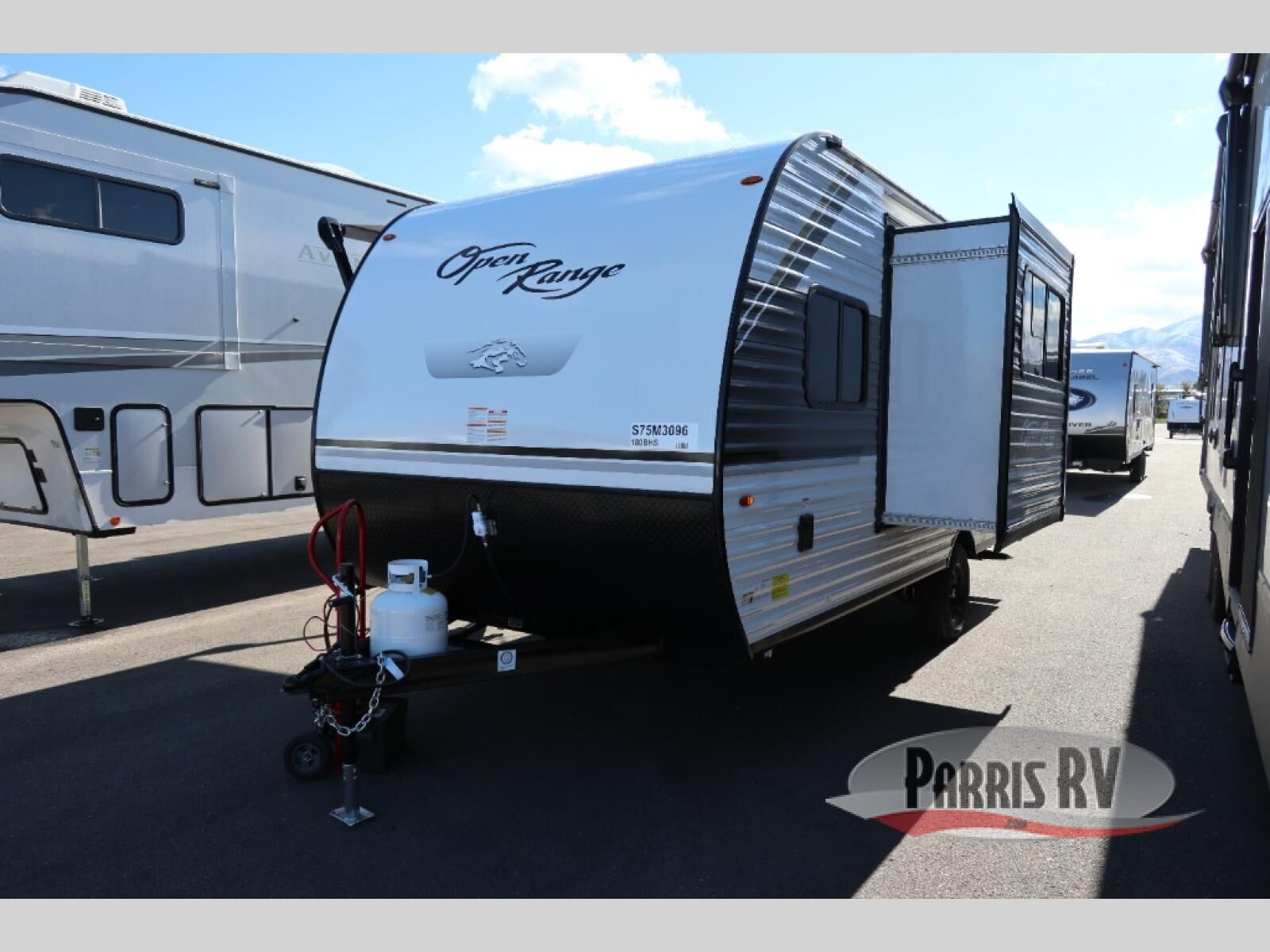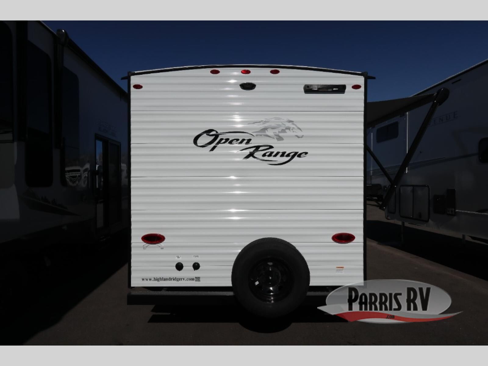 The affordable Open Range Conventional travel trailers by Highland Ridge are ready to meet your camping needs! You will appreciate the durable Magnum Roof system, plus each model is constructed with black front diamond plate protection, 5/8" main floor decking, and self-adjusting electric brakes with E-Z Lube axles for smooth towing. The 81" interior height means you won't feel cramped when relaxing with friends and family, and the residential vinyl flooring throughout is easy to clean, which will be perfect if you're camping with little ones or pets. These models also include a ceiling mount Bluetooth speaker, a digital TV antenna that will go perfectly with the optional Smart TV, plus a 13,500 BTU roof mounted A/C to keep you cool on those hot summer months.