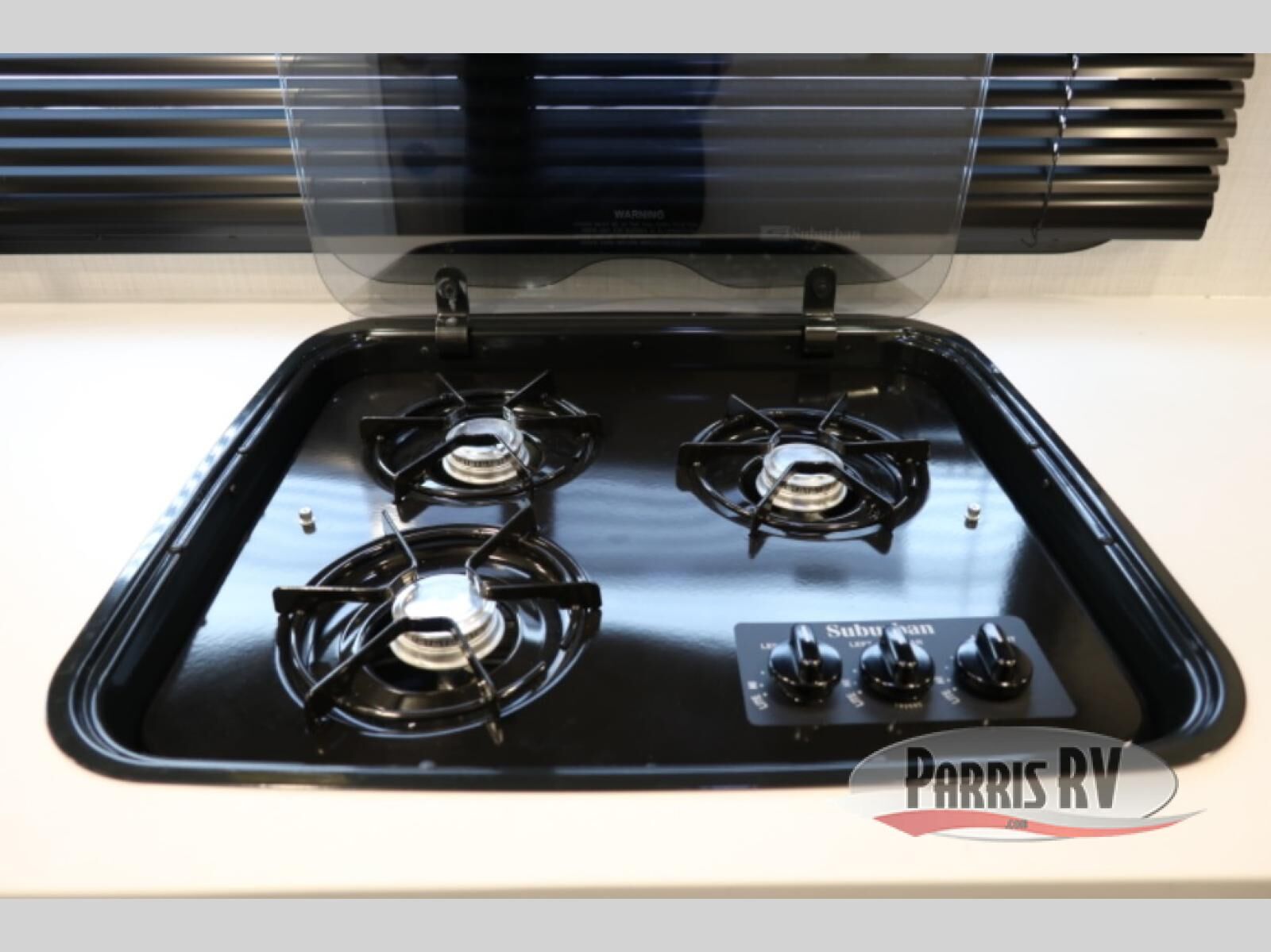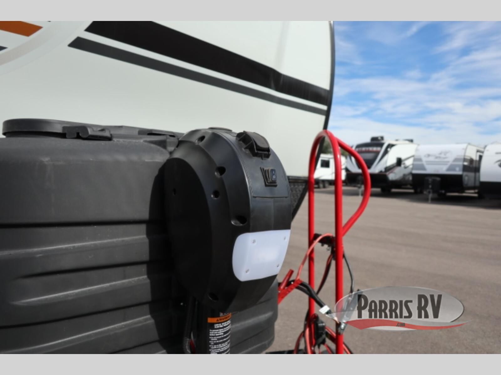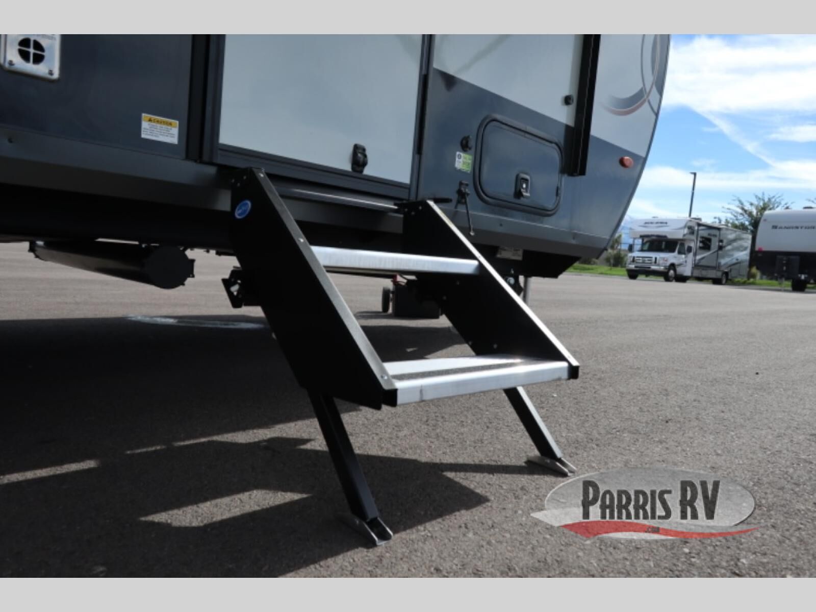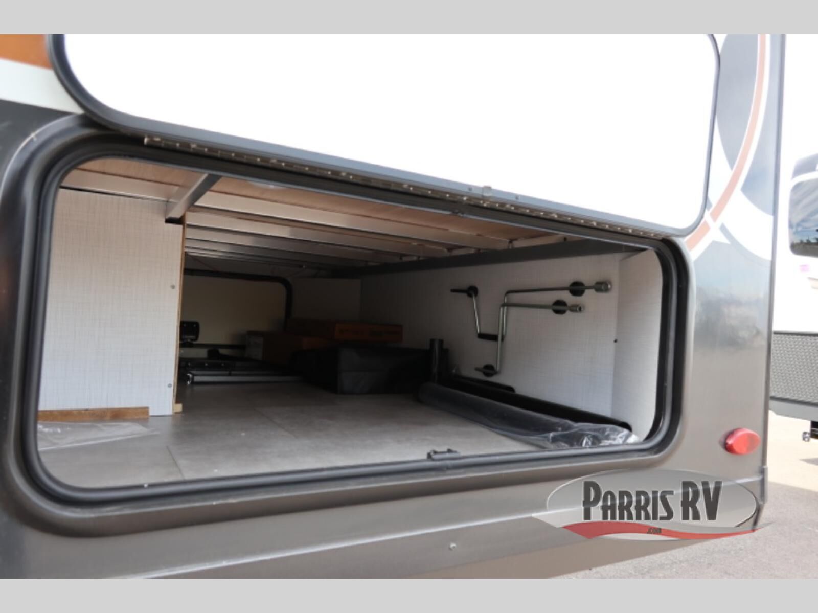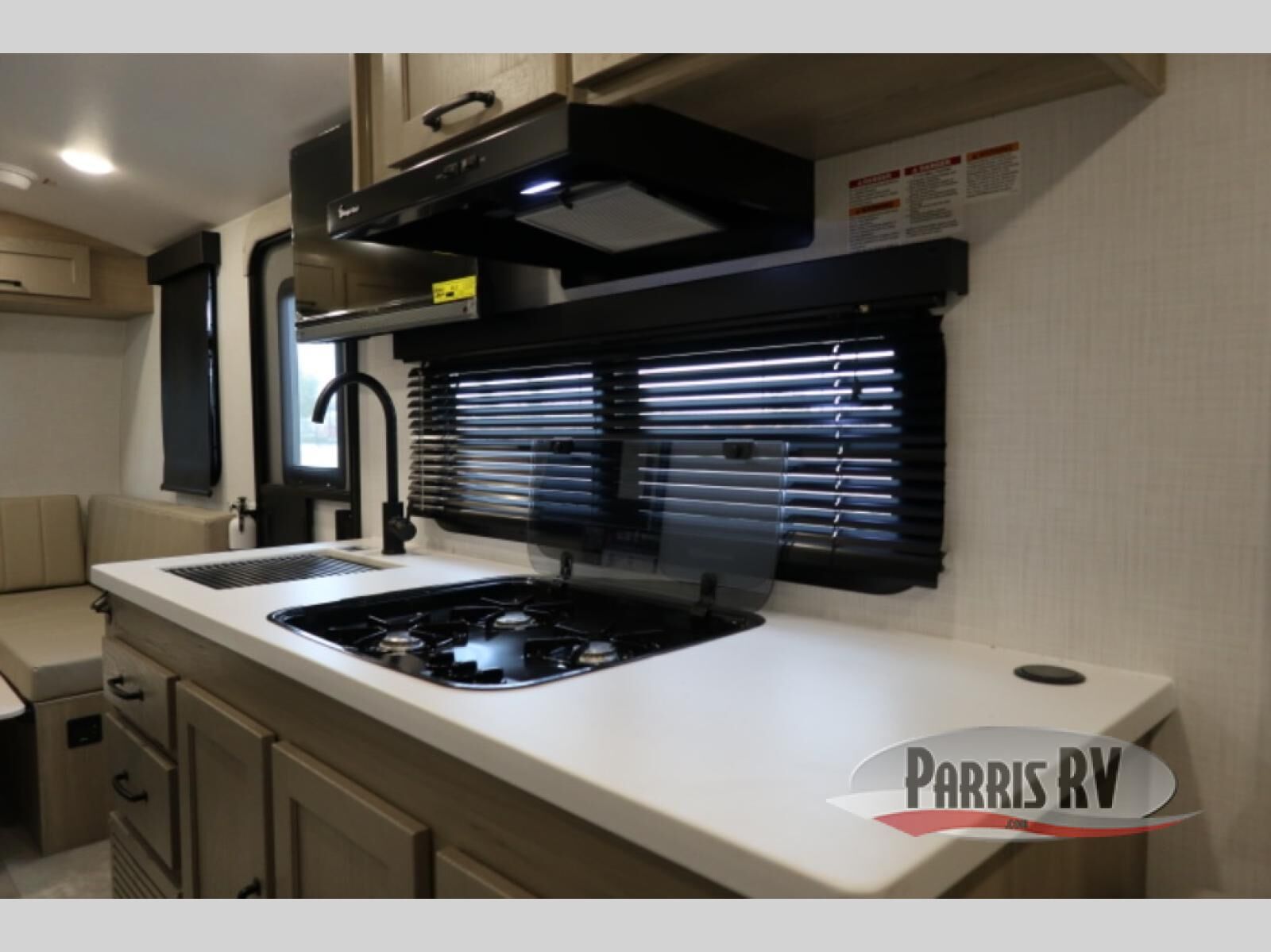 You'll love camping in this travel trailer that can sleep five each night. There is a front U-shaped dinette, a rear 54" x 74" full-size bed, plus a 26" x 80" flip-up bunk! A three burner cooktop and microwave oven let you create your best meals, and there is a 15' power awning and an exterior griddle if you want to cook outdoors. The full bath gives you privacy when freshening up after a day outdoors, and you'll find plenty of storage space in this unit, including in the overhead cabinets and the exterior pass-thru storage!