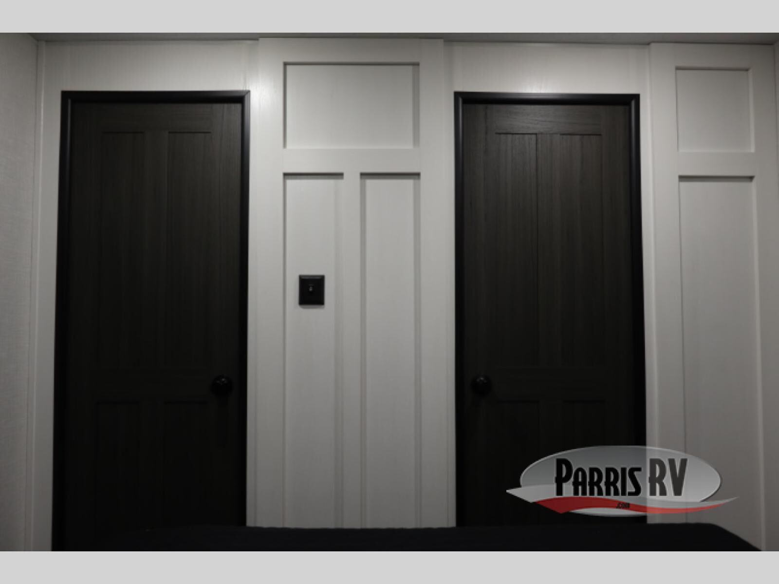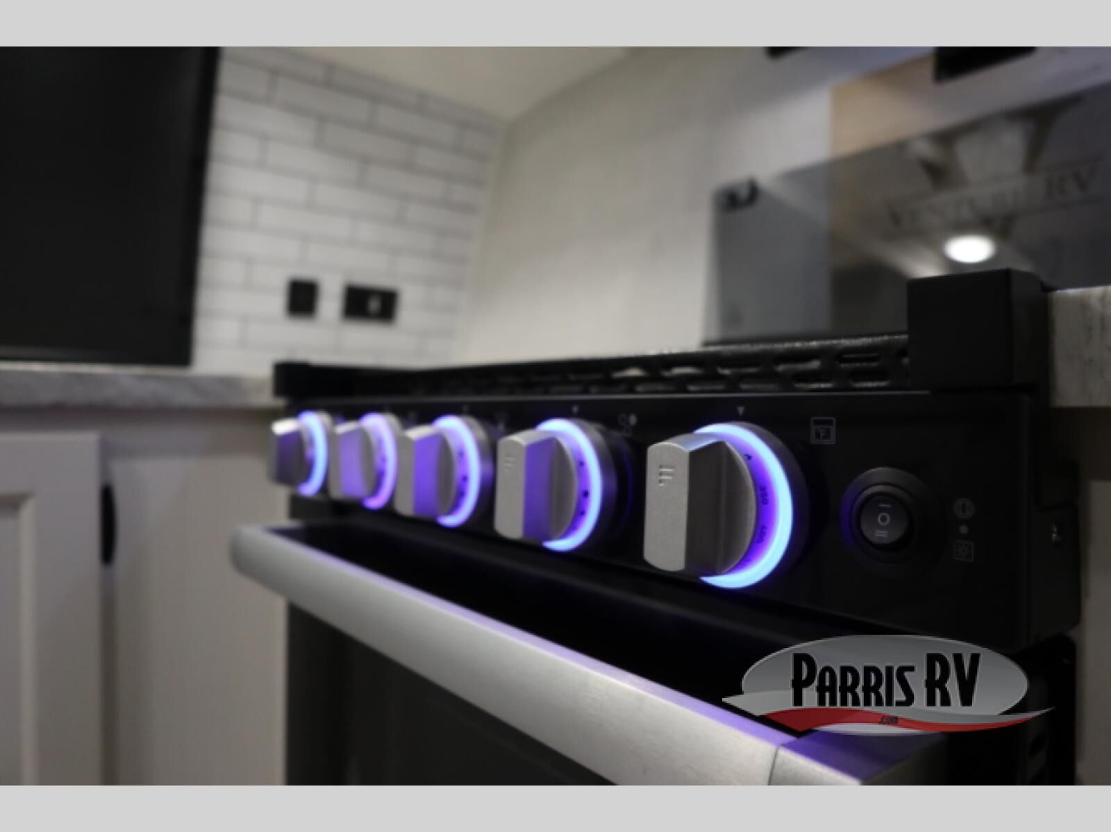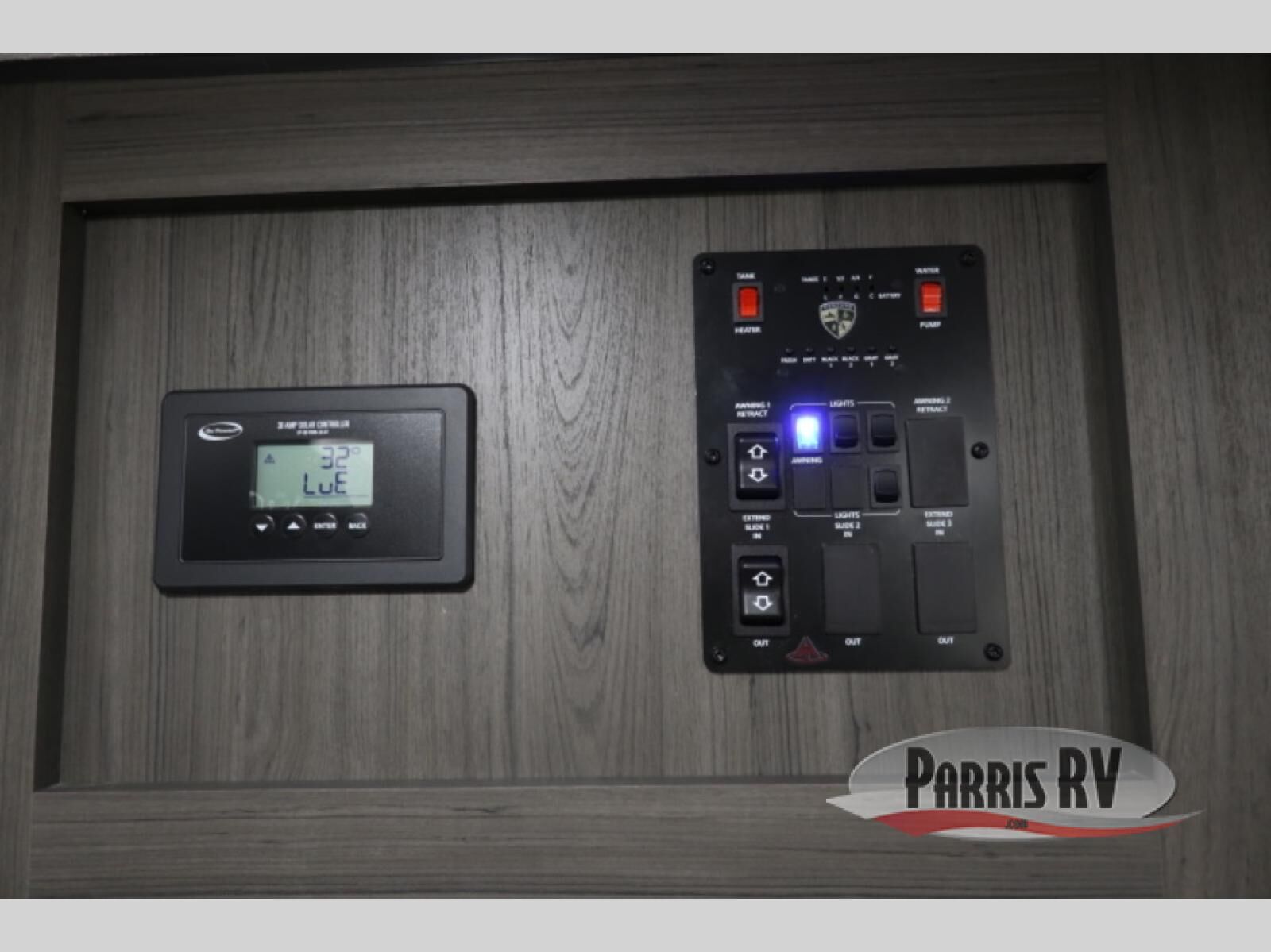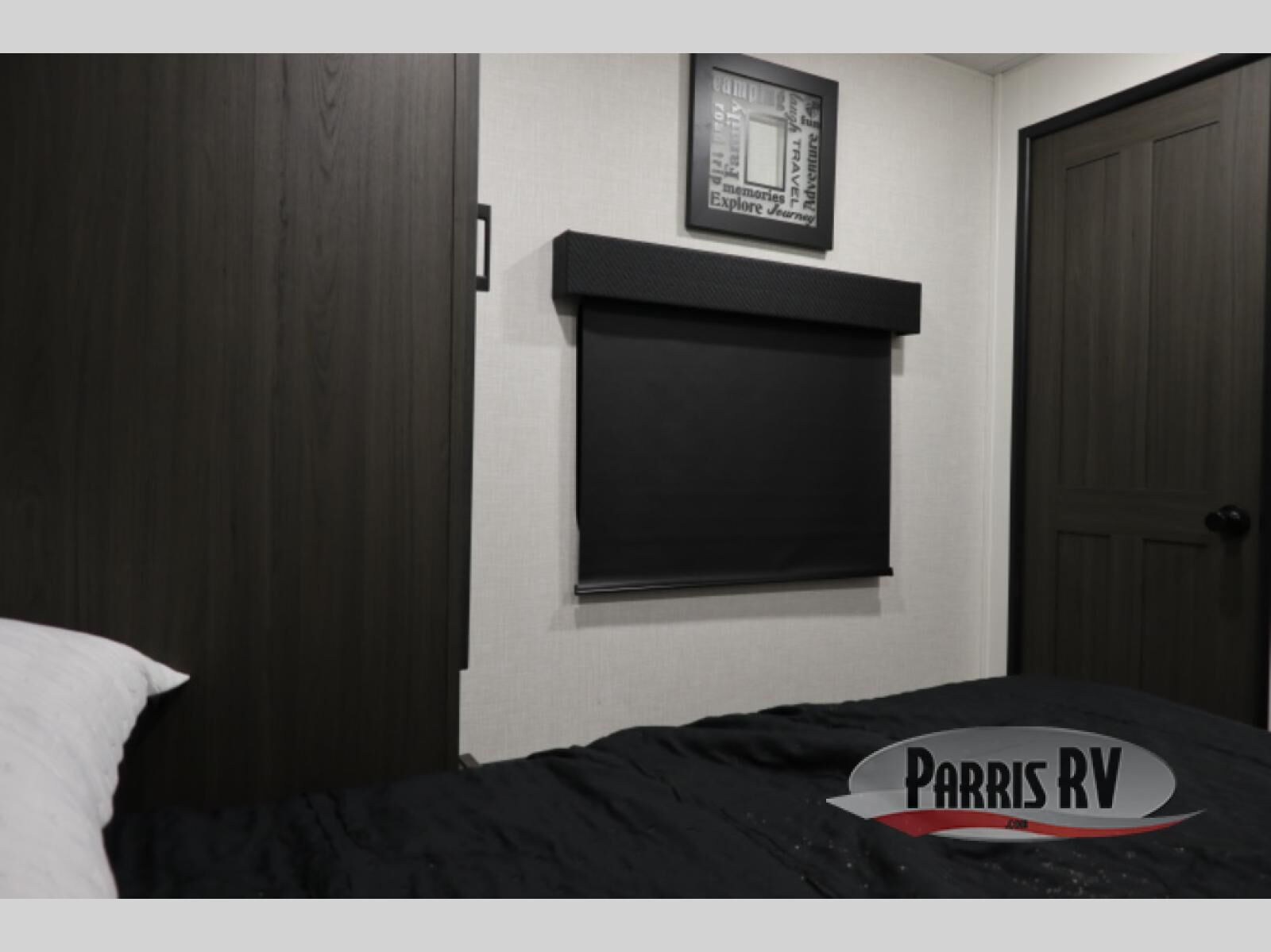 A front kitchen in this travel trailer provides more interior space! Once you have prepared your best meals with the Furrion oven and three burner cooktop, you can head to the Sit N' Slide table with flipside reversible cushions to dine. The 70" sofa also offers a comfortable place to take an afternoon nap or sit while enjoying the entertainment center with a frameless electric fireplace and 40" TV on a swing arm. A dual entry bathroom makes it easy for all to enter and has a 34" radius shower to freshen up in each morning. The rear private bedroom has a Sleep Tight queen bed for a good night's rest, wardrobes on either side of it, and an entrance into the bathroom too!