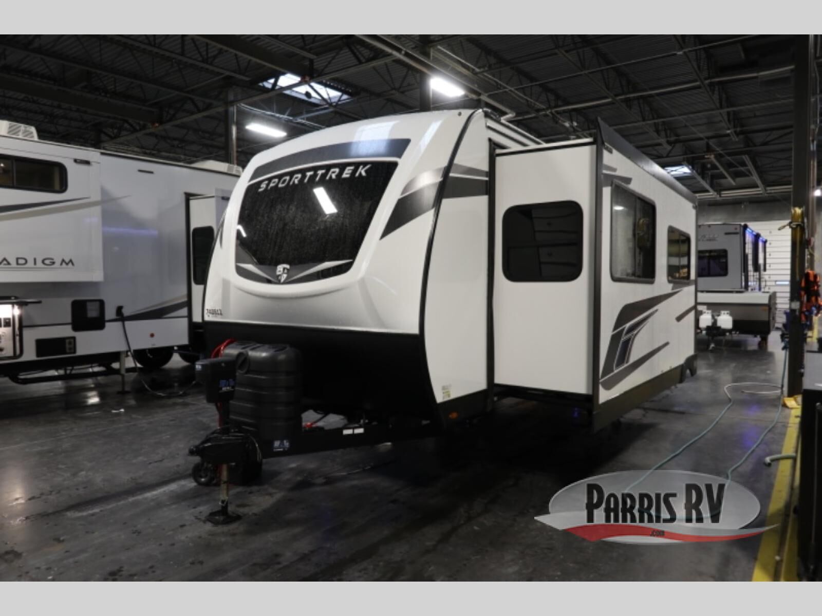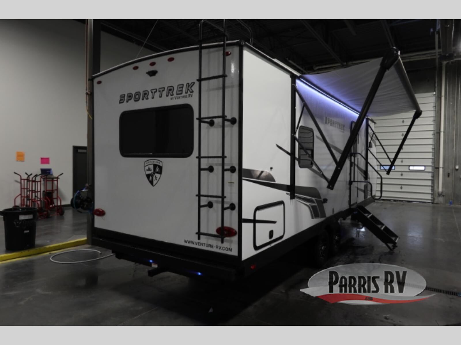 Every Venture RV SportTrek lightweight travel trailer is constructed to offer peace of mind and the comforts of home! Their purposeful residential kitchens are packed with handy features like a Furrion oven and three burner cooktop, a large stainless steel sink with a cover and dish drying rack, plus a 12V refrigerator. You will find plenty of storage throughout, including Safe-Tek hidden storage with a charging center and StorMore nightstands on either side of the bed behind the full-length closets. And the magnetic slam-latch baggage doors and spacious pass-through storage area will hold your outdoor gear in place. They even come with a hot and cold exterior shower and SporTrek's Weather Shield which includes a forced air heated and enclosed underbelly, high output A/C ducting, and more features that will let you extend your camping season. You will also love the new residential upgraded furniture, Serta memory foam mattress, barn style passage doors, and many more comforts!