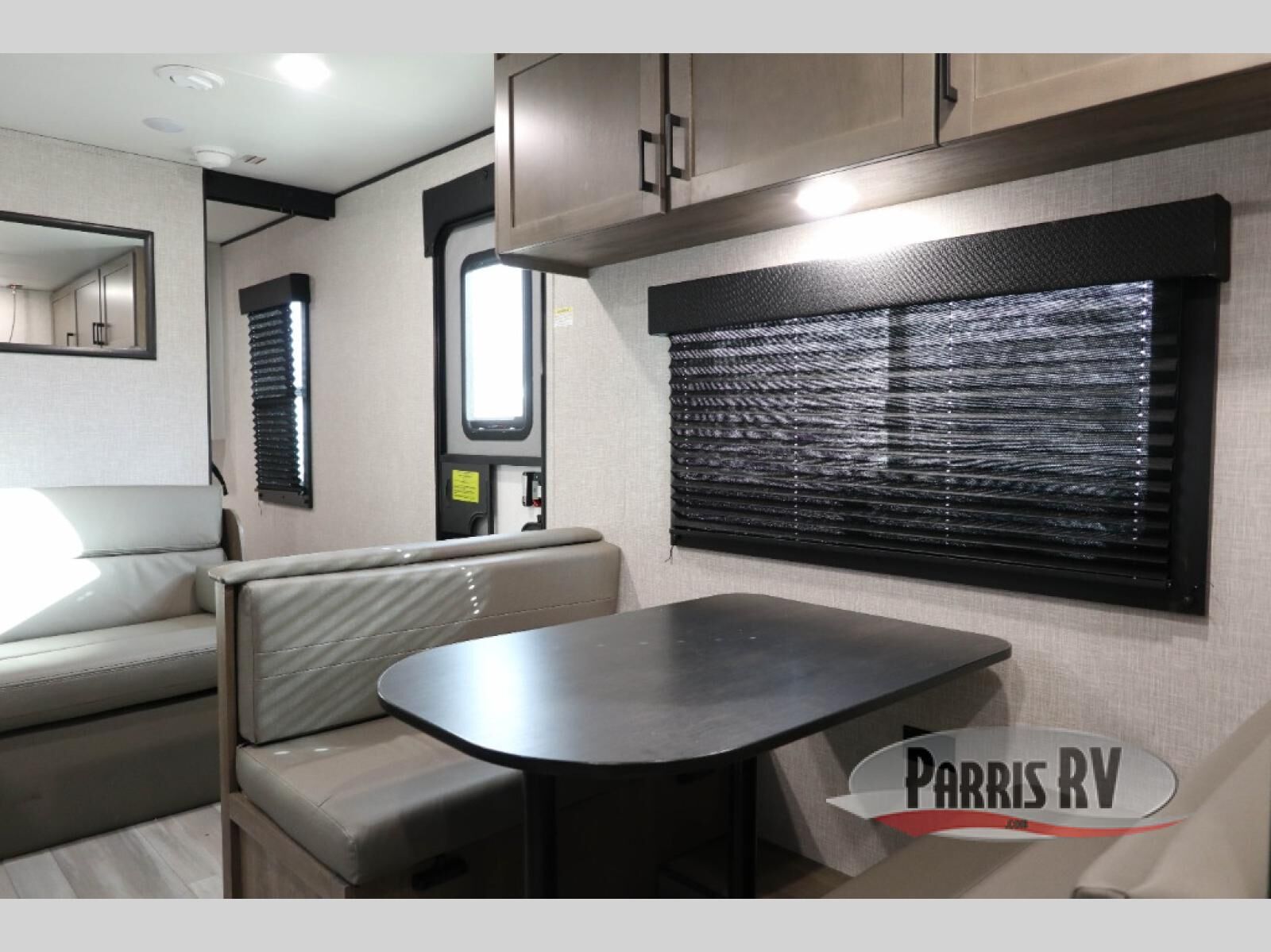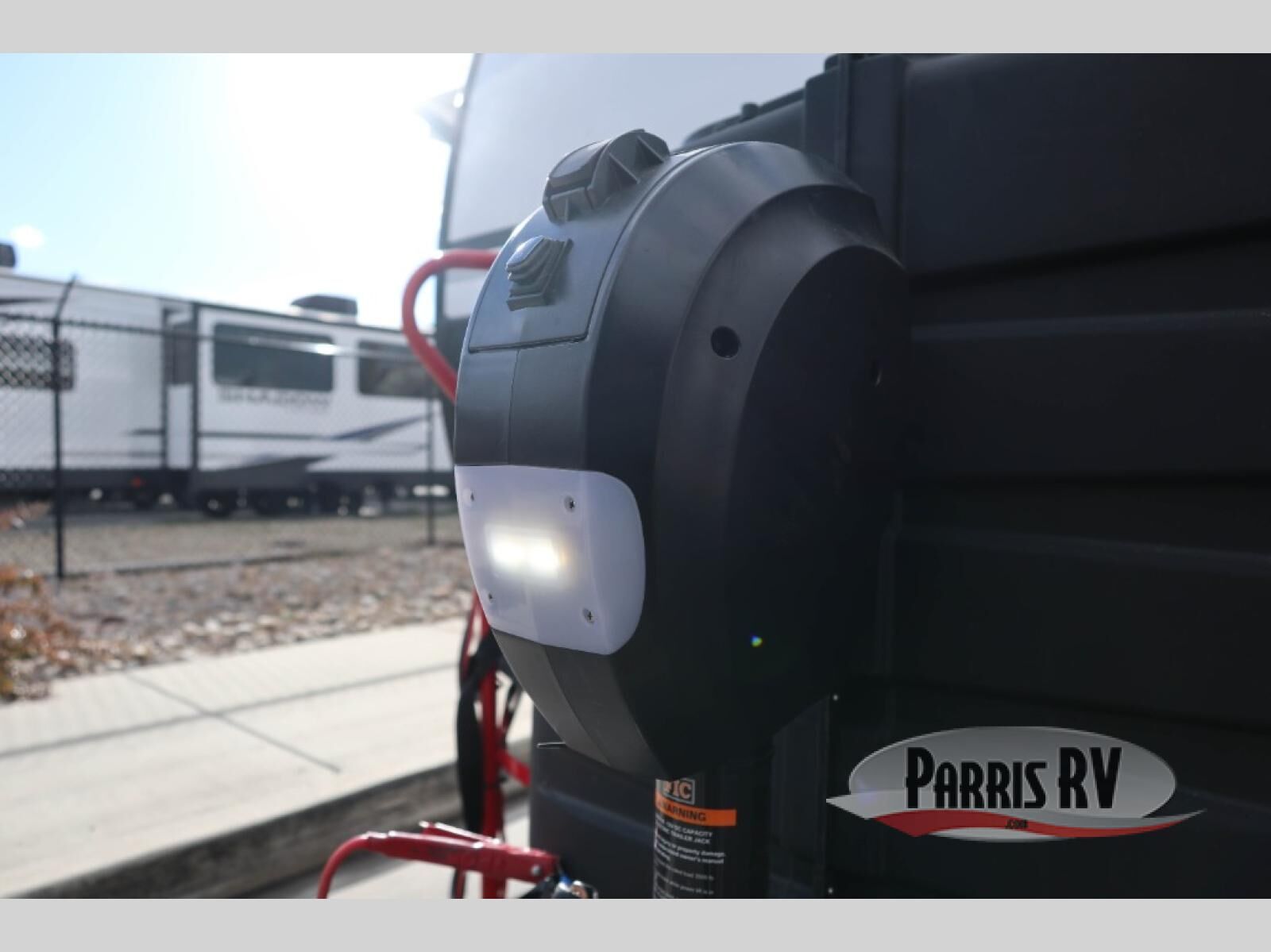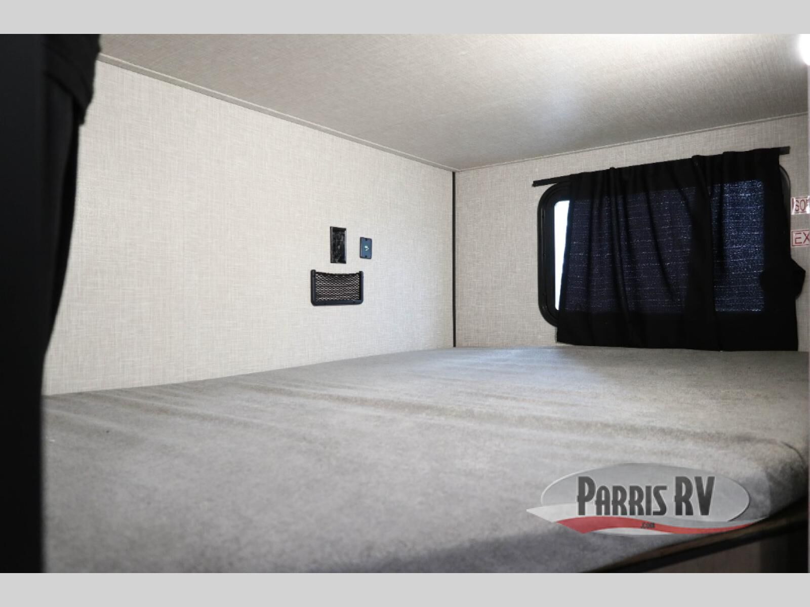 This dual-axle travel trailer can sleep eight people each night, so invite your family or friends along. You will enjoy the private bedroom up front with dual wardrobes to keep your clothes tidy. While the chef of your group is preparing lunch on the three burner cooktop, everyone else can visit on the jack-knife sofa or play a game at the booth dinette. You will also find a large 18' power awning with LED lights outdoors which is where you may usually find everyone. The private bath is right next to the double-size bunks for convenience, and the sink is just outside of this room so two people can freshen up at once.