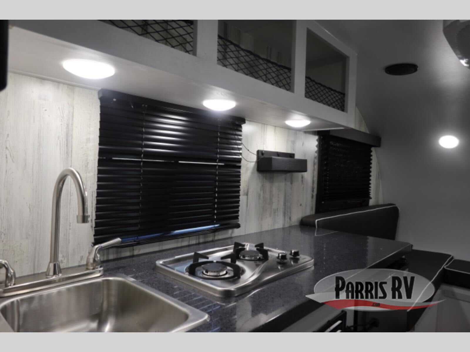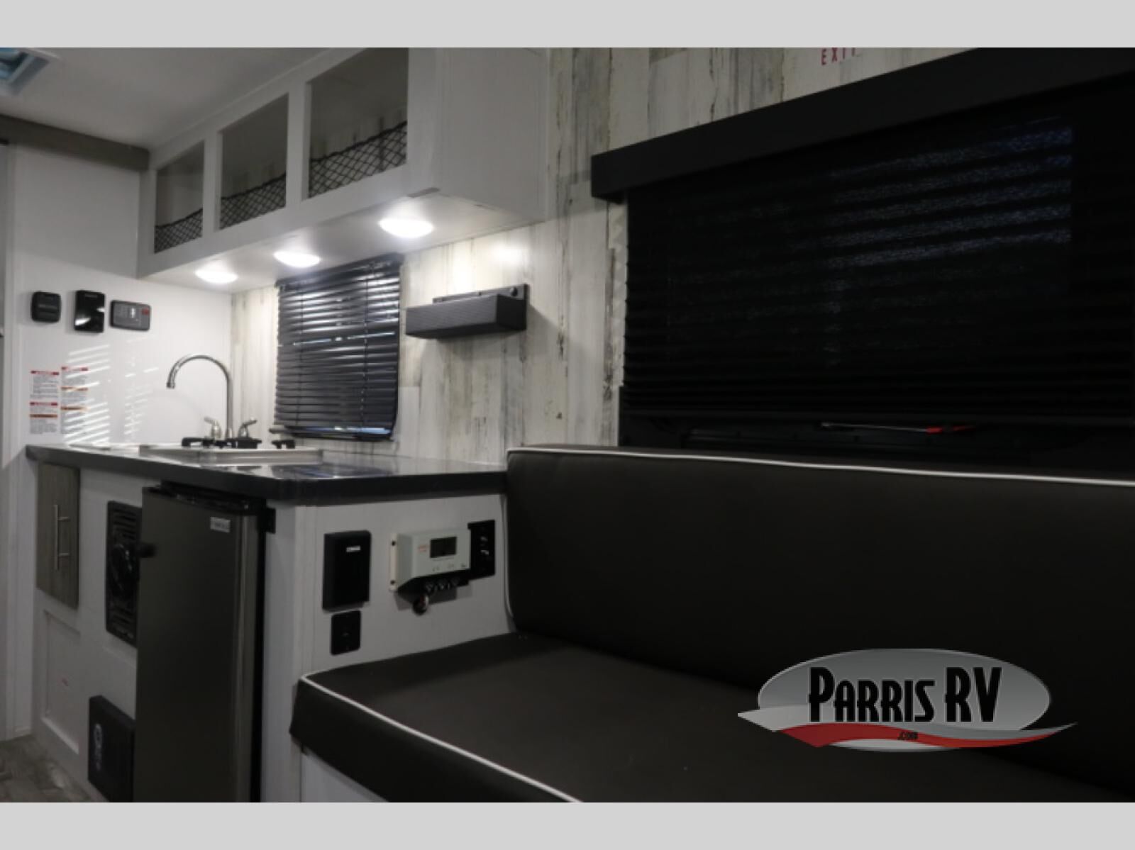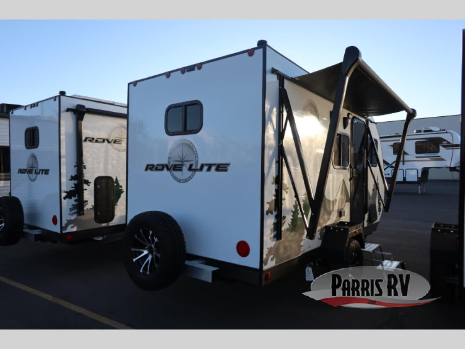 This Rove Lite can be the perfect couples adventure companion when you love the outdoors! This unit features a front booth dinette that transforms into a 54" x 74" bed to sleep on at night. There is also a full rear dry bath including a 24" x 36" shower and toilet with overhead storage for your towels and toiletries. A 13" x 15" sink is just outside the space saving sliding barn door for convenience. You will easily be able to whip up a meal or snacks with the two-burner cooktop, plenty of counter space, and a 3.3 cu. ft. 12V refrigerator for your perishables. There is storage throughout the inside for your camping necessities with several overhead cabinets and a pantry.