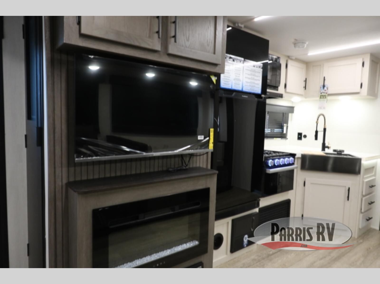 Head to your local state park in this travel trailer with a large slide out! You will love having more space to move about, and your crew can relax on the theater seating or play a game at the booth dinette. An optional TV can be added to the entertainment center, and the fireplace will make it feel a little more like home. There is a three burner cooktop and microwave oven in the kitchen, along with a 12V refrigerator and a walk-in pantry. If you enjoy cooking outdoors, then the outside kitchen will be waiting for you! The full rear bath will let you freshen up before bed, and the queen bed is sure to bring a great night's rest!