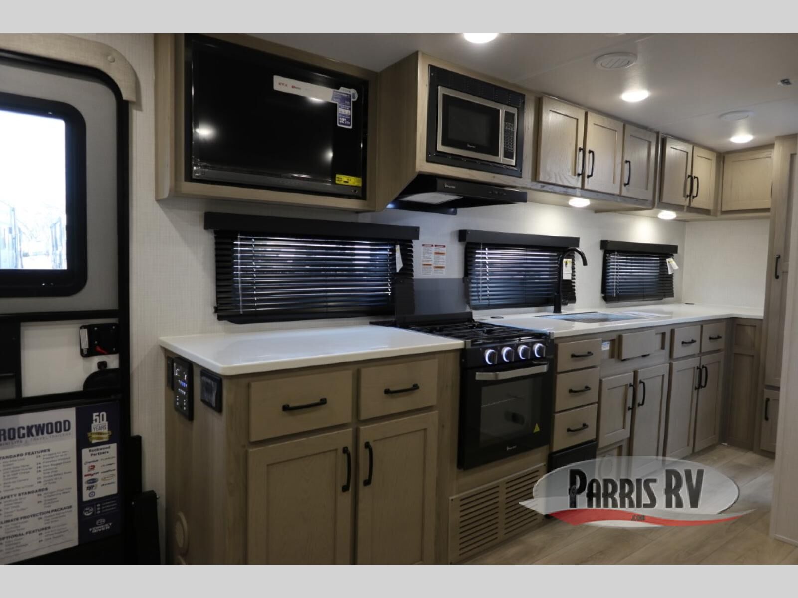 Each Rockwood Mini Lite travel trailer by Forest River is constructed with a fully laminated one-piece walkable roof, sleek frameless windows, and a six-sided full aluminum frame for strength and durability. The 12V thermostatically controlled heated tanks, plus radiant foil in the underbelly and slide out floors will allow you to camp well into the colder months, and the 200W roof solar panel will be perfect for a little off-gridding. Each model includes solid surface kitchen countertops, solid wood cabinet doors, night roller shades, plus many more interior features. Having an AIR 360+ omnidirectional antenna with WiFi prep on board gives you the option to get some work done if it's needed, and the power tongue jack provides hassle-free set up, so you can enjoy more time relaxing!