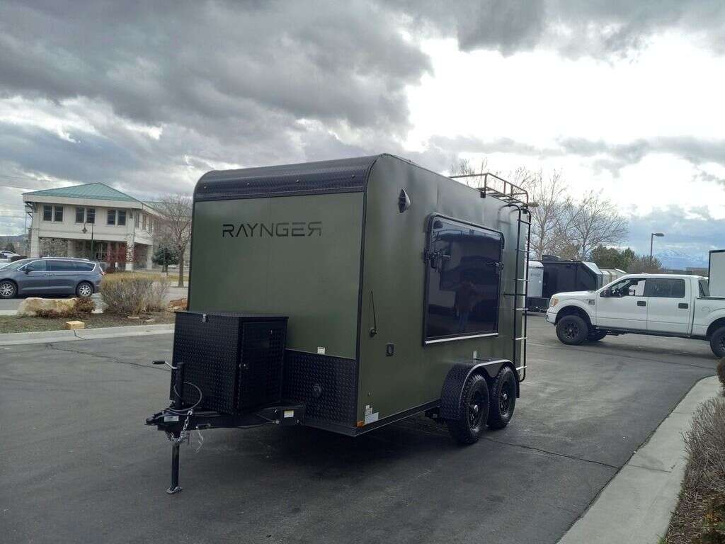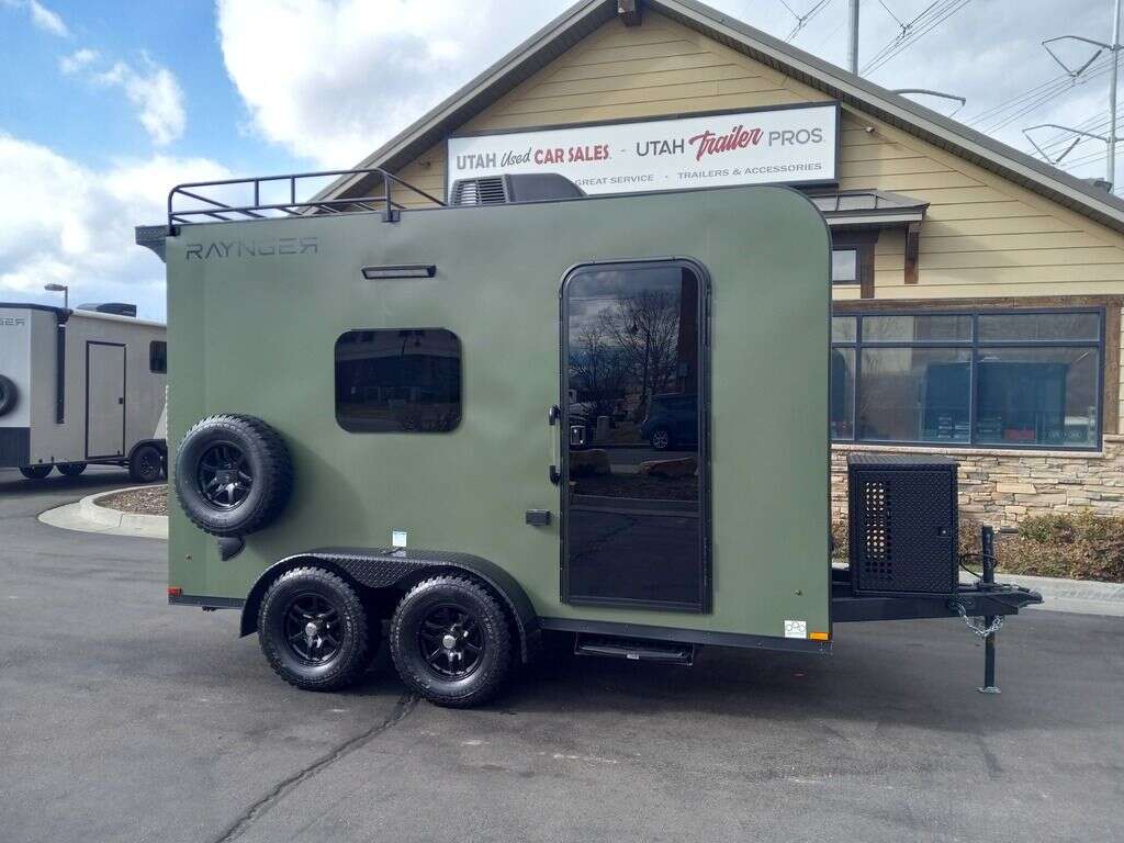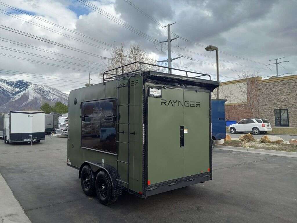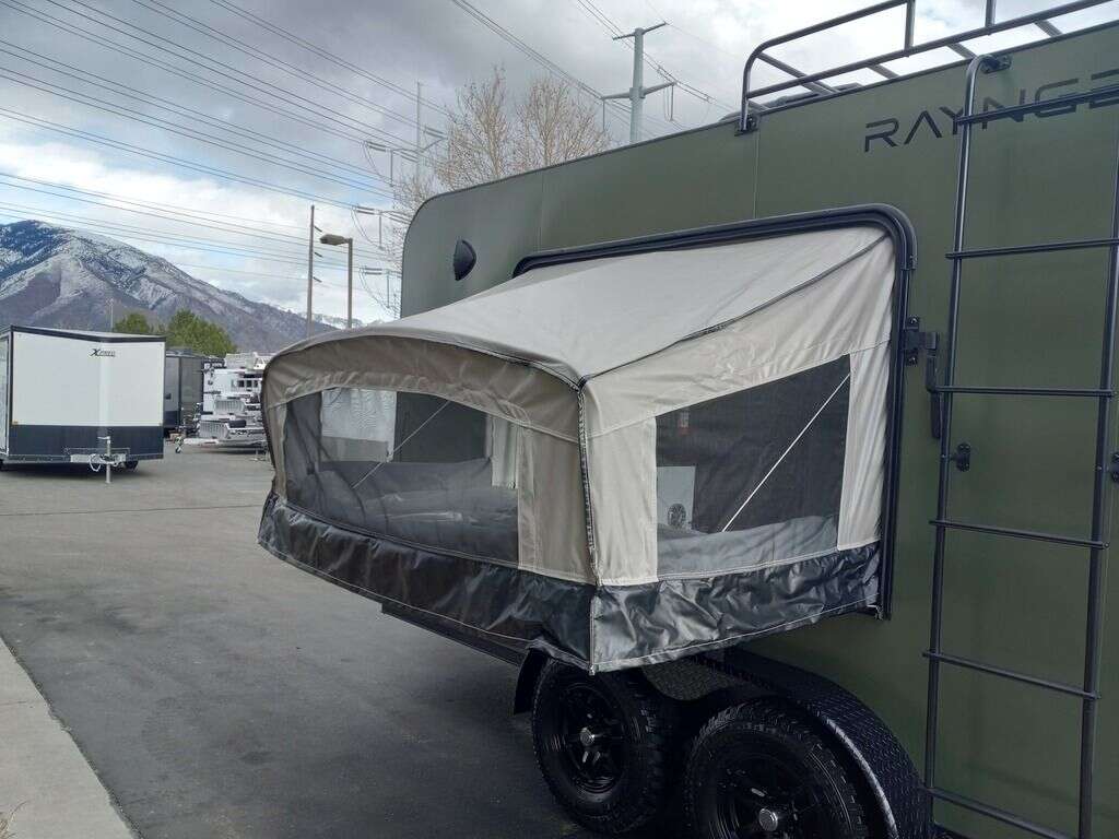 LIMITED TIME $204 A MONTH WITH ZERO DOWN WITH OUR SPECIAL LOCAL CREDIT UNION PARTNER!!! NO PRE-PAYMENT PENALTIES!!! NEW 2025 MODEL!!! RAYNGER PREMIUM OFF ROAD TOY HAULER CAMPER!!! 19 INCH GROUND CLEARANCE!!! OFF ROAD TIRES!!! FULLY INSULATED!!! HEATING AND A/C!!! WET SOUND STEREO!!! FOLD OUT/POP OUT TENT WITH MATTRESS!!! 78 Inch Rear Entry Height/81 INCH INTERIOR HEIGHT!!! 77 Inch Rear Entry Width!!! Aluminum Ventilated Locking Generator Box!!! 11.1 Foot Long Garage Space!!! And Much MUCH MORE!!! Check out our Specs!!! Also available in 18 foot models. 18 Foot Models can have 3 Fold Out Beds/Pop Out Tents. 16 Foot and 18 Foot Models will fit ANY stock 4 Seater Side by Side • 6” I Beam Frame• Flat Top Design• Flat Front Design• Wall Posts 16” on Center• Cross Members 16” on Center• Roof Bows 16” on Center• Rust Inhibiting Z-Tech Protection on Chassis• Ameraguard on Tongue• Ameraguard on Rear Bumper• Ameraguard Around All Door Openings and Stepwell• Ameraguard Around Edges of Ramp Door• 3500 LB Spring Axles• 2-5/16” Coupler• One-Piece Aluminum Roof• ST235/75R15 Aluminum Wheels with Chrome Center Caps• 2000# Ramp Door with Eberhard Latch• 30” Tempered Glass RV Door with Screen Door• .030 Exterior Metal with Screwless Sides• 24” Black Stoneguard• 3” Black Bottom Trim• Sand Pad• Black Door Hold• 2.7mm Charcoal Textured Vinyl Ceiling • 9mm Charcoal Textured Vinyl Walls• 3/4” Engineered Wood Floor with Rubber Coin Overlay• (6) 1200 LB Floor D rings Installed with Backer Plates• LED Clearance Lights and Tail Lights• LED Back-up Lights• No Show Wheel Box• Spoiler with Toggle Switch• RV Step• 7’ Interior• (2) 17” Chrome Base Lights with Switch• (1) Black 17” Spot Light with Switch• (1) 30 Amp Panel with Marine Plug• A/C Unit with Heat Strip• (3) Interior Recepts• (1) Exterior Recept• 12V Battery and Charge Line• Prep for Backup Camera• Wet Sounds System• (3) Blue Interior Cabinet Lights• (1) 6’ Section of Flex Lights• Black ATP Rear Header and Hoop• Black ATP Fenders• Insulated Walls & Ceiling• Base Cabinets• Overhead Cabinets with Netting Over Compartments• Pop Out Tent• Black ATP Storage/Generator Box Mounted On Tongue. STOCK #U713TP U713TP