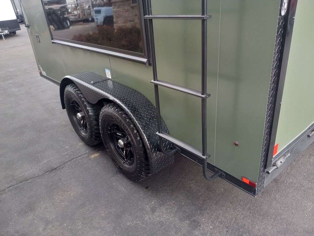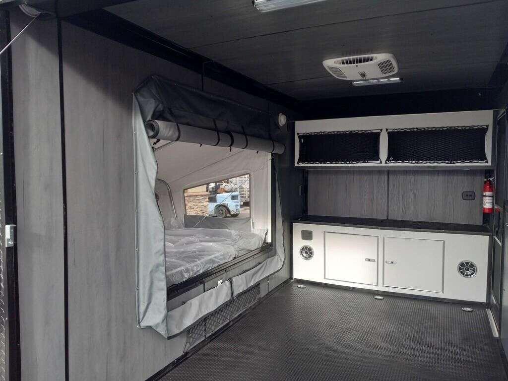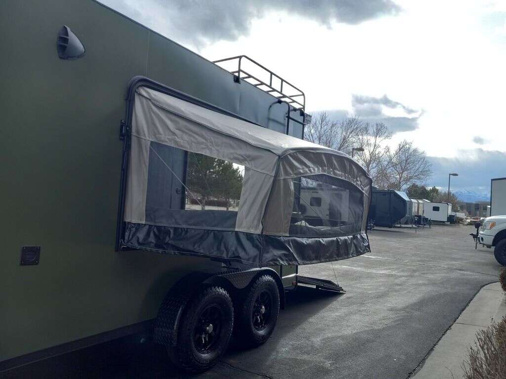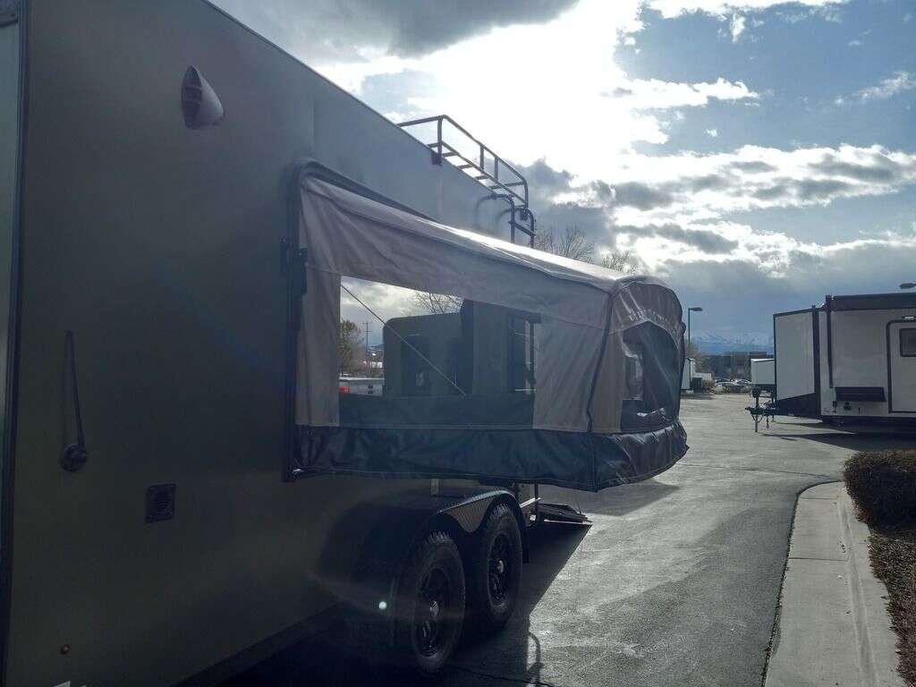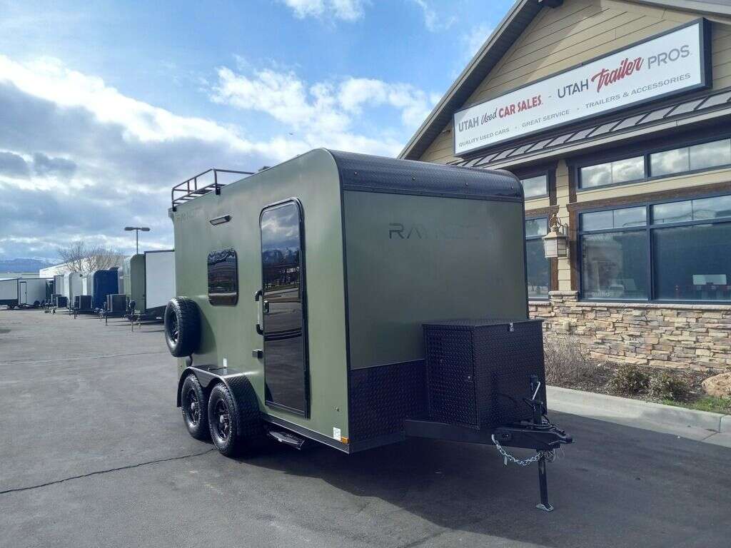 LIMITED TIME $204 A MONTH WITH ZERO DOWN WITH OUR SPECIAL LOCAL CREDIT UNION PARTNER!!! NO PRE-PAYMENT PENALTIES!!! NEW 2025 MODEL!!! RAYNGER PREMIUM OFF ROAD TOY HAULER CAMPER!!! 19 INCH GROUND CLEARANCE!!! OFF ROAD TIRES!!! FULLY INSULATED!!! HEATING AND A/C!!! WET SOUND STEREO!!! FOLD OUT/POP OUT TENT WITH MATTRESS!!! 78 Inch Rear Entry Height/81 INCH INTERIOR HEIGHT!!! 77 Inch Rear Entry Width!!! Aluminum Ventilated Locking Generator Box!!! 11.1 Foot Long Garage Space!!! And Much MUCH MORE!!! Check out our Specs!!! Also available in 18 foot models. 18 Foot Models can have 3 Fold Out Beds/Pop Out Tents. 16 Foot and 18 Foot Models will fit ANY stock 4 Seater Side by Side • 6” I Beam Frame• Flat Top Design• Flat Front Design• Wall Posts 16” on Center• Cross Members 16” on Center• Roof Bows 16” on Center• Rust Inhibiting Z-Tech Protection on Chassis• Ameraguard on Tongue• Ameraguard on Rear Bumper• Ameraguard Around All Door Openings and Stepwell• Ameraguard Around Edges of Ramp Door• 3500 LB Spring Axles• 2-5/16” Coupler• One-Piece Aluminum Roof• ST235/75R15 Aluminum Wheels with Chrome Center Caps• 2000# Ramp Door with Eberhard Latch• 30” Tempered Glass RV Door with Screen Door• .030 Exterior Metal with Screwless Sides• 24” Black Stoneguard• 3” Black Bottom Trim• Sand Pad• Black Door Hold• 2.7mm Charcoal Textured Vinyl Ceiling • 9mm Charcoal Textured Vinyl Walls• 3/4” Engineered Wood Floor with Rubber Coin Overlay• (6) 1200 LB Floor D rings Installed with Backer Plates• LED Clearance Lights and Tail Lights• LED Back-up Lights• No Show Wheel Box• Spoiler with Toggle Switch• RV Step• 7’ Interior• (2) 17” Chrome Base Lights with Switch• (1) Black 17” Spot Light with Switch• (1) 30 Amp Panel with Marine Plug• A/C Unit with Heat Strip• (3) Interior Recepts• (1) Exterior Recept• 12V Battery and Charge Line• Prep for Backup Camera• Wet Sounds System• (3) Blue Interior Cabinet Lights• (1) 6’ Section of Flex Lights• Black ATP Rear Header and Hoop• Black ATP Fenders• Insulated Walls & Ceiling• Base Cabinets• Overhead Cabinets with Netting Over Compartments• Pop Out Tent• Black ATP Storage/Generator Box Mounted On Tongue. STOCK #U713TP U713TP