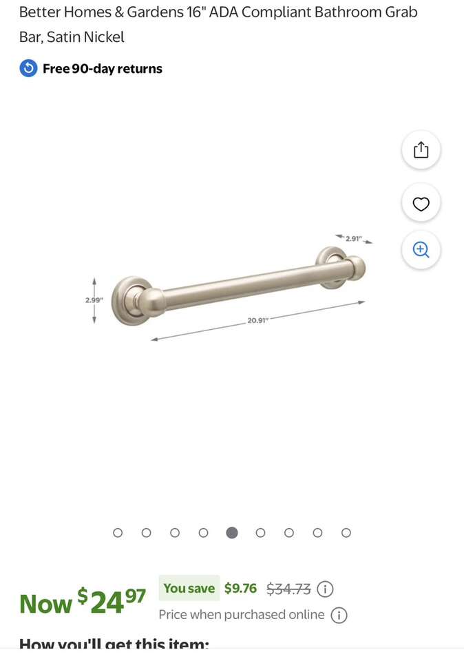 VenmoBetter Homes & Gardens 16 ADA Compliant Bathroom Grab Bar, Satin Nickel. I have 2 of these brand new grab bars. $15 for one, or $35 for both!