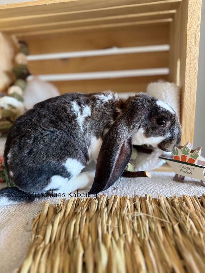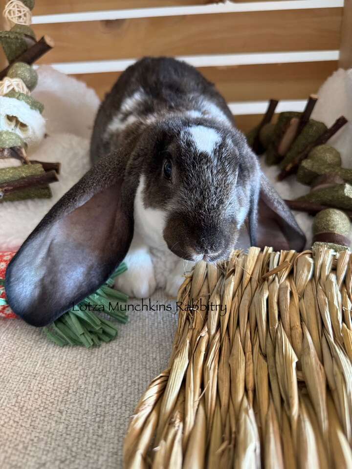 VenmoThis adorable baby velveteen lop buck is looking for his forever home! He has a very spunky and sweet personality Our rabbits are raised indoors and get handled daily. They are around kids and other pets as well! He was born on 01/23/2025 and is ready to go to his new home. I do require a 50% deposit to reserve then the rest is due at pick up if you are not picking up same day. If you are interested in meeting him text is the best way to contact me or message me on Facebook/instagram @LotzaMunchkinsRabbitry