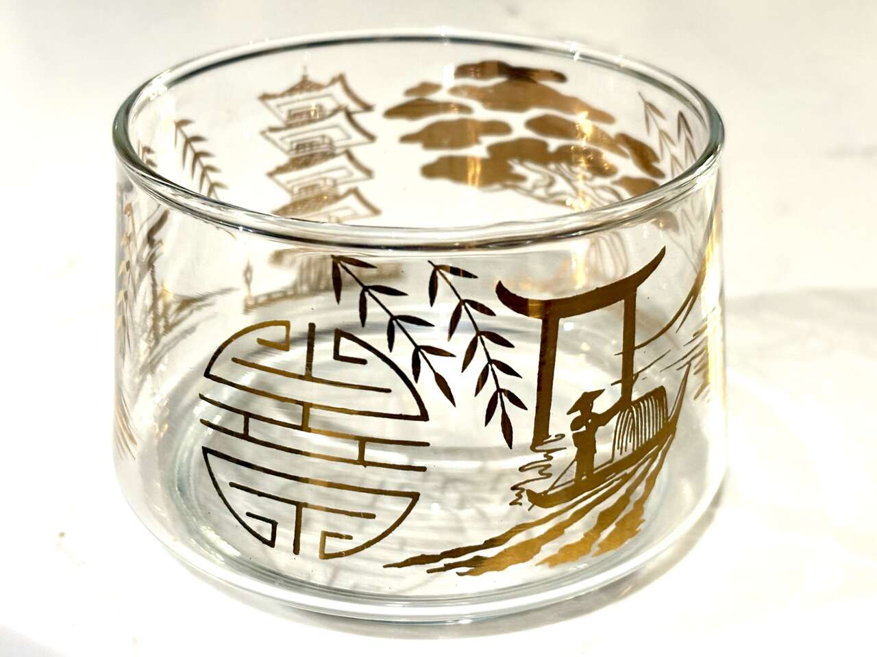 VenmoVintage 1960’s Stacking 22k gold olates Candy Dish Snack Bowls Gold Oriental Scenea. $12 each. I currently have two for sale I have lots of other great glassware and mid century furniture and accessories so be sure to check k out my other listings
