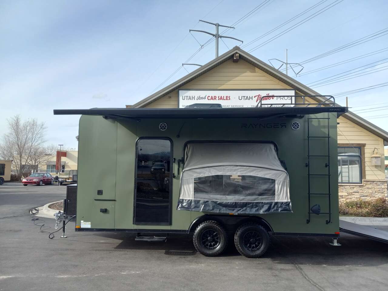 LIMITED TIME $452 A MONTH WITH ZERO DOWN WITH OUR SPECIAL LOCAL CREDIT UNION PARTNER!!! NO PRE-PAYMENT PENALTIES!!! NEW FULL BATH/HALF KITCHEN!!! SELF CONTAINED TOILET, SHOWER, FRESH WATER TANK, WATER HEATER, WATER PUMP, SINK, COOKTOP AND MORE!!!! NEW 2025 MODEL!!! WILL FIT ANY STOCK SIDE BY SIDE UTV!!! RAYNGER PREMIUM OFF ROAD TOY HAULER CAMPER!!! 18 INCH GROUND CLEARANCE!!! OFF ROAD TIRES!!! FULLY INSULATED!!! HEATING AND A/C!!! WET SOUND STEREO!!! THREE FOLD OUT/POP OUT TENTS WITH MATTRESS!!! CARGO BASKET!!! LED LIT AWNING!!! 87 Inch Rear Entry Height/90 INCH INTERIOR HEIGHT!!! 95 Inch Rear Entry Width!!! Aluminum Ventilated Locking Generator Box!!! UPGRADED TORSION AXLES!!! And Much MUCH MORE!!! Check out our Specs!!! 16 Foot and 18 Foot Models will fit ANY stock 4 Seater Side by Side • 6” I Beam Frame• Flat Top Design• Flat Front Design• Wall Posts 16” on Center• Cross Members 16” on Center• Roof Bows 16” on Center• Rust Inhibiting Z-Tech Protection on Chassis• Ameraguard on Tongue• Ameraguard on Rear Bumper• Ameraguard Around All Door Openings and Stepwell• Ameraguard Around Edges of Ramp Door• 3500 LB Spring Axles• 2-5/16” Coupler• One-Piece Aluminum Roof• ST235/75R15 Aluminum Wheels with Chrome Center Caps• 2000# Ramp Door with Eberhard Latch• 30” Tempered Glass RV Door with Screen Door• .030 Exterior Metal with Screwless Sides• 24” Black Stoneguard• 3” Black Bottom Trim• Sand Pad• Black Door Hold• 2.7mm Charcoal Textured Vinyl Ceiling • 9mm Charcoal Textured Vinyl Walls• 3/4” Engineered Wood Floor with Rubber Coin Overlay• (6) 1200 LB Floor D rings Installed with Backer Plates• LED Clearance Lights and Tail Lights• LED Back-up Lights• No Show Wheel Box• Spoiler with Toggle Switch• RV Step• 7’ Interior• (2) 17” Chrome Base Lights with Switch• (1) Black 17” Spot Light with Switch• (1) 30 Amp Panel with Marine Plug• A/C Unit with Heat Strip• (3) Interior Recepts• (1) Exterior Recept• 12V Battery and Charge Line• Prep for Backup Camera• Wet Sounds System• (3) Blue Interior Cabinet Lights• (1) 6’ Section of Flex Lights• Black ATP Rear Header and Hoop• Black ATP Fenders• Insulated Walls & Ceiling• Base Cabinets• Overhead Cabinets with Netting Over Compartments• Pop Out Tent• Black ATP Storage/Generator Box Mounted On Tongue #SW095236