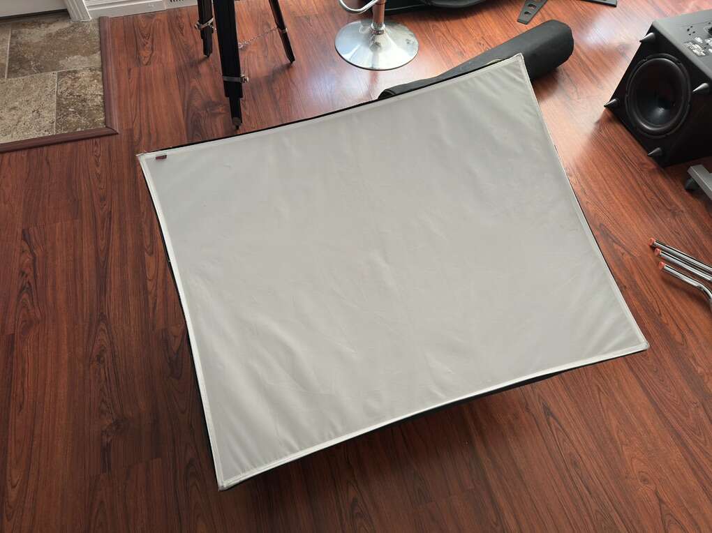 ApplePay36x30 Square soft box. It has beautiful light. I would prefer keeping it but it is the rod style setup so break down easily, and I need to travel often so, I’m going to try and find a foldable option.