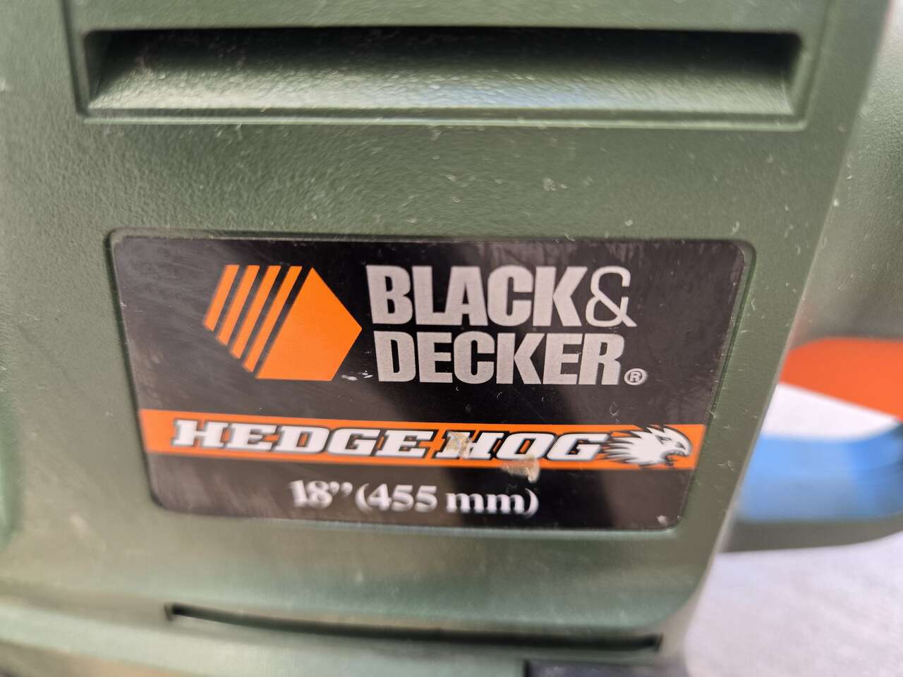 Black & Decker 18" Hedge Hog Trimmer with dual-action blade, lightweight, in excellent condition.