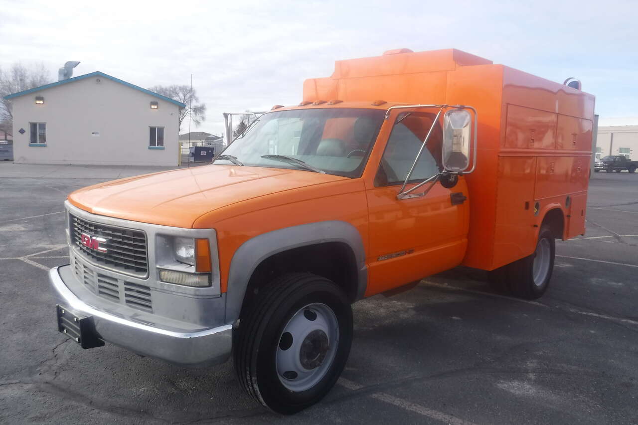 1999 GMC HD3500 with 6.5 Turbo Diesel and 33,846 ACTUAL MILES. Automatic transmission. Power steering. Air conditioning. Cruise control. Electric trailer brake control. 95% 225/19.5 14 ply Radial tires. 16,000 Lb. GVW. Trailer hitch and tow package. The walk in service body is like new. This one owner former Municipal owned truck is as clean as the the day it came off the showroom floor, It runs, drives and operates like a new truck. Unbelievable condition. $9,900. Located in Twin Falls Idaho. Call 208-613-0050