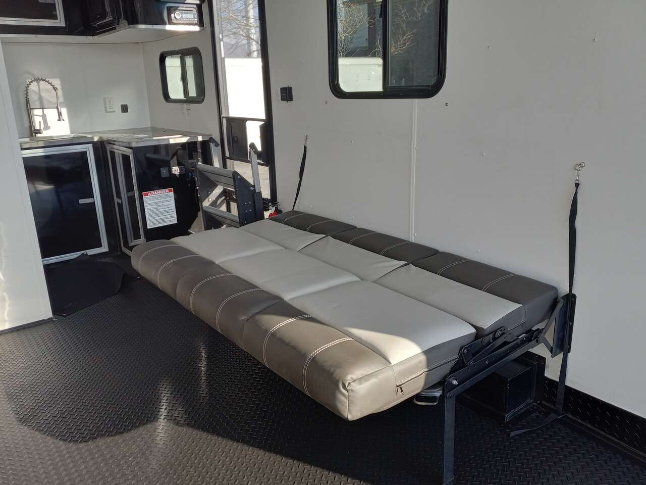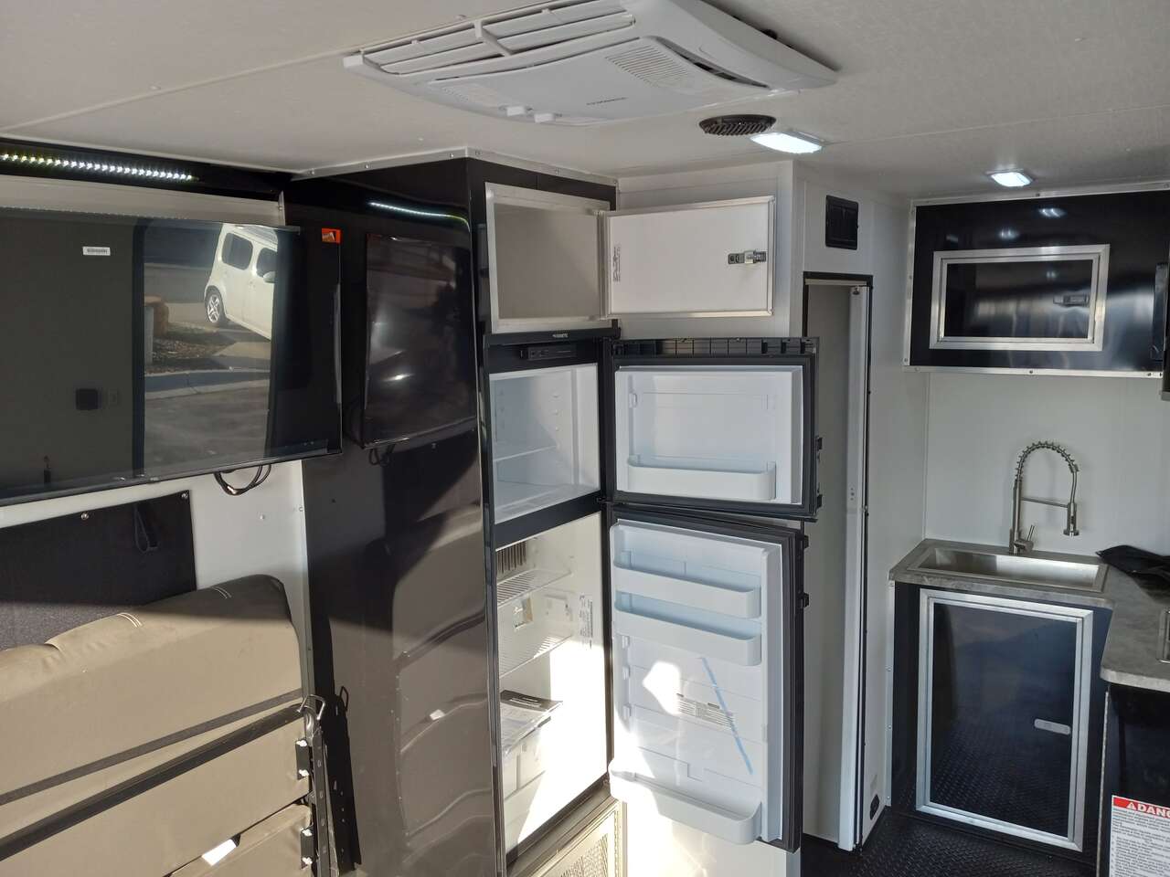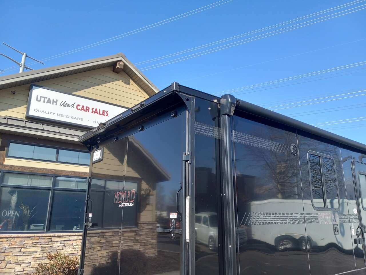 LIMITED TIME $339 A MONTH WITH ZERO DOWN WITH OUR SPECIAL LOCAL CREDIT UNION PARTNER!!! NO PRE-PAYMENT PENALTIES!!! !! NEW 2025 NOMAD 18FK MODEL!!! WILL FIT ANY STOCK SIDE BY SIDE UTV!!! 10,400# GVWR/5.2k AXLES!!! FULLY INSULATED!!! HEATING AND A/C!!! STEREO!!!7FT-6" Interior Height/ 36" Wedge Front2x6 Tube Steel Main Rails16" O/C Floor Tube Crossmembers16" O/C Steel Tube Wall Studs24" O/C Tube Steel Roof Bows18" Extended Triple Tube A-FrameLippert Torsion Axles w/32 Deg Down Start Angle5200# Axles w/ST235/80R16 Tires (TA4)40" Spread AxlesElectric Brakes2-5/16 Adjustable A-Frame Coupler5000# Electric A-Frame Tongue Jack4000# Rear Cableless Ramp Door w/Steel Flap(2) Roof Vent in Living/Garage Area(1) Prep & Wired for A/C - Main A/C only12V Roof Vent in BathroomPainted Tongue/Rear Sill Black(1) Pair Rear Stab JacksRear Flare w/(2) 12V Loading Lights48" BeavertailPLUMBING46 Gallon Fresh Water Tank(2) 43 Gallon Waste Holding TankSewer Hose Storage CompartmentDouble 20# LP Bottle w/Cover on A-Frame6 Gallon DSI LP Gas/Electric Water Heater12V Water PumpCity/Gravity Water Fill Hook UpOutside Shower and RV ToiletBathroom Mirror & Robe Hooks24x36 Shower w/Shower Curtain & SurroundDrop-In Cook TopLarge Single Bowl Kitchen SinkTank and Battery Monitor PanelELECTRICAL7-Way Electical PlugLED Strip Taillights/Marker Lights12V Deluxe LED Lighting45 Amp RV Power Center w/12V Converter30 Amp Motorbase PlugDetachable Twistlock Power CordBattery Box Only (Battery not included)110V GFI Receptacle in Kitchen Area(2) 110V Receptacles in Garage AreaDual USB Ports in Kitchen6 Cubic Foot RefrigeratorMicrowave Oven35K BTU Furnace110V Exterior GFI ReceptacleTV Prep Package - Includes:Coax Cable Outlets - Interior & ExteriorOmnidirectional TV Antenna UHF/VHF110V 4FT LED Cove Lights in Living/Garage AreaSmoke, CO, & LP Detector & Fire ExtinguisherINTERIOR3/4" Drymax Floor & 3/8" Wht Vinyl WallsPloystyrene Foam Insulation-Walls & CeilingATP Rubber Floor CoveringWhite Vinyl Ceiling Liner w/Black Cove MoldingBlack Kitchen L-Base Cabinet w/Laminate C-TopBlack Kitchen L-Overhead Cabinet(4) 5000# Recessed D-RingsLarge Front Storage Area w/Shelf(1) Pair Black Aluminum Directional VentsROOFSeamless Aluminum Flat Top RoofLED Marker LightsRear Flare w/(2) 12V Loading LightsMETAL****.080 Screwless Armor Shield Composite SkinSTD Colors:Crystal White, Black, Matte BlackWindstar Silver, Victory Red,Pewter, Charcoal3" Heavy Duty Flat Top Trim3" Flat Bottom Trim & 6" Barrier TapeAll Black Exterior Trim & ATP Fenders24" Tall Slanted Diamond Plate Stoneguard24" Tall Diamond Plate along sides at bottom(1) Pair Black Aluminum Directional VentsDOORS & WINDOWS****26W x 78H Radius Corner Deluxe RV Doorw/Window & ScreenAluminum Door HoldbackDouble Fold Out RV Step4000# Rear Cableless Ramp Door w/SteelFlapAll Black Zinc Coated Door Hardware24Wx72H Door w/Barlock in Front Storage30x15 Window in Kitchen Area30x30 Window in Living/Garage Area30x22 Egress Window in Living/Garage AreaWindow Coverings - In Garage Area (Only)****FINAL*****LED Strip Tailights/Marker Lights12V Deluxe LED LightningBlack Aluminum Wheels w/Radial Tires & BlackCenter CapsRecessed Spare Tire CompartmentLimited 3 Year Structural Warranty01-OPT1.952Platinum PackageIncludes: Deluxe Stereo Package with:AM/FM/CD/DVD/USB/MP3/WMA Capable Stereo, (4) HiOutput Weatherproof Speakers (2) Interior & (2) Exterior43" TV w/swivel bracketRear Hide-A-ScreenSolar PortHappiJac Bed Lift System: (Includes (1) Queen MattressSetup)
