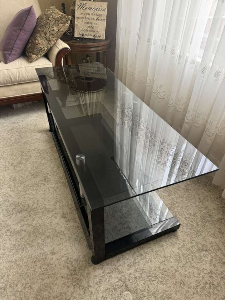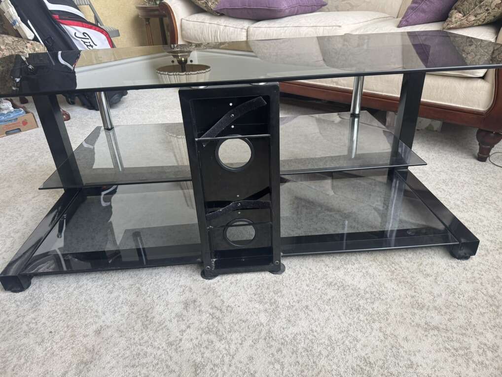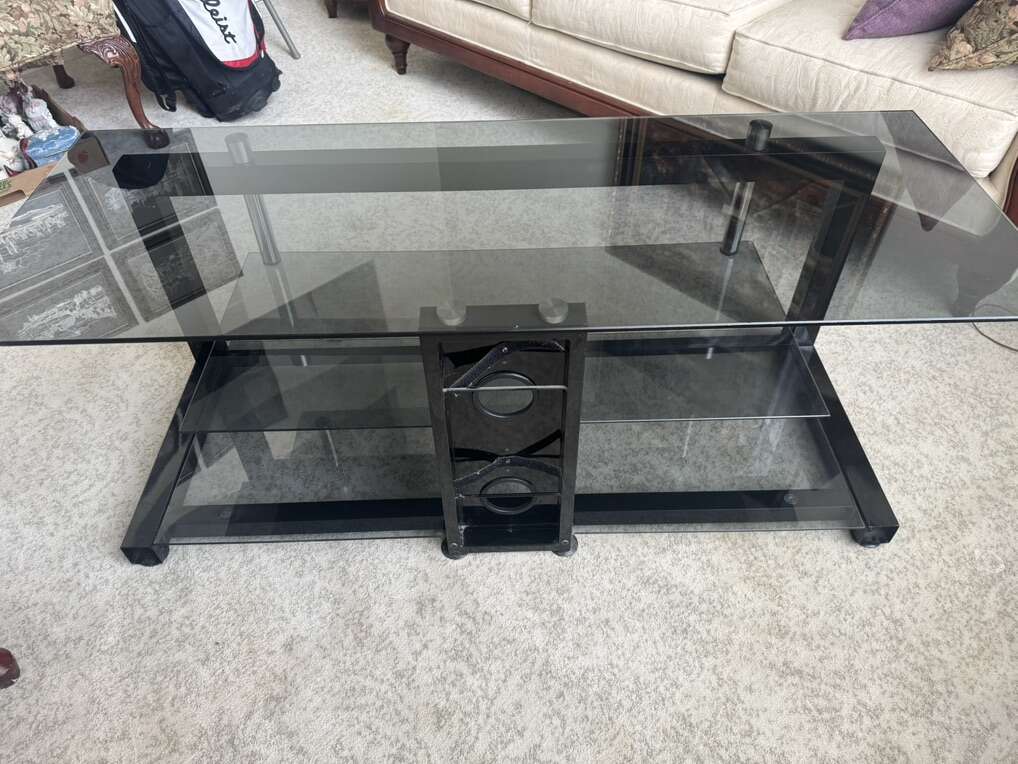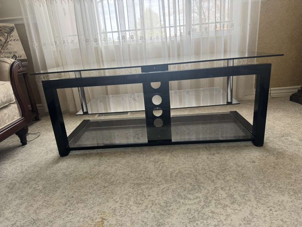 3 tier. In nice condition. Black metal and glass tv stand table desk.