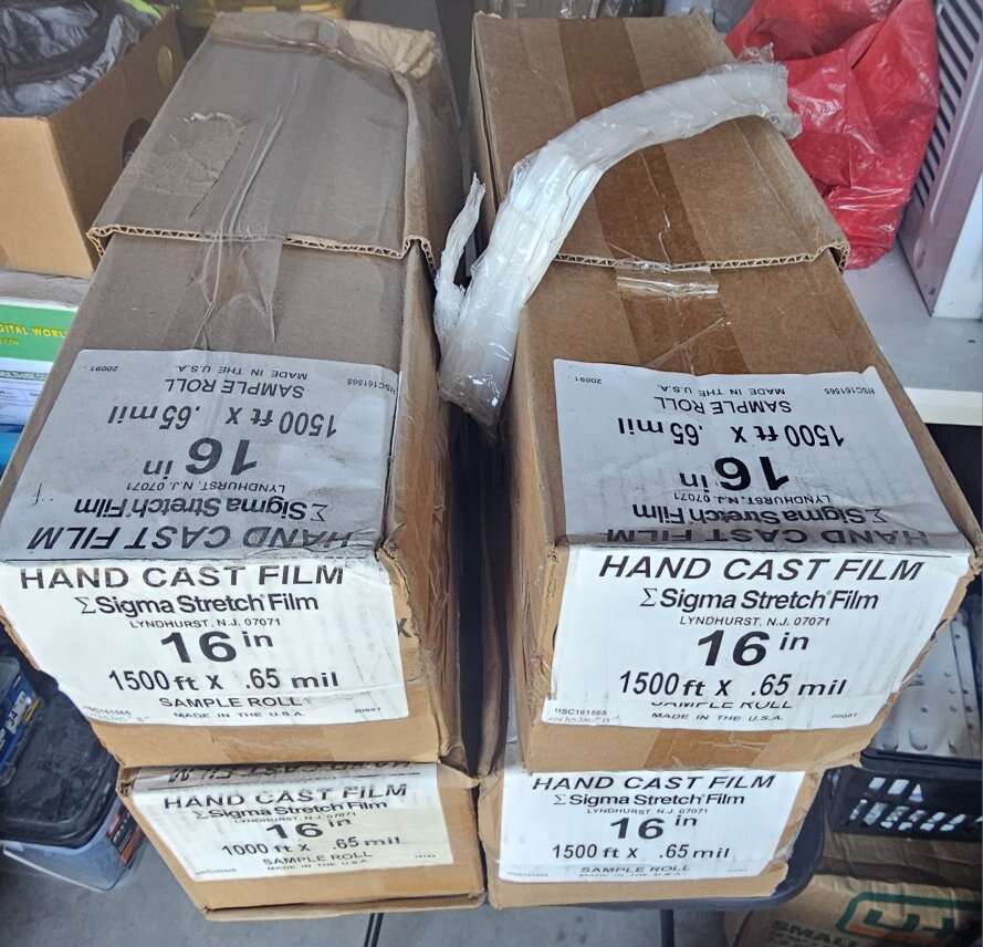 hand cast film sigma stretch film 16 inch wide 1500 ft .65mil roll I have 4 rolls for $80