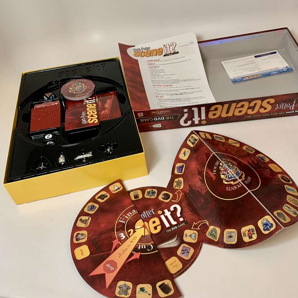 VenmoComplete with all original pieces including 4 metal player pieces Sorting Hat, Hogwarts Express, Hedwig Owl and open Snitch. All the cards, dice, DVD and instructions too. Message me if interested.