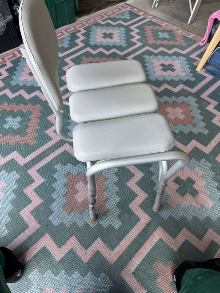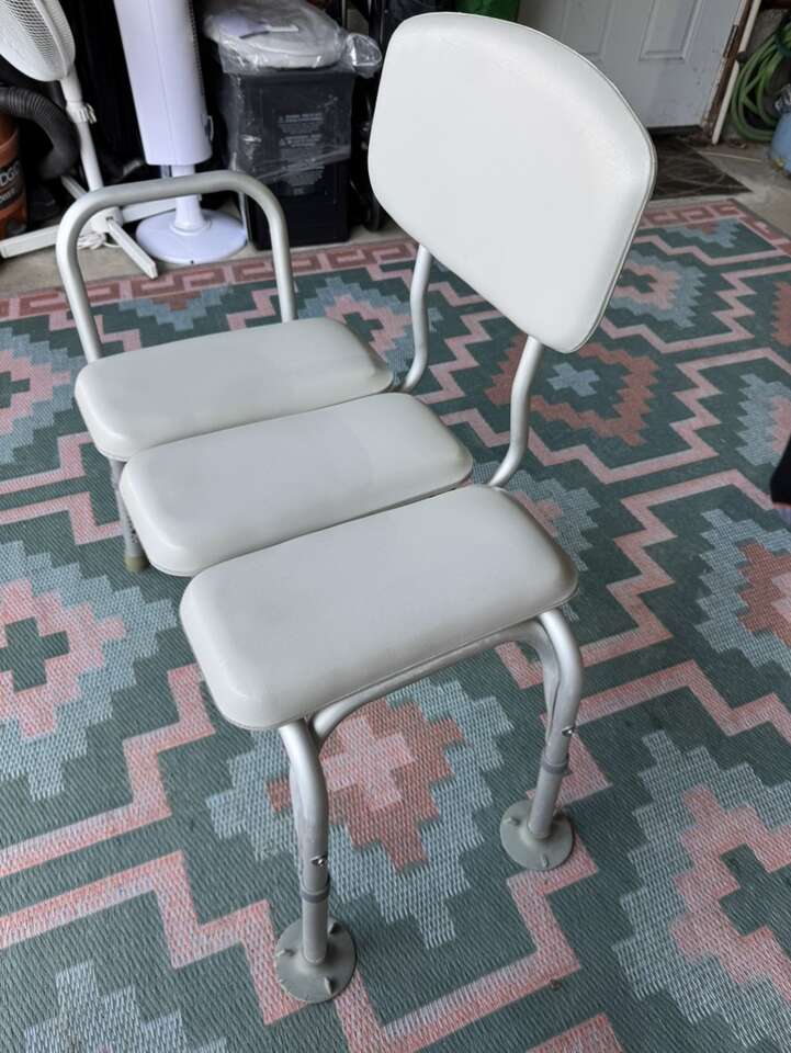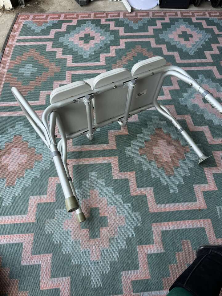 Details below: This Padded Transfer Bench with Back is Latex Free, and is designed for comfort when bathing. Comes complete with a removable back and non-skid rubber tips. It converts easily for left or right hand transfers