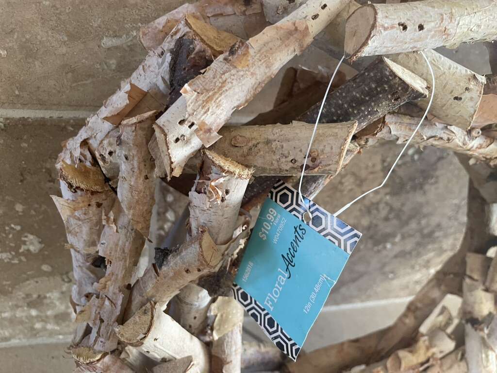 I have a new wreath made of pieces of wood branches. It is about 13 inches across. It still has the price tag showing it was $10.99 plus tax. See my other ads for jewelry, artwork, home decor and more.