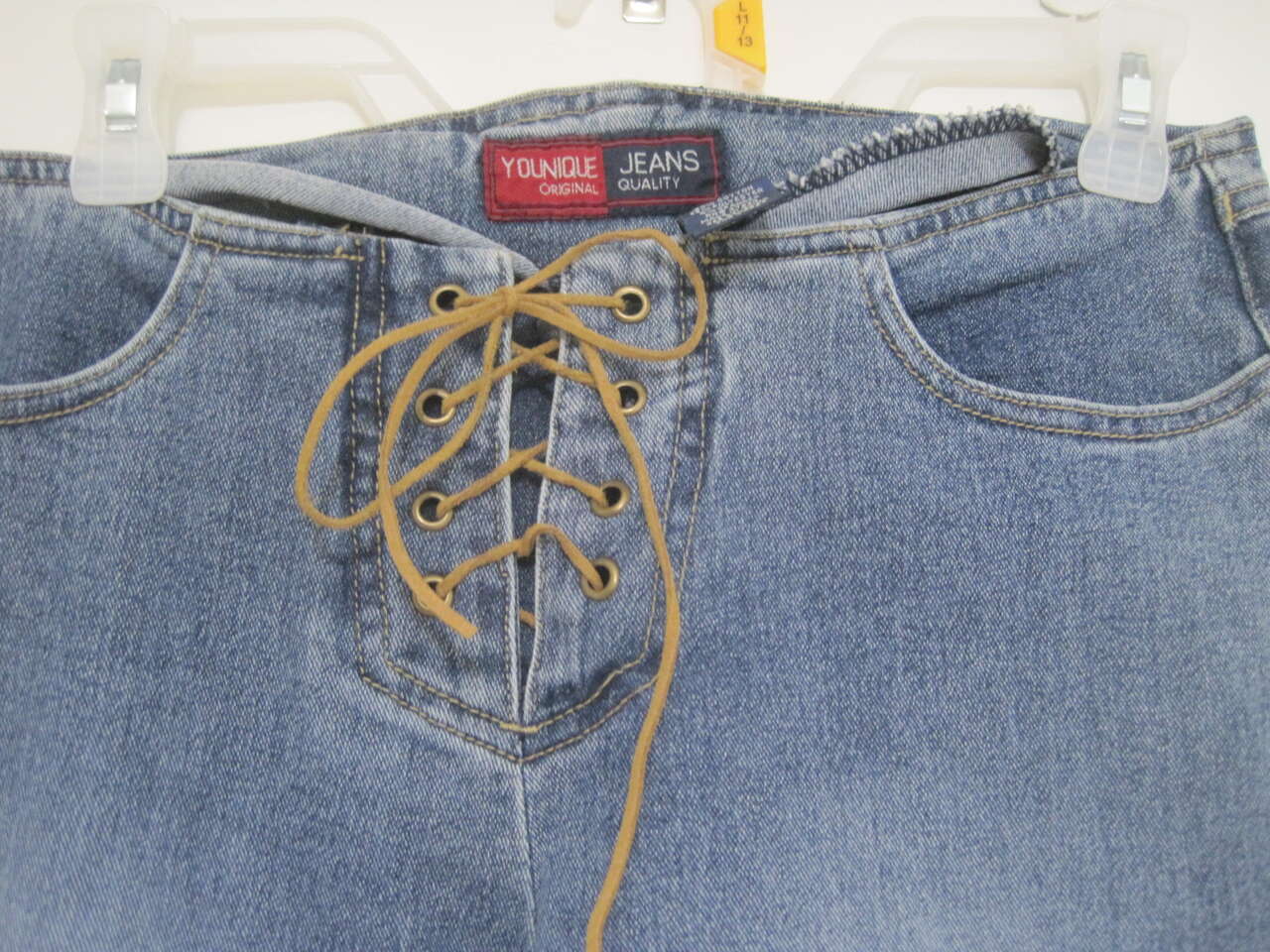 Step into retro style with these Younique Original flared blue jeans, a nod to the chic 90s. Fashioned with a timeless denim wash and accented with distinctive leather laces, these jeans offer a classic fit for everyday comfort. The blend of 60% cotton, 36% polyester, and 4% spandex ensures a snug yet flexible fit, perfect for any season. Designed with practicality in mind, these jeans feature a mid-rise waist and a 30-inch inseam, ideal for a variety of body types. The light fabric wash and solid pattern make them a versatile addition to your wardrobe, while the machine-washable care ensures easy maintenance. Embrace the blend of functionality and vintage flair with these denim treasures.