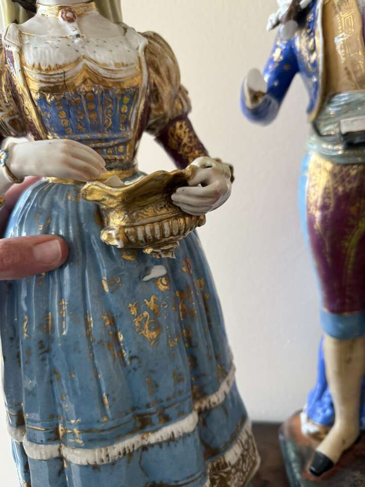 They have been repaired as best as could be. Very old set!