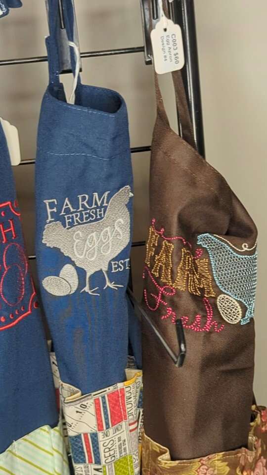 single pleat pocket $20 (small to medium eggs) double pleat pocket is $30 (L-xl eggs) child apron $10 (not pictured made for under 12yrs old. holds small to medium eggs.