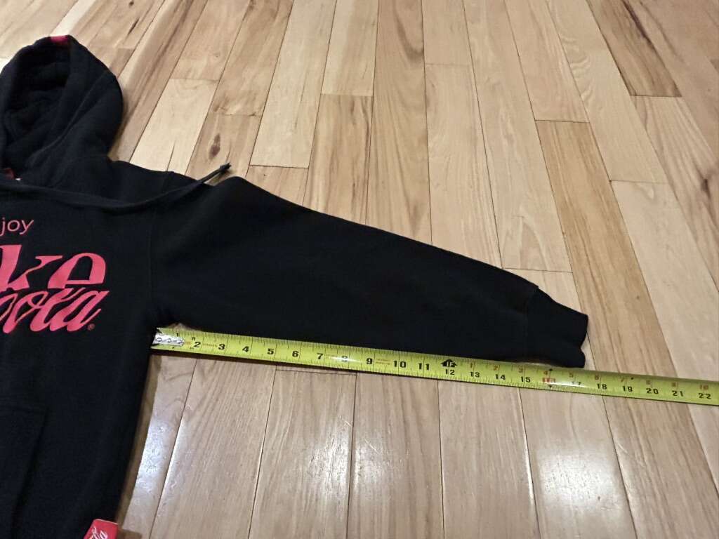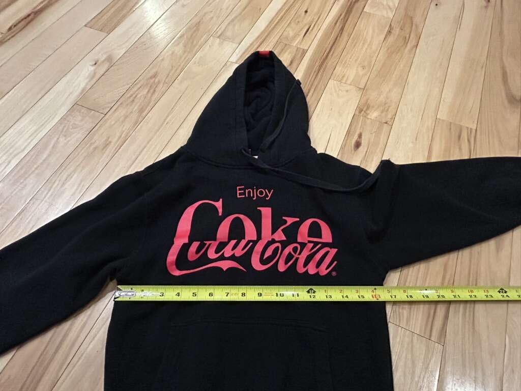 Coca-Cola Black and Red Hoodie Sweatshirt - Women’s Size XS - with ‘Enjoy Coca-Cola’ graphic on front - long sleeve with front pouch pocket - pre-owned, great condition.