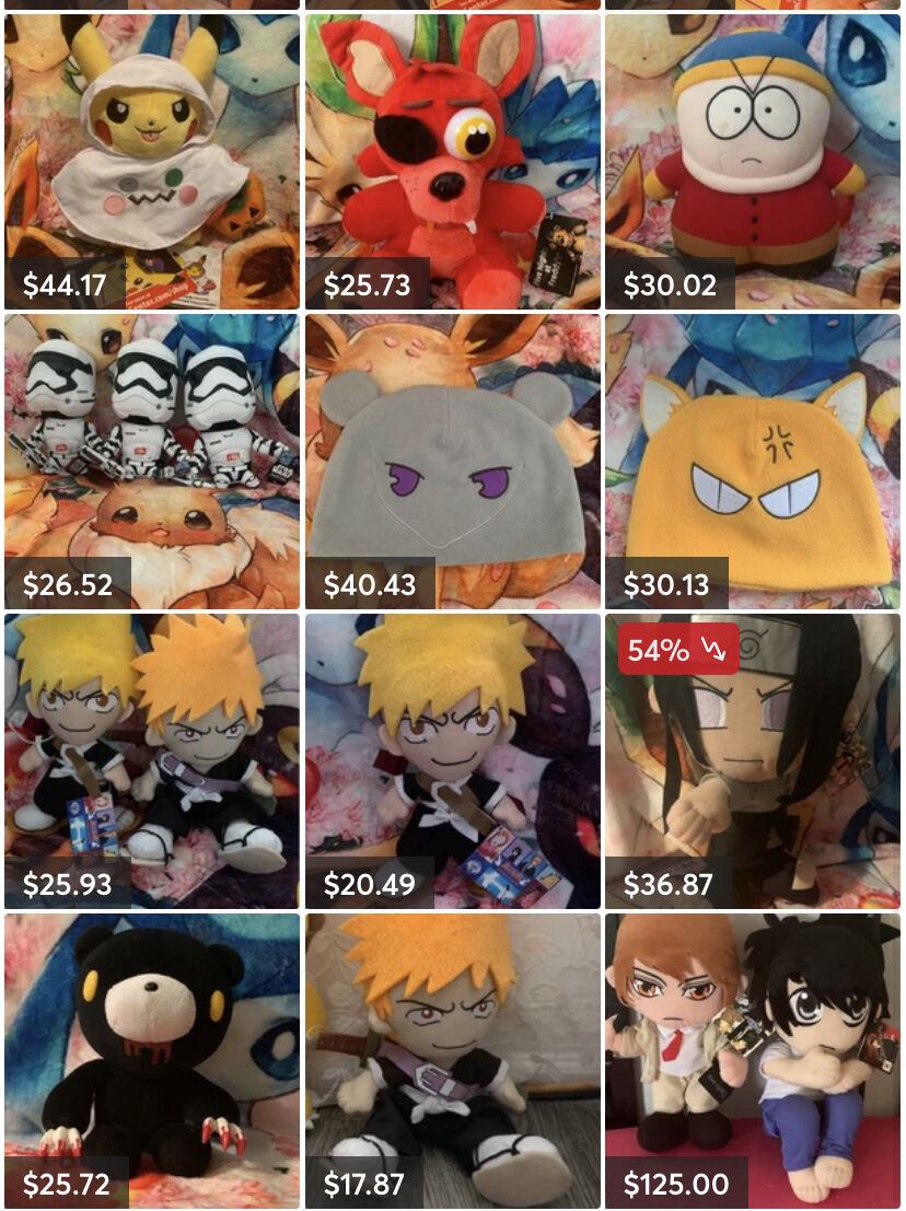 Titles: Death Note, Naruto, Bleach Hello Kitty, Attack on Titan, My Hero Academia, Fruits Basket Sailor Moon, Pokémon, Five Nights at Freddy’s, South Park, and Star Wars