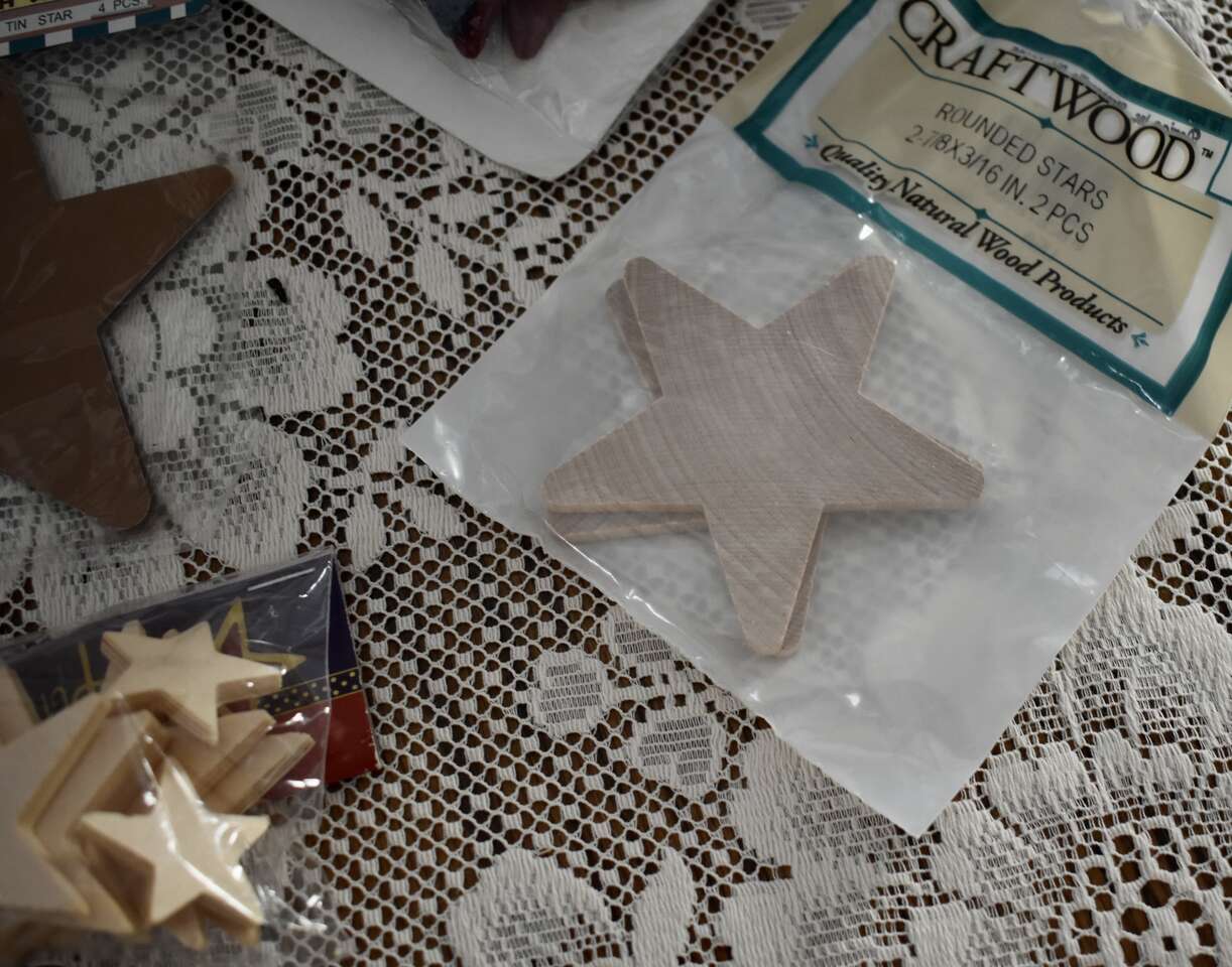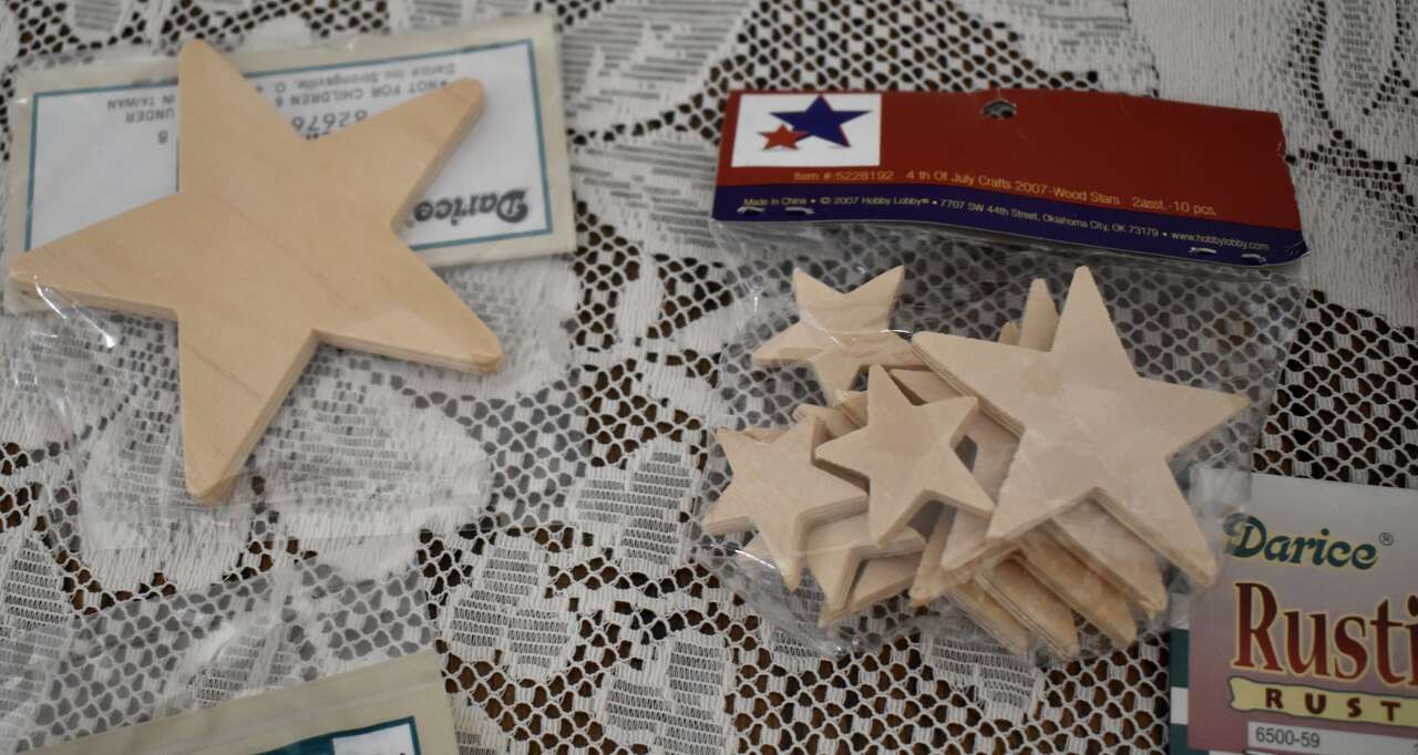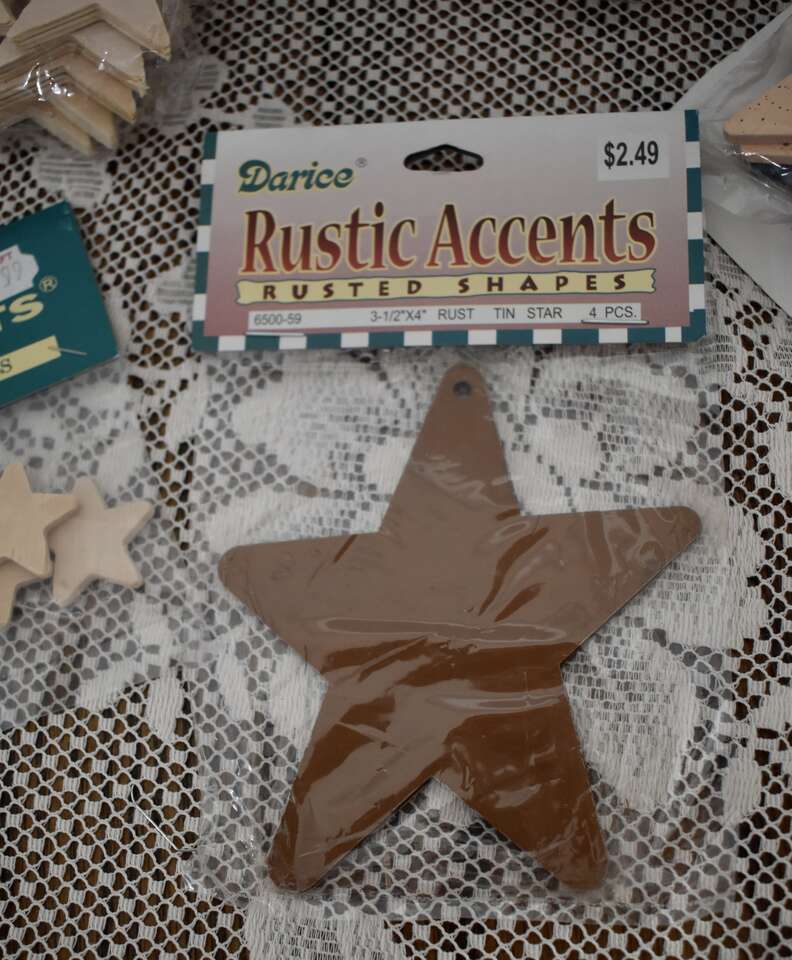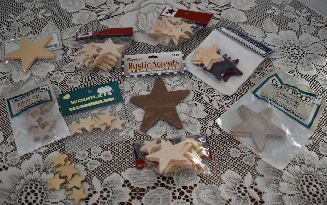 Several Assorted New in their Original Packages— Wooden Stars Including 4 Rusted Tin Stars For Assorted Craft Projects~~ Fun for Decorating Bird Houses, Patriotic Wood Projects and so many more fun craft ideas!!!