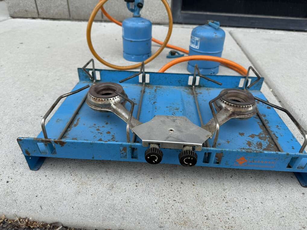 VenmoVintage Camping Gaz Savanna butane gas camp stove with 2 bottles.