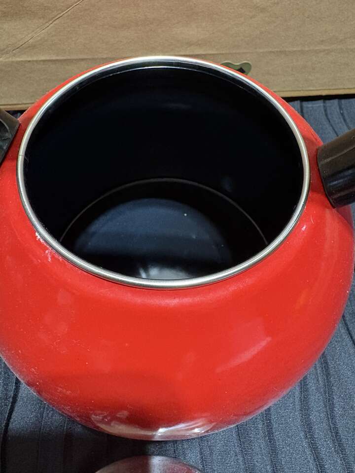 VenmoCopco Stainless Steel Red whistling stove top Tea Kettle. 9 inches round. $10 cash/venmo in Draper