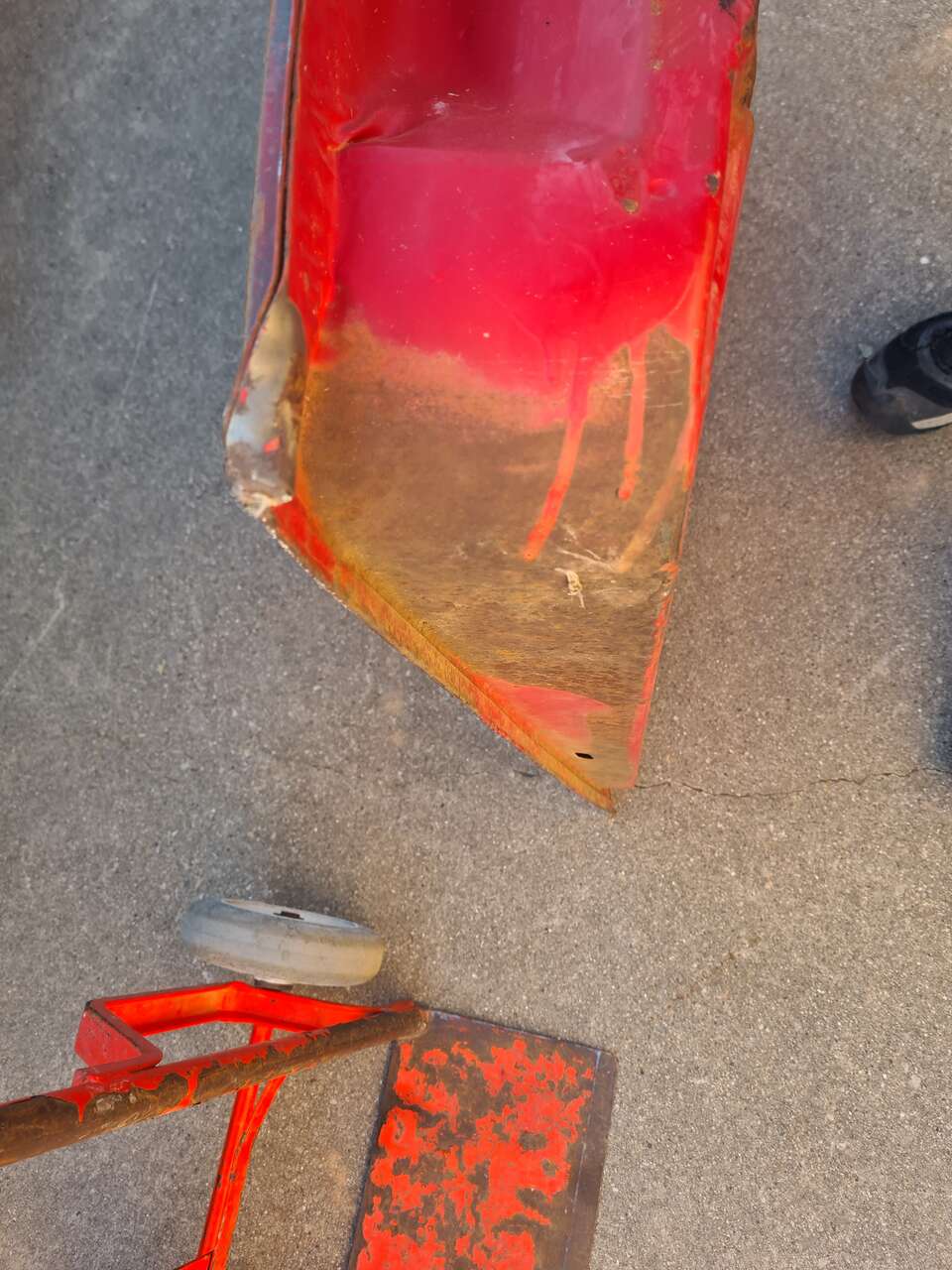 Venmo48-53 Dodge pick up truck passenger door. Pretty good shape. No rust holes. Broken wing glass. No main glass. Top edge just needs a little work. Small curl in the weatherstrip pinch seam.