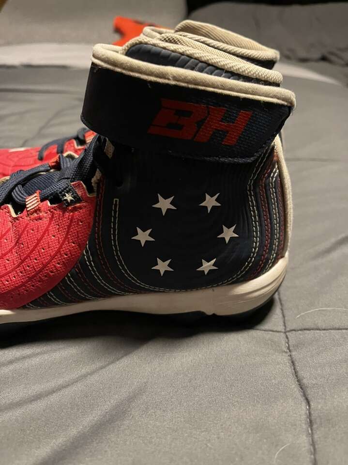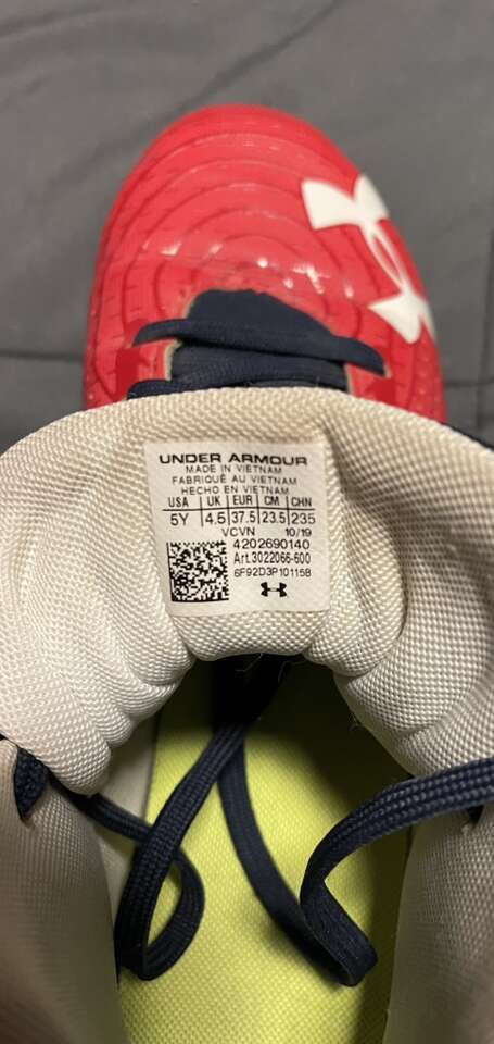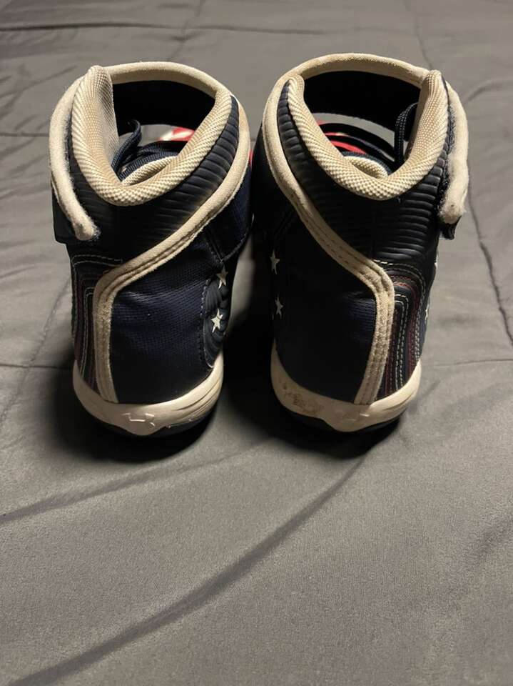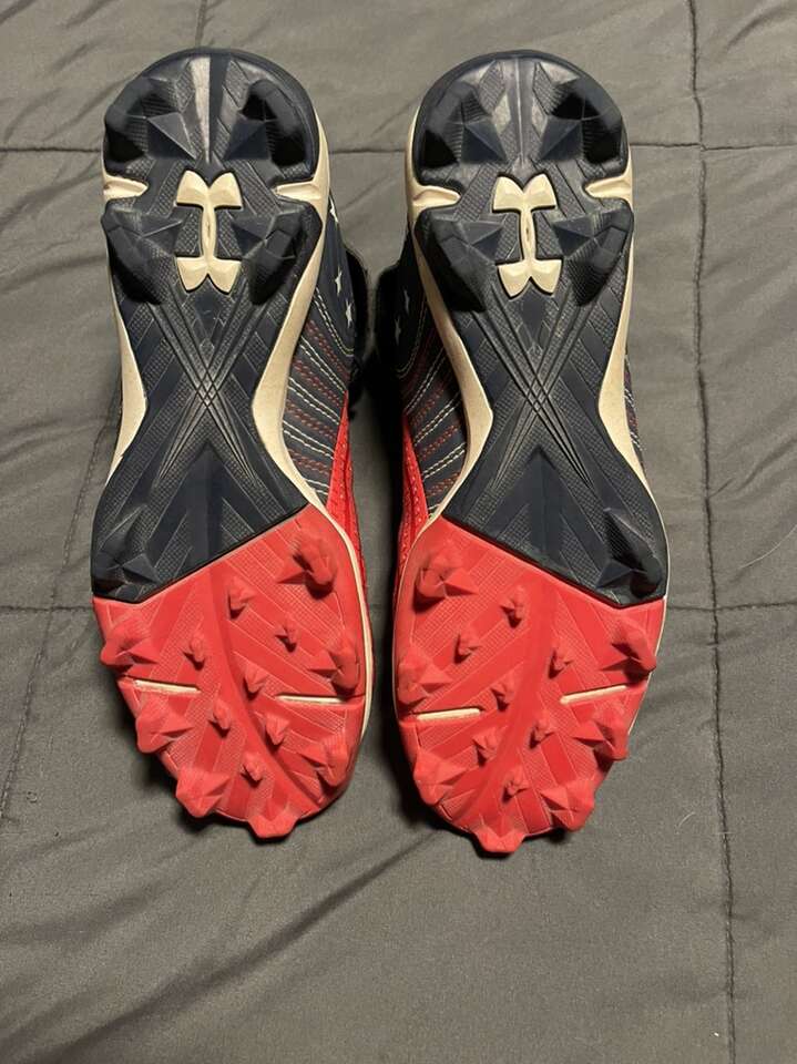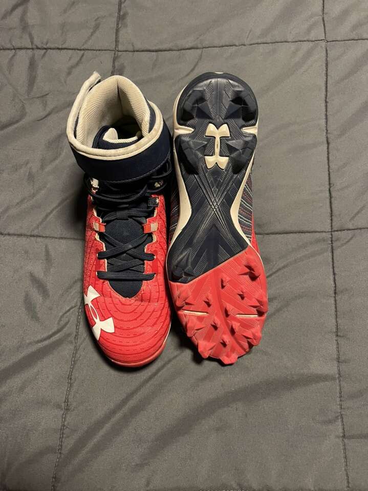 VenmoI’m selling a pair of Under Armour Cleats High TopBH Flag. They’re used in like new condition. They’re boys size 5. They’re a great option for the upcoming Youth baseball season.