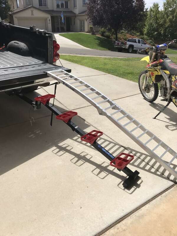 Steps easily mountin your receiver hitch and foldfor transportation with tailgate up or down